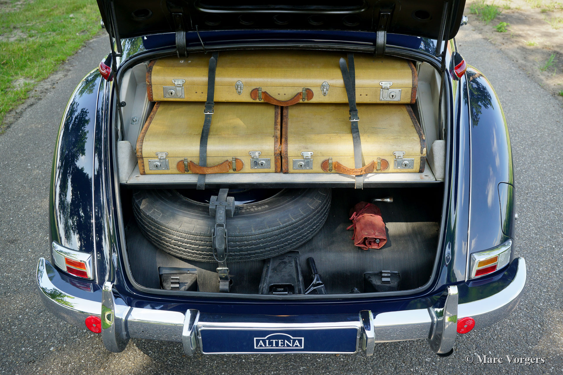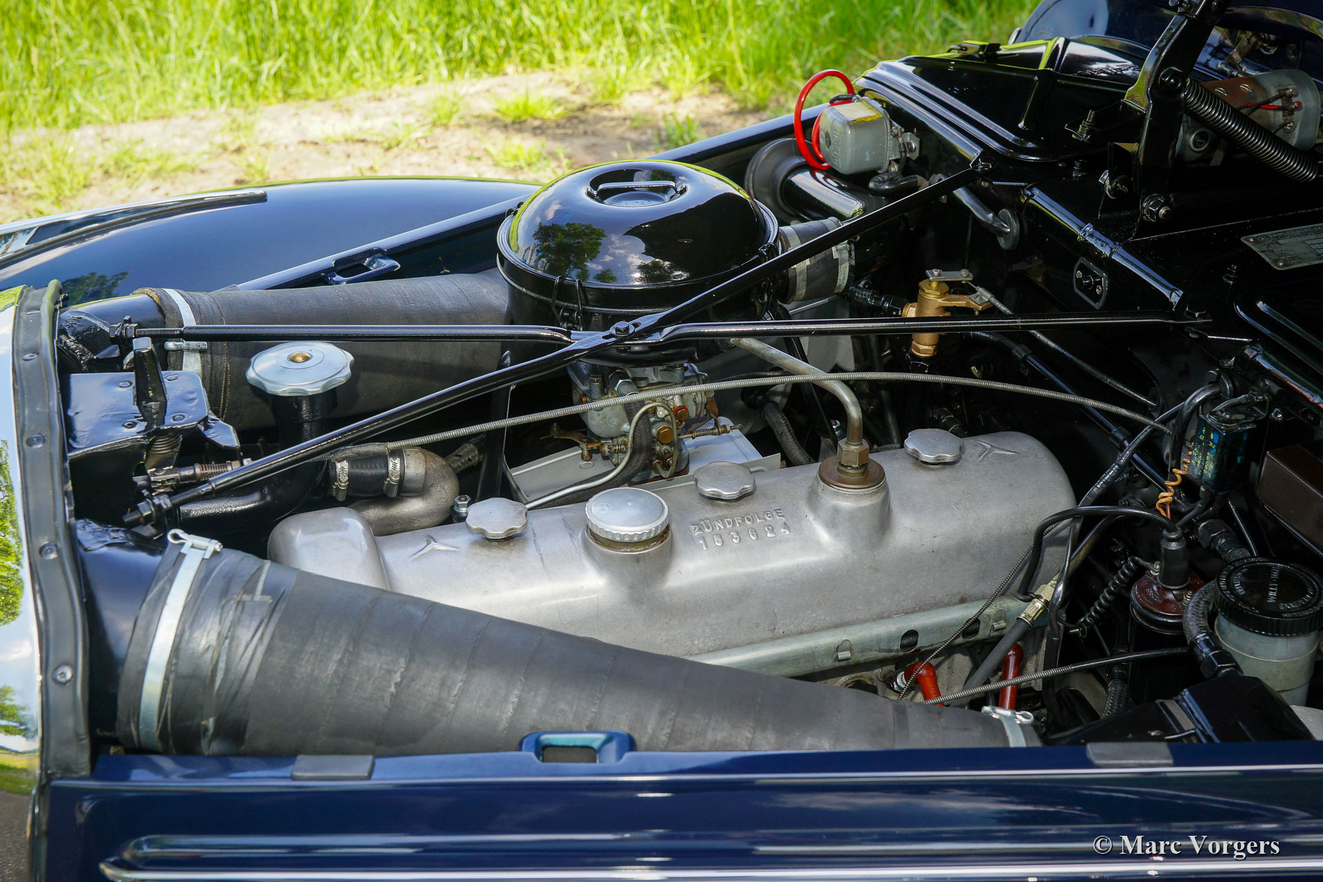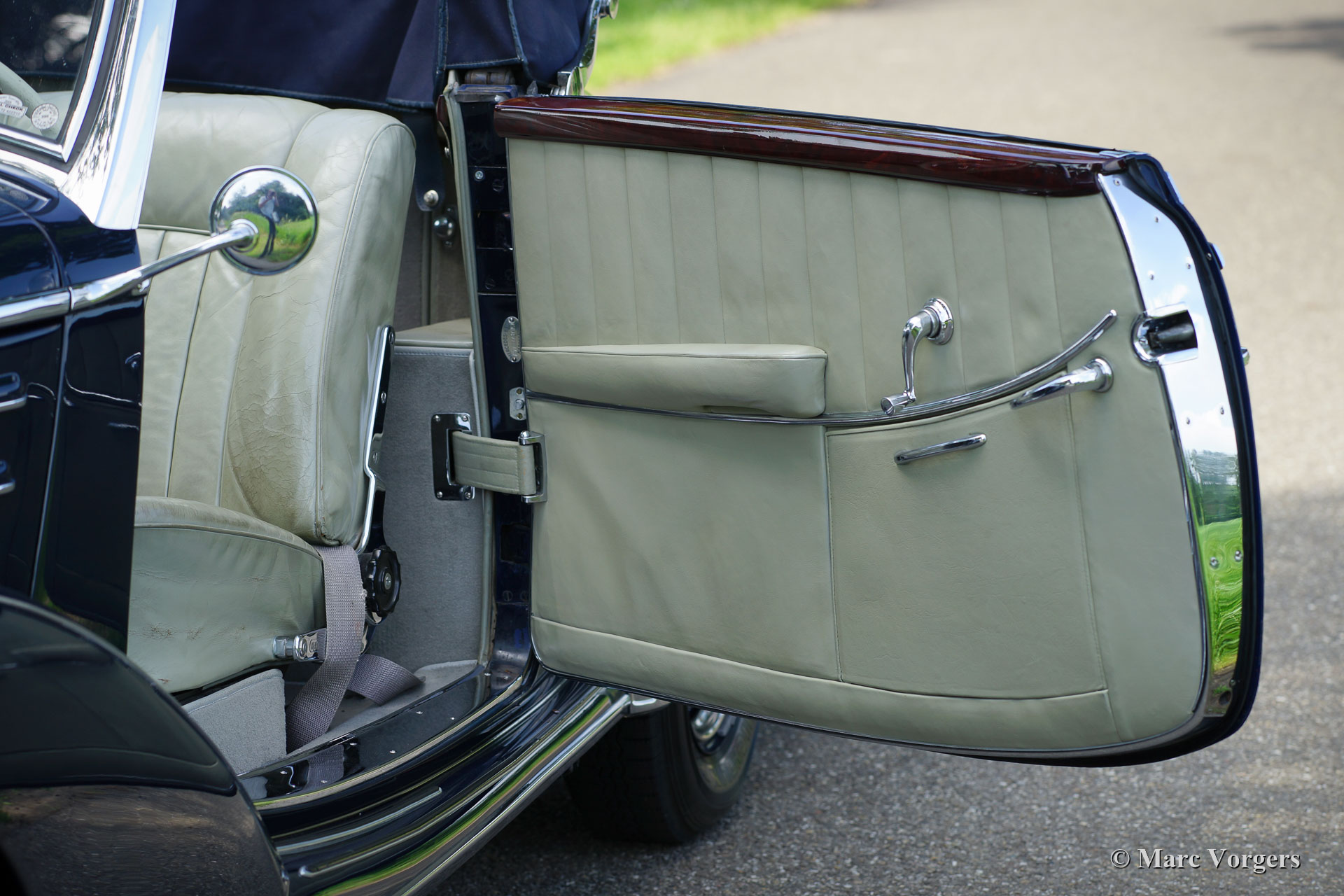 Mercedes-Benz 220 Cabriolet A, Jahr 1951. Farbe dunkelblau kombiniert mit einem grauen Lederausstattung und grauem Teppich. Dunkelblaues Verdeck und Verdeck Abdeckung. In den 1990er Jahren wurde dieses wunderschöne und seltene Mercedes 220 Cabriolet A von einem niederländischen Mercedes-Benz-Spezialisten umfassend restauriert. Alles wurde restauriert, überholt und / oder erneuert, nur die ursprüngliche Lederausstattung wurde renoviert und in das restaurierte Auto übernommen. Nach über 20 Jahren und nur 4983 Kilometern seit der Restaurierung ist das Auto immer noch in einem ausgezeichneten Zustand! Die Karosserie, Lackierung und Chrom sind in einem hervorragenden Zustand. Der Maschinenraum, die Unterseite und der Kofferraum sehen schön und sauber aus. Das Interieur befindet sich in gutem Zustand mit Gebrauchsspuren und Altersspuren. Das Auto zeigt alle Originaldetails und ist mit dem werkseitigen Original-Becker-Radio und den Bosch-Nebelscheinwerfern ausgestattet. Darüber hinaus wird das Auto mit der originalen Werkzeugrolle und dem äußerst seltenen originalen Kofferset von „Bad Cannstadt“ geliefert. Diese 220 Cabriolet A ist ein rares und sehr wünschenswertes Beispiel.