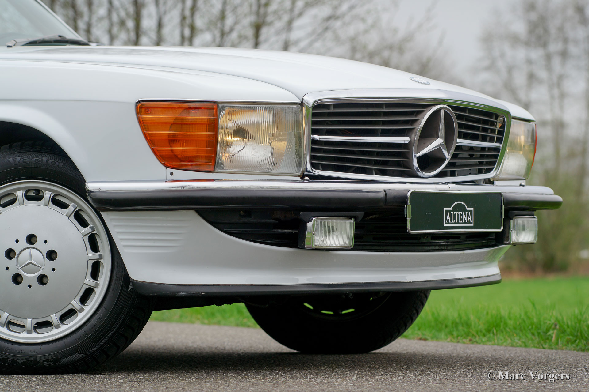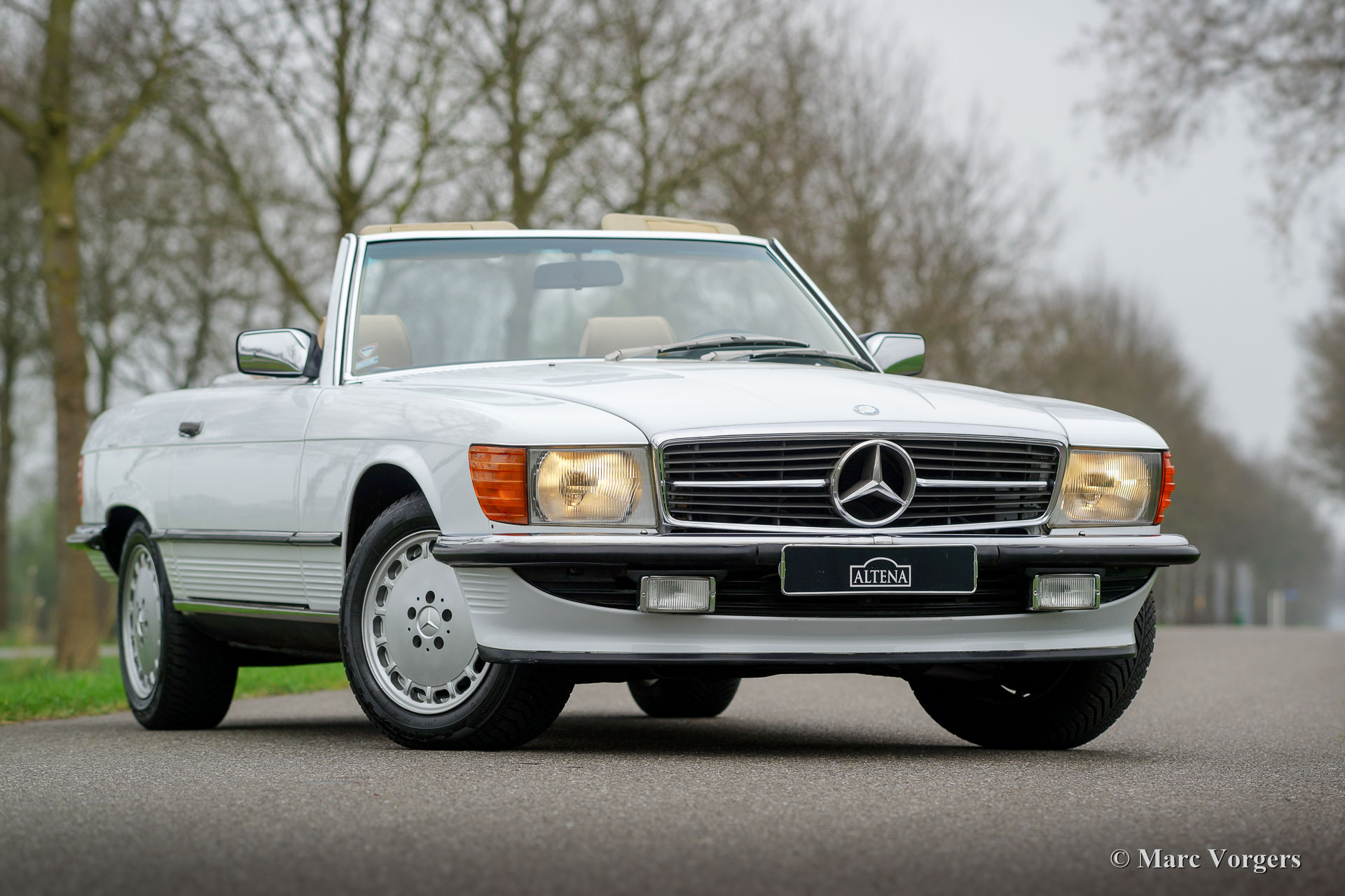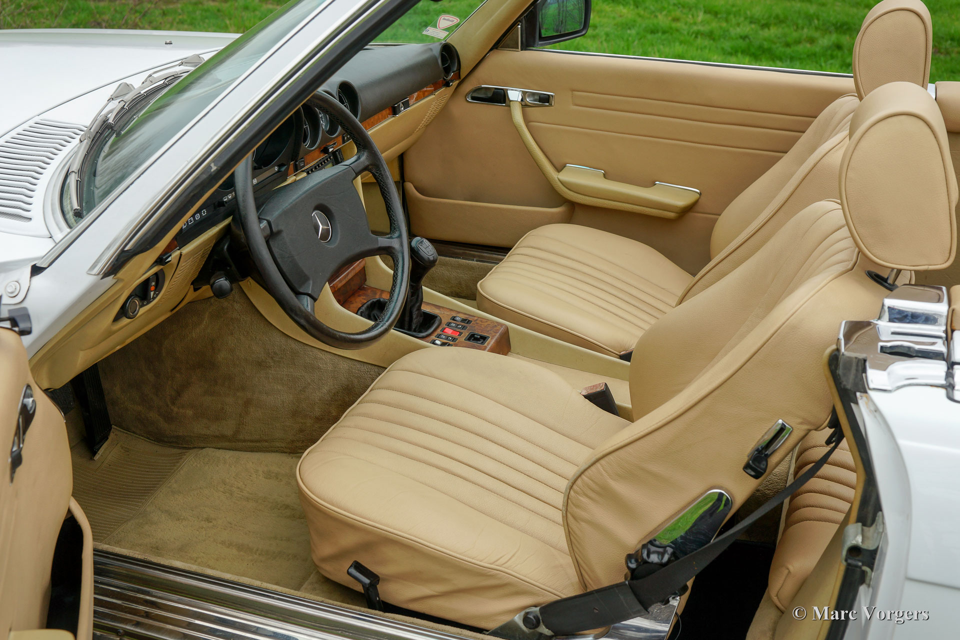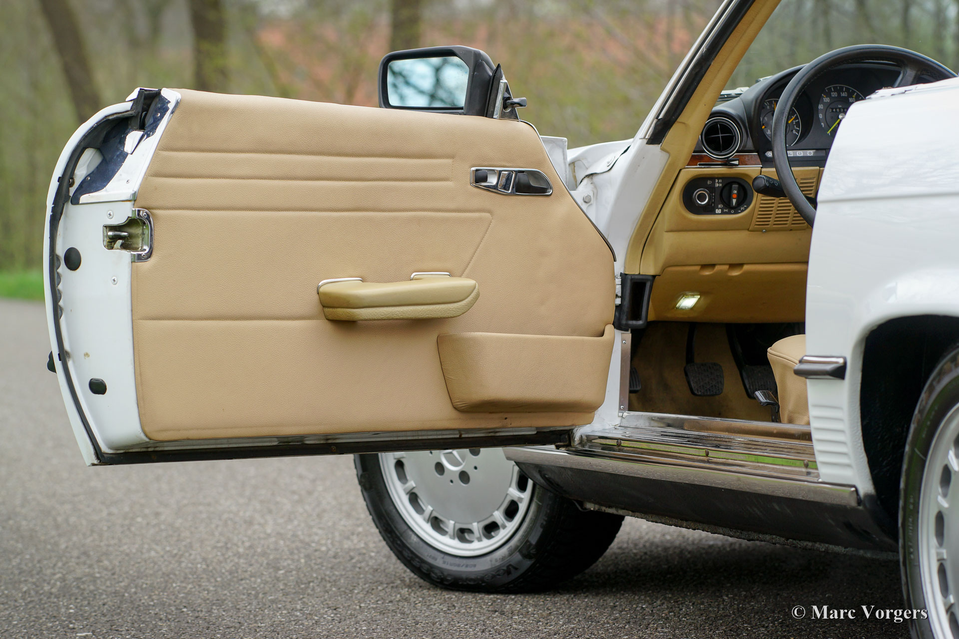 Mercedes-Benz 300 SL (Typ R 107), Jahr 1987. Fahrgestellnummer WDB1070411A06524X. Farbe weiß (Arktik Weiß) mit einer beigefarbenen Lederausstattung und beigefarbenem Teppich. Original Hard-Top in Wagenfarbe und ein schwarzes Mohair-Verdeck. Dies ist eine original europäische R 107 300 SL, das Automobil wurde neu in Deutschland verkauft. Das Auto wurde im Jahr 2015 in die Niederlande importiert. Dieser Mercedes 300 SL ist in einem sehr guten bis hervorragenden und super originalen Zustand! Dies ist das begehrenswerteste Sechszylinder-Modell mit dem sehr seltenen manuellen Getriebe! Das Auto ist sehr gut dokumentiert, die Datei enthält eine MB-Datenkarte mit Originalangaben und -nummern, Service-Rechnungen und allen Original-Handbüchern. Das ursprüngliche Bord-Werkzeug ist auch noch vorhanden. Dies ist ein herrlicher Mercedes-Benz 300 SL in super originalem Zustand! Das Auto ist bereit für jede Urlaubsreise oder was auch immer der neue Besitzer mit das Auto vor hat!