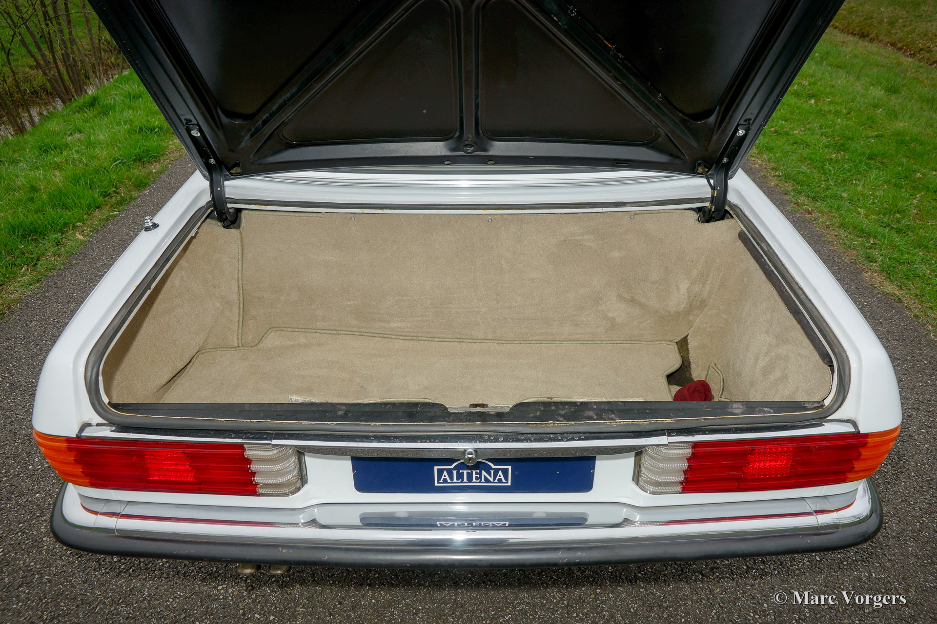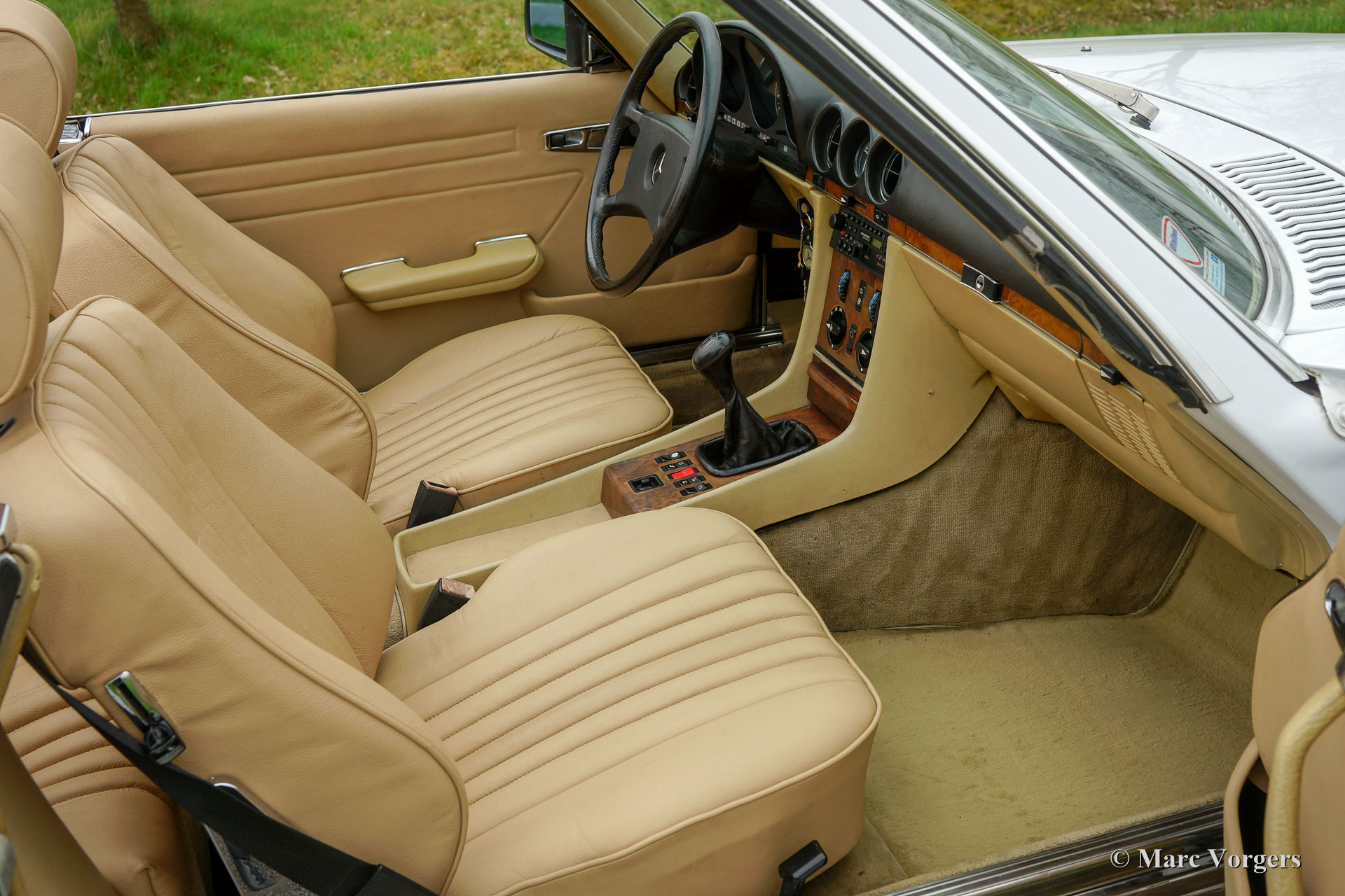 The Mercedes 280 SL, 350 SL and 450 SL are the successors of the 230 SL, 250 SL and 280 SL as we know under the nickname "Pagoda". The "Pagoda was built from the year 1963 until the year 1971, the year the new SL generation was presented to the market. Again Mercedes-Benz achieved to create a timeless design with slick, proper lines. In this shape the SL was sold for over twenty years. The "new" generation Mercedes SL is bigger, wider and heavier than its predecessor but again it was a perfect car considering construction, road holding and driving-comfort. The Mercedes-Benz SL was built with several engines. the buyer had to choose between a V8 with 3.5 or 4.5 liter cylinder capacity or a six cylinder engine with a cylinder capacity of 2.8 liter. The SL was standard equipped with a soft-top which could neatly be stowed away under a lid fully integrated in the car. Optionally the SL could be fitted with a hard-top. The hardtop can easily be fitted to the car, in a couple of minutes, with the soft-top down in place.