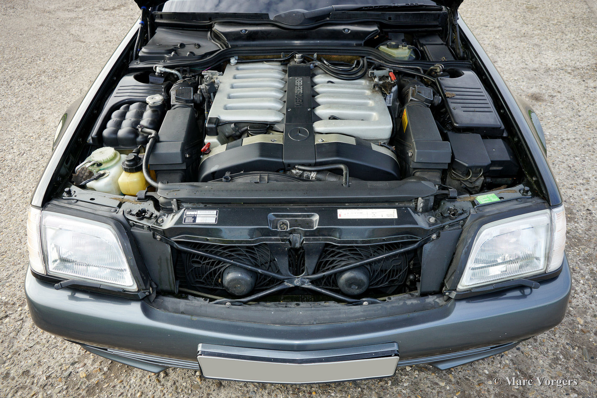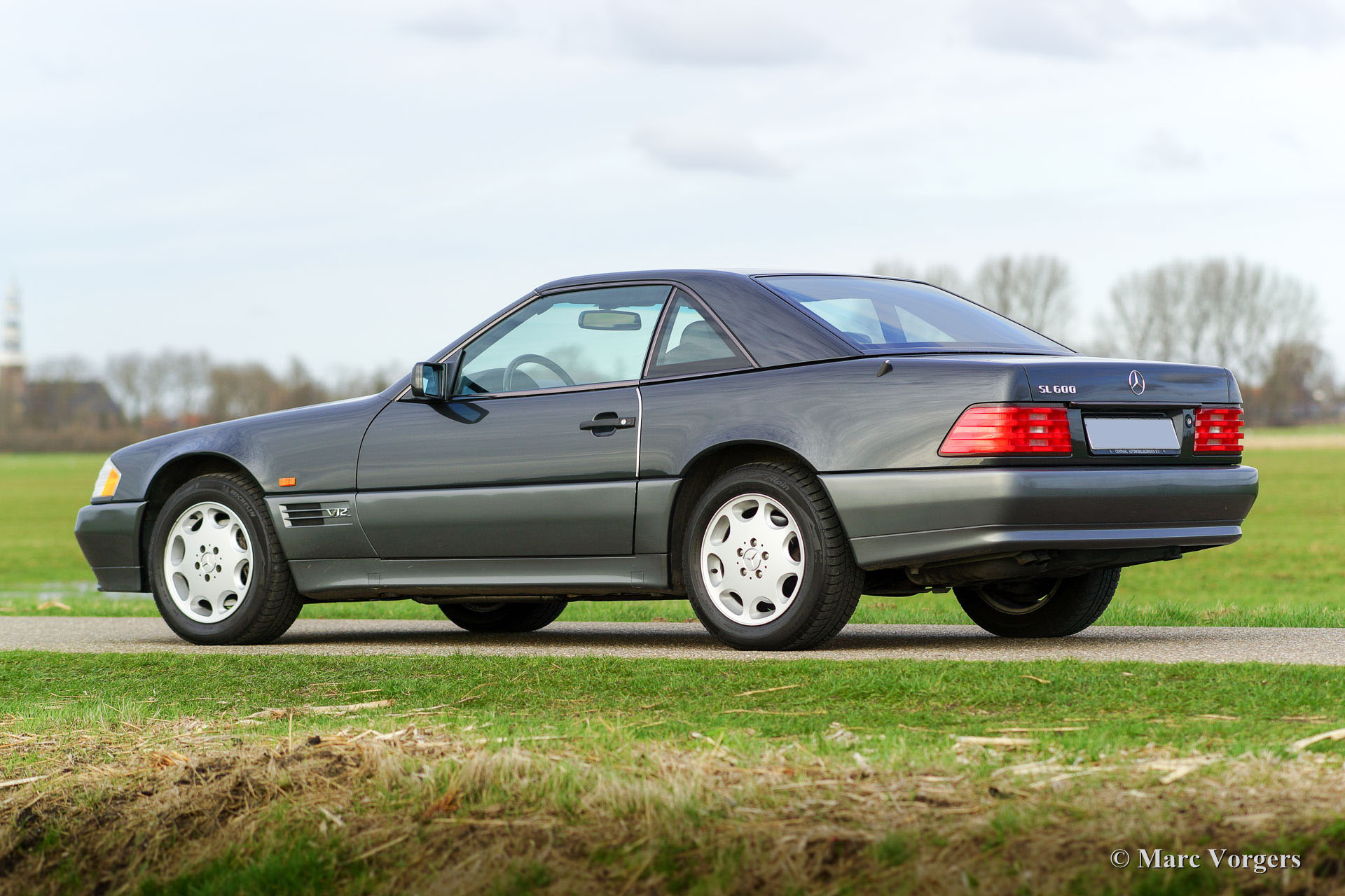 Mercedes-Benz 600 SL (Typ R129), Jahr 1995. Farbe anthrazit metallic mit schwarzem Vollleder-Interieur. Schwarze Mohair Haube und Hardtop in der Körperfarbe. Dieser beeindruckende Mercedes 600 SL wurde in Deutschland neu verkauft und das Auto ist mit einer kompletten Liste von Optionen ausgestattet. Von neuem hat das Auto nur 72.585 Kilometer gefahren. Diese 600 SL ist im Laufe der Jahre von Mercedes-Benz Vertreter gewartet. Dieser Mercedes 600 SL ist in einem hervorragenden Zustand! Sogar die ursprüngliche schwarze Mohair Haube ist in einem einwandfreien Zustand. Ein Aktenordner mit Service-Rechnungen, Handbüchern, Servicebuch, eine 600 SL Broschüre und andere Dokumente ist vorhanden. Das Auto ist unter anderem ausgestattet mit: Klimaanlage, Radio / CD-Sound-System und elektrisch verstellbare Sitze mit 3 Speichereinstellungen. Die ursprünglichen Werkzeuge sind auch vorhanden. Dies ist ein sehr Toller 600 SL in super Zustand!