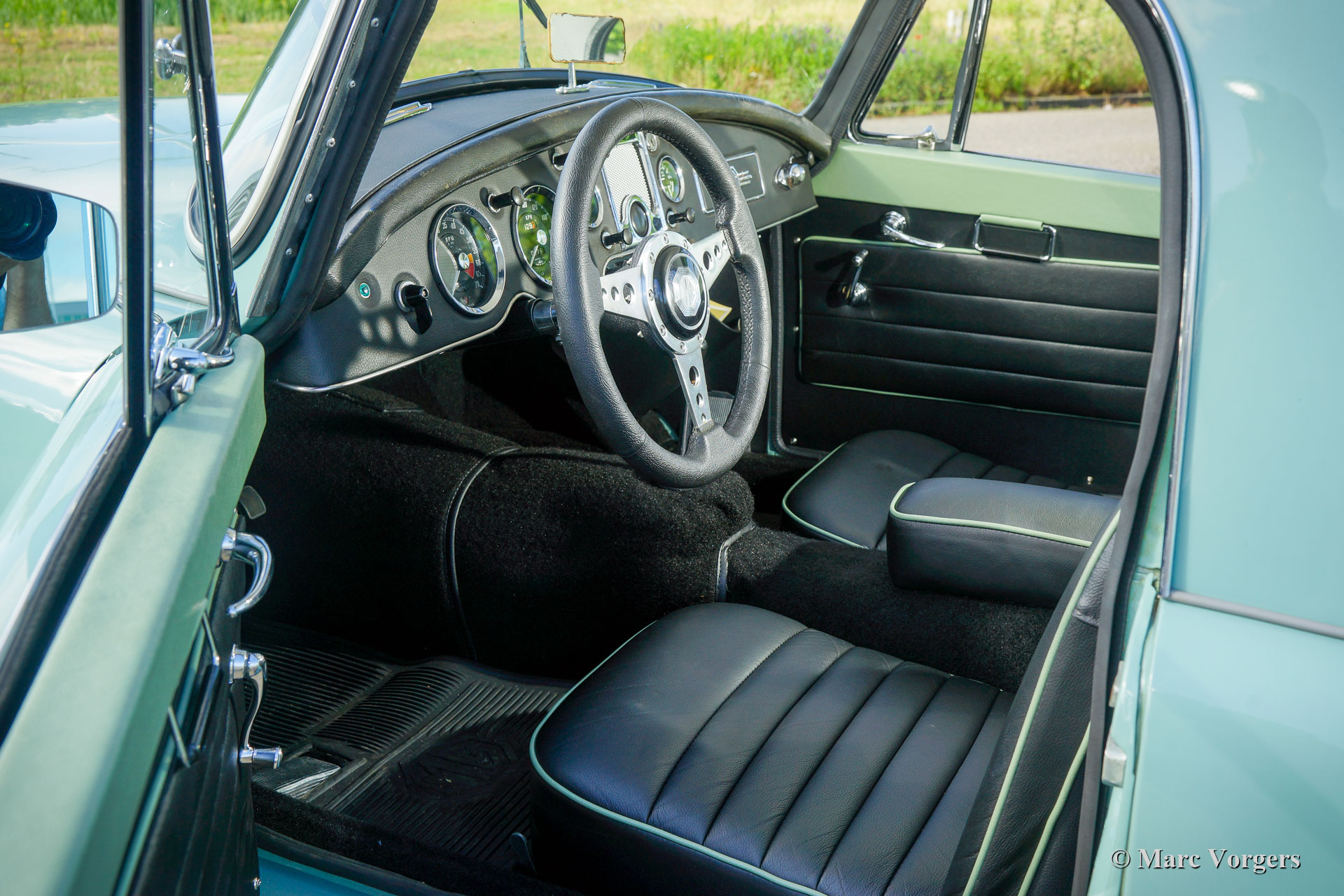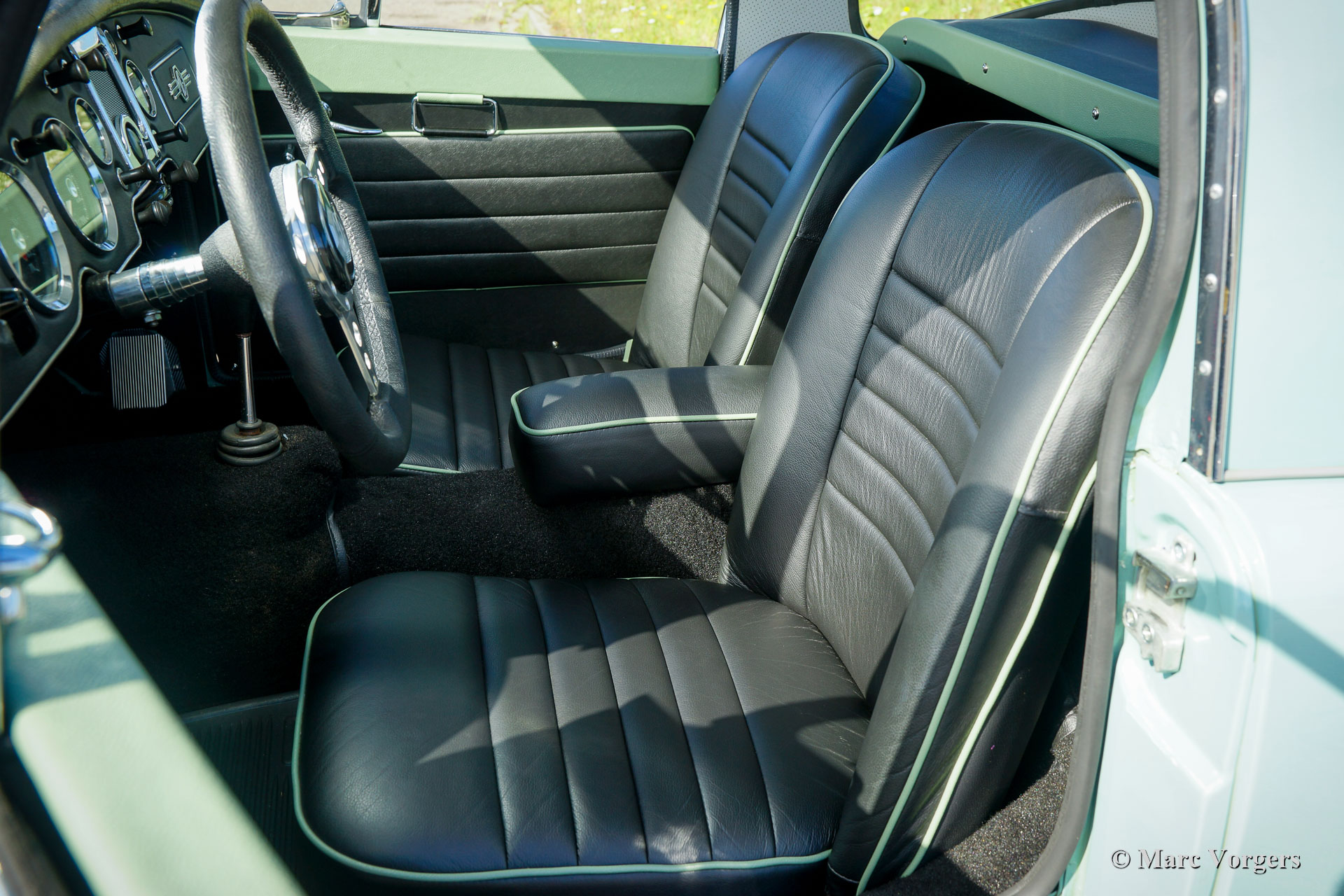 MG MGA 1500 Coupé, Jahr 1958. Farbe „Island Green“ kombiniert mit einer schwarzen Lederausstattung, hellgrünen Paspeln und schwarzem Teppich. Dieses wunderschöne MGA 1500 Coupé wurde in der Vergangenheit wunderschön restauriert. Der MG ist in einem hervorragenden Top-Zustand und das Auto fährt wunderbar. Das MGA-Coupé ist im Vergleich zum Roadster-Modell ein seltener Anblick. Es wurden nur etwa 5000 Coupés und über 43.000 Roadster gebaut! Um den Einstieg in den Fahrersitz zu erleichtern, ist das Auto mit einem kleineren Sportlenkrad ausgestattet. Dieser feine MGA Roadster zeigt alle Originaldetails und das Auto ist versehen von silber lackierte Speichenräder. Dies ist ein sehr begehrenswertes Beispiel in einem hervorragenden Zustand!