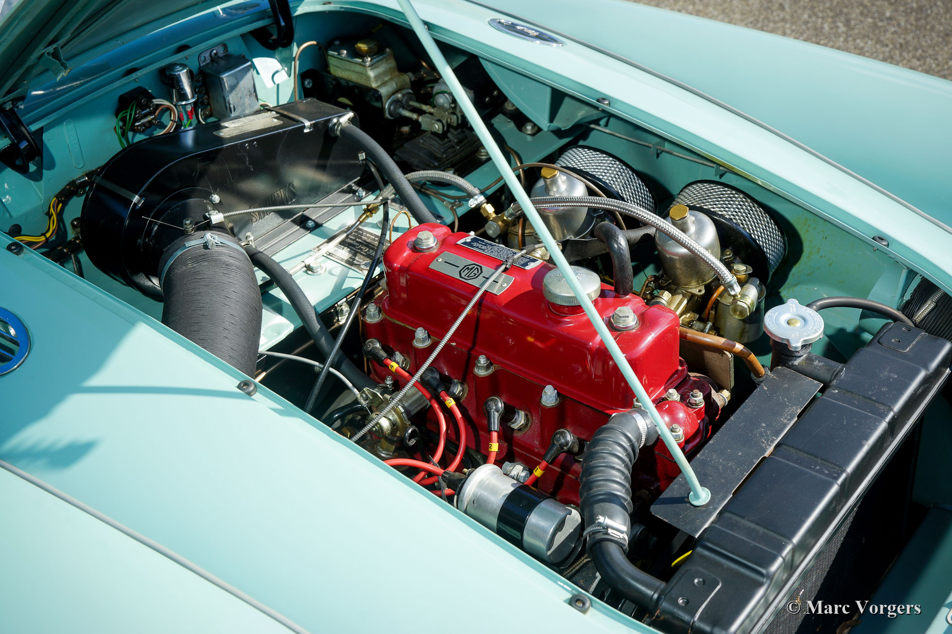 The year 1955 saw the introduction of the MGA. With this design the MG broke new grounds. After its predecessors MG TD and MG TF, which were largely based on the pre-war MG TB, it was a roadster with a very modern sporty design. Like its predecessors, the MGA was a great success and, like before, the greater part was sold in America. Until 1959, the MGA was equipped with a 1459 cc four-cylinder engine. From that year, the car was fitted with a 1588 cc four-cylinder. A 1622 cc four-cylinder engine replaced the 1588 cc. engine in 1961. The early MGA versions had very good drum brakes until 1959, but after that year, the MG A was equipped with disc brakes on the front wheels. The year 1962 saw the production of the MGA, the A 1600 Mk II. The MGB replaced this very popular British sports car, and was to develop the success of the MG A even further.