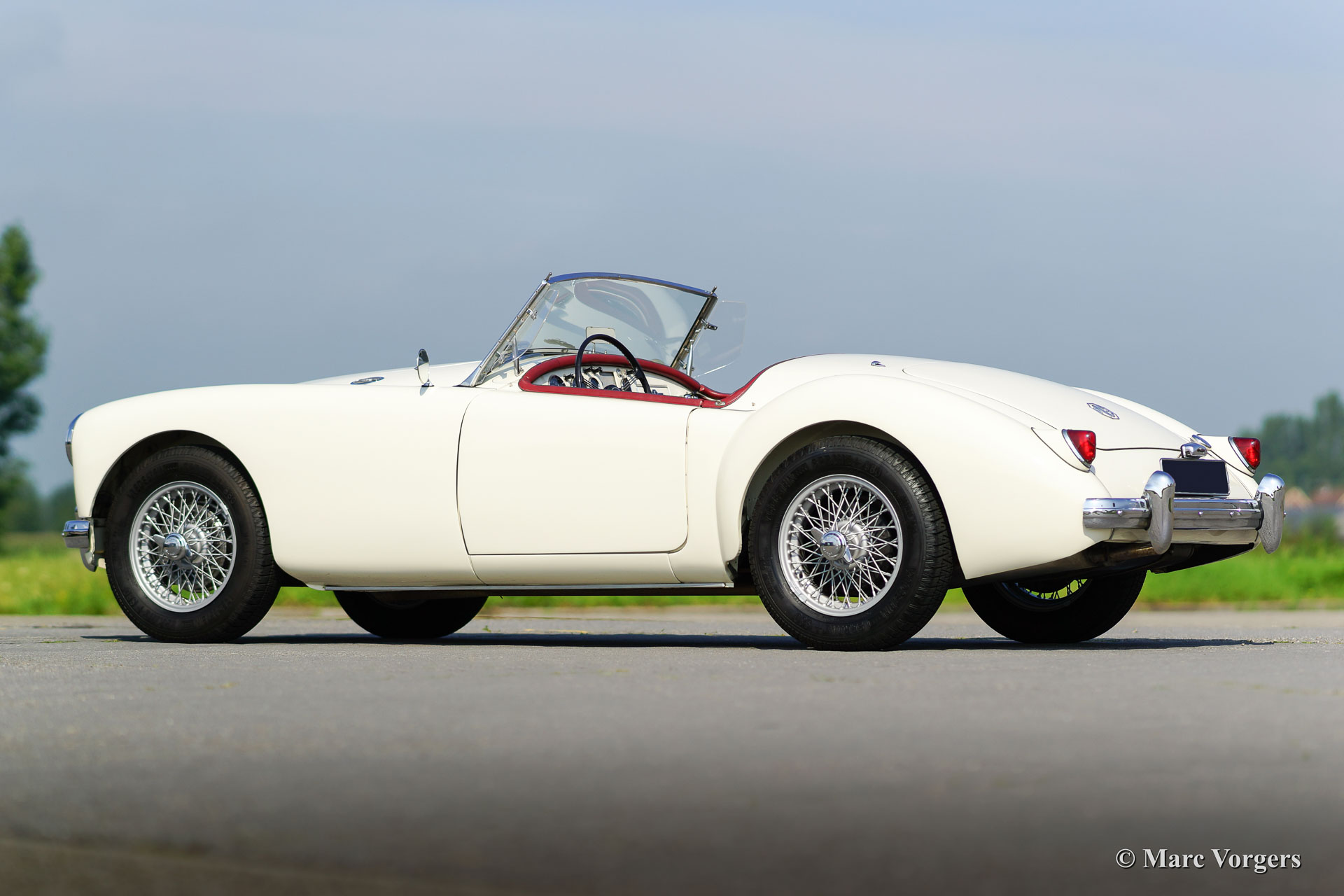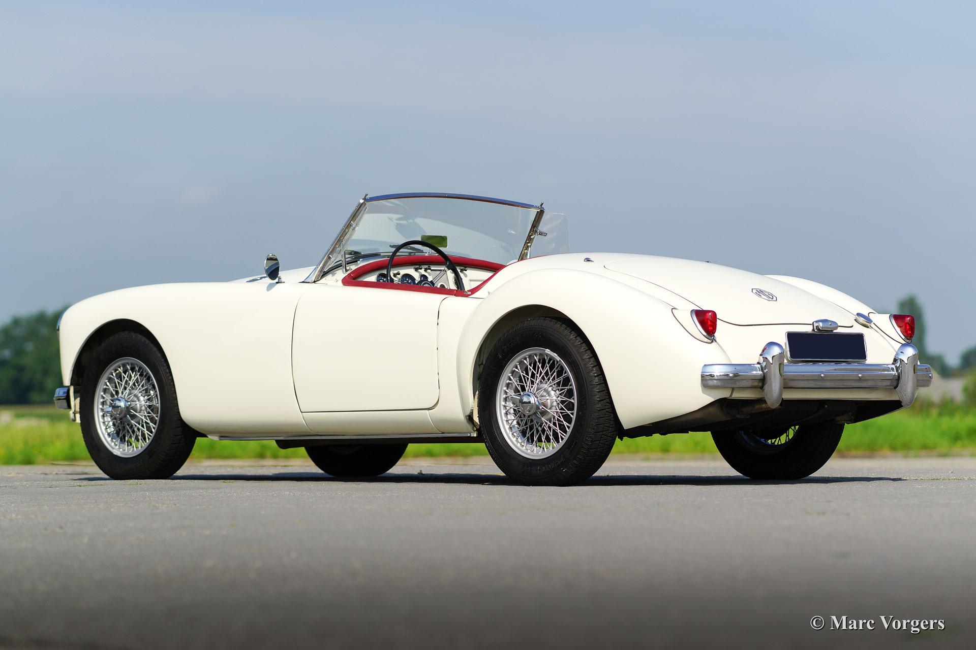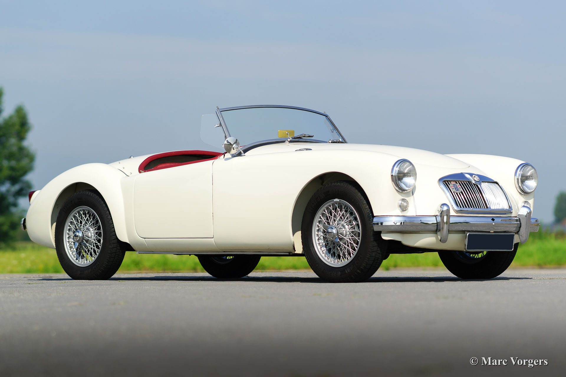 The year 1955 saw the introduction of the MGA. With this design the MG broke new grounds. After its predecessors MG TD and MG TF, which were largely based on the pre-war MG TB, it was a roadster with a very modern sporty design. Like its predecessors, the MGA was a great success and, like before, the greater part was sold in America. Until 1959, the MGA was equipped with a 1459 cc four-cylinder engine. From that year, the car was fitted with a 1588 cc four-cylinder. A 1622 cc four-cylinder engine replaced the 1588 cc. engine in 1961. The early MGA versions had very good drum brakes until 1959, but after that year, the MG A was equipped with disc brakes on the front wheels. The year 1962 saw the production of the MGA, the A 1600 Mk II. The MGB replaced this very popular British sports car, and was to develop the success of the MG A even further.