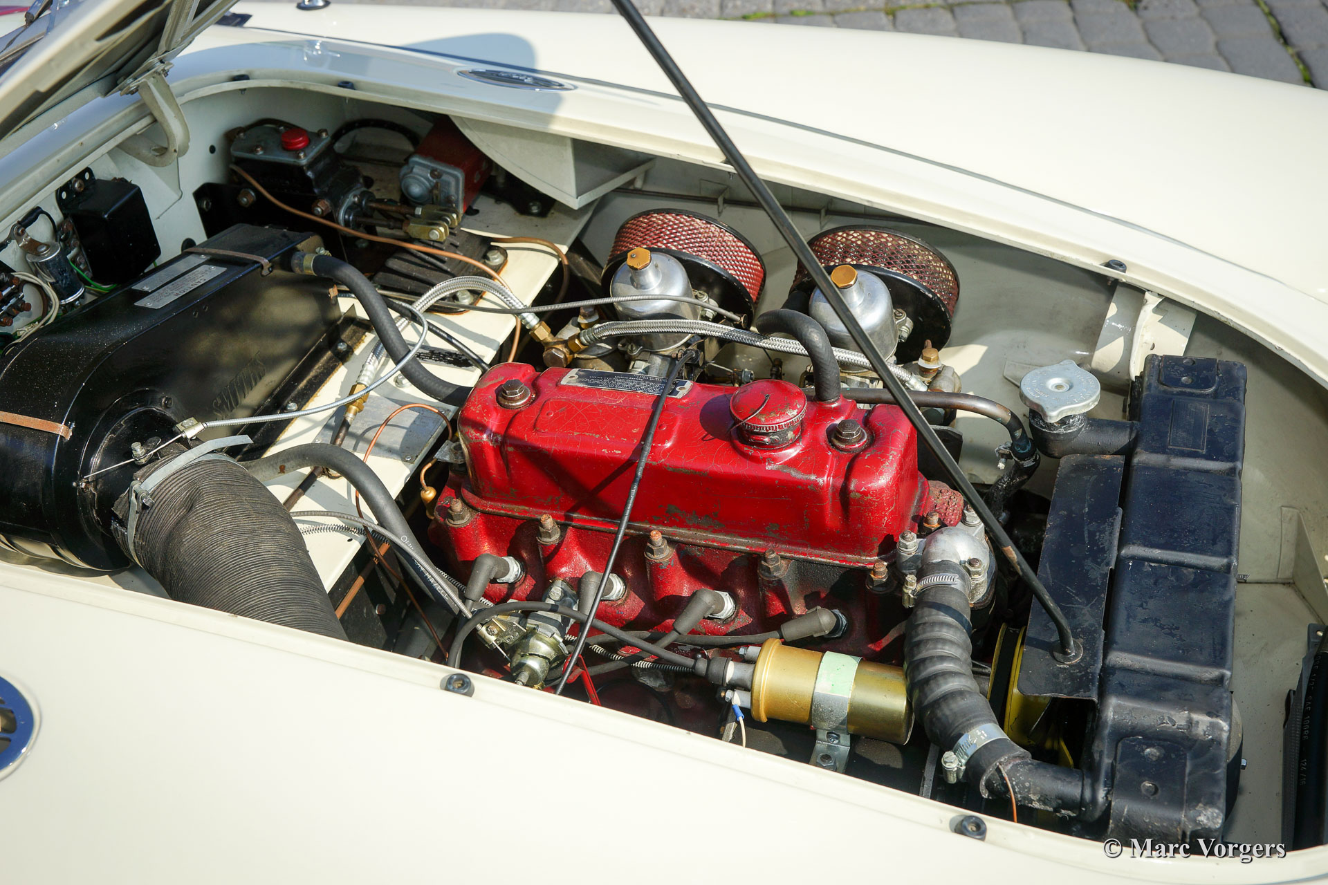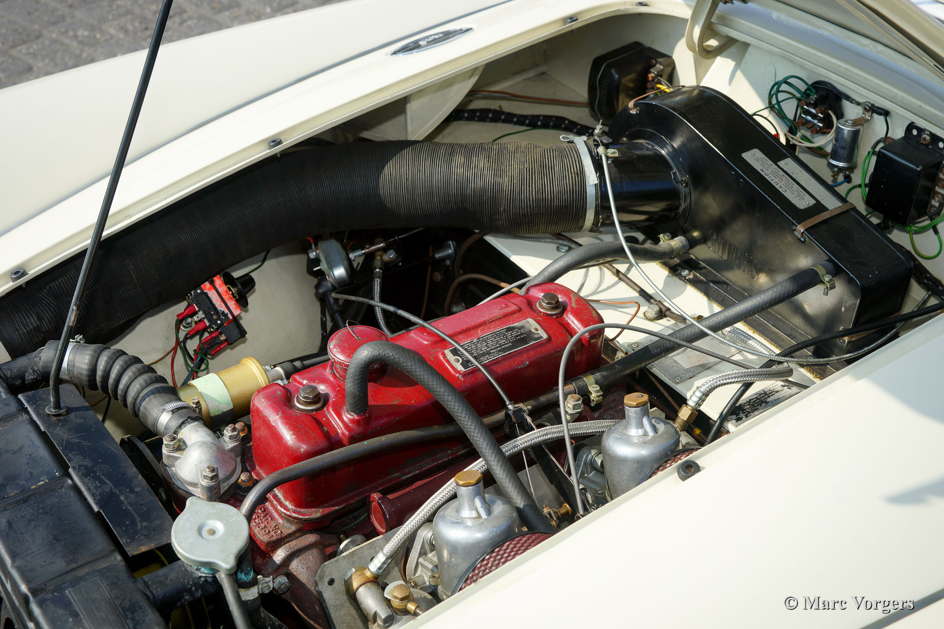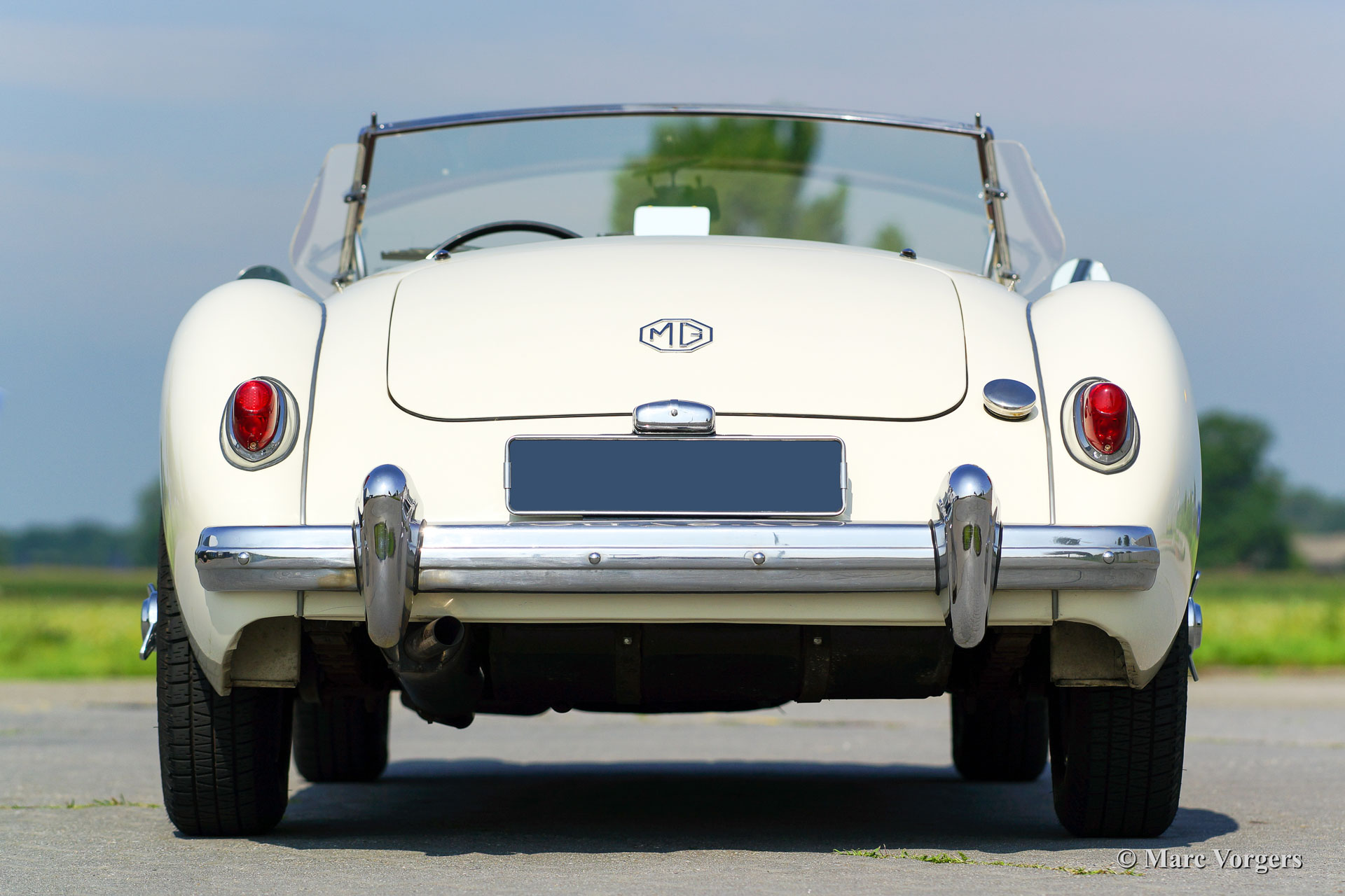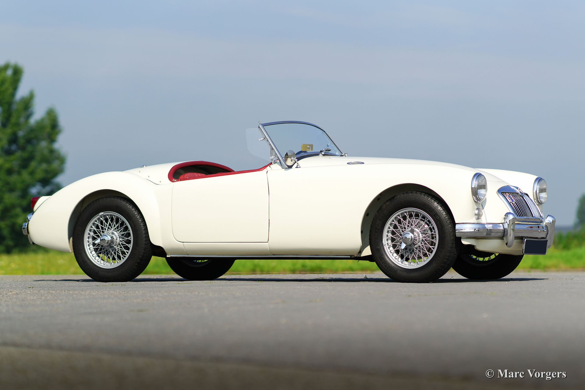The year 1955 saw the introduction of the MGA. With this design the MG broke new grounds. After its predecessors MG TD and MG TF, which were largely based on the pre-war MG TB, it was a roadster with a very modern sporty design. Like its predecessors, the MGA was a great success and, like before, the greater part was sold in America. Until 1959, the MGA was equipped with a 1459 cc four-cylinder engine. From that year, the car was fitted with a 1588 cc four-cylinder. A 1622 cc four-cylinder engine replaced the 1588 cc. engine in 1961. The early MGA versions had very good drum brakes until 1959, but after that year, the MG A was equipped with disc brakes on the front wheels. The year 1962 saw the production of the MGA, the A 1600 Mk II. The MGB replaced this very popular British sports car, and was to develop the success of the MG A even further.
