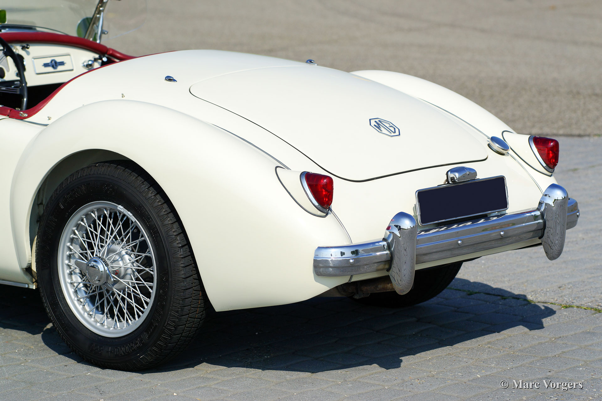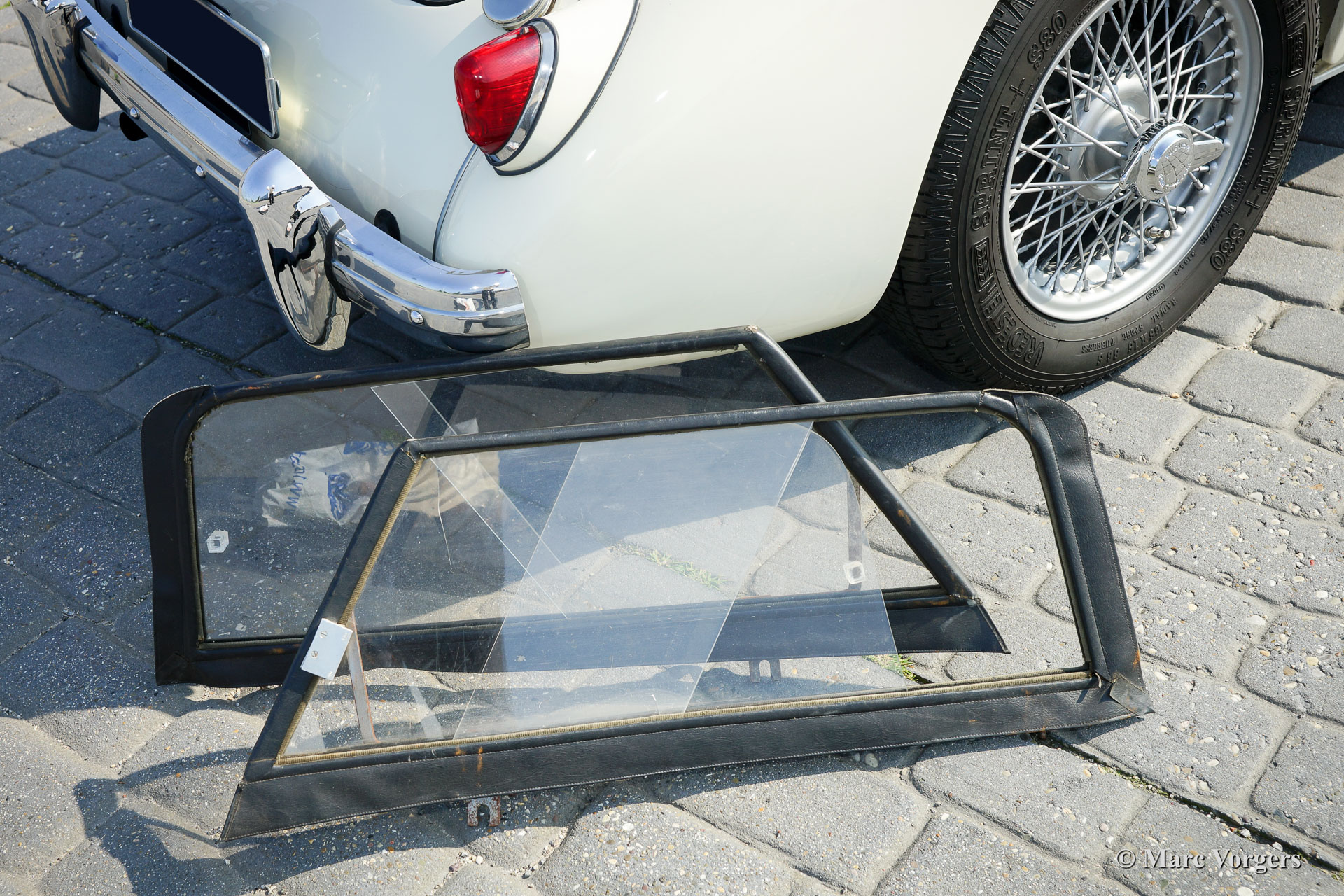MG MGA 1500 Roadster, Jahr 1958. Farbe Old English White mit einem roten Leder-Interieur. Schwarz Verdeck, Persenning und Seiten-Fenster. Dieses schöne MG MGA 1500 wurde in den Jahren 1997-2002 restauriert. Fast alles wurde restauriert und / oder erneuert. Viele Rechnungen und einige Fotos der Wiederherstellung sind vorhanden. Die MG ist in ausgezeichnetem Zustand und das Auto fährt perfekt. Seit der Wiederherstellung war der Wagen zwei Eigentümer bekannt und hat das Auto nur etwa 4000 Kilometer gefahren.
