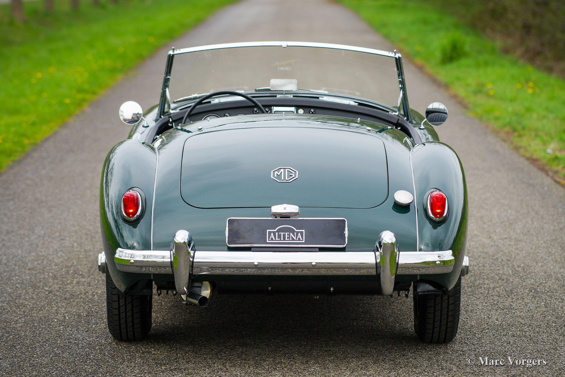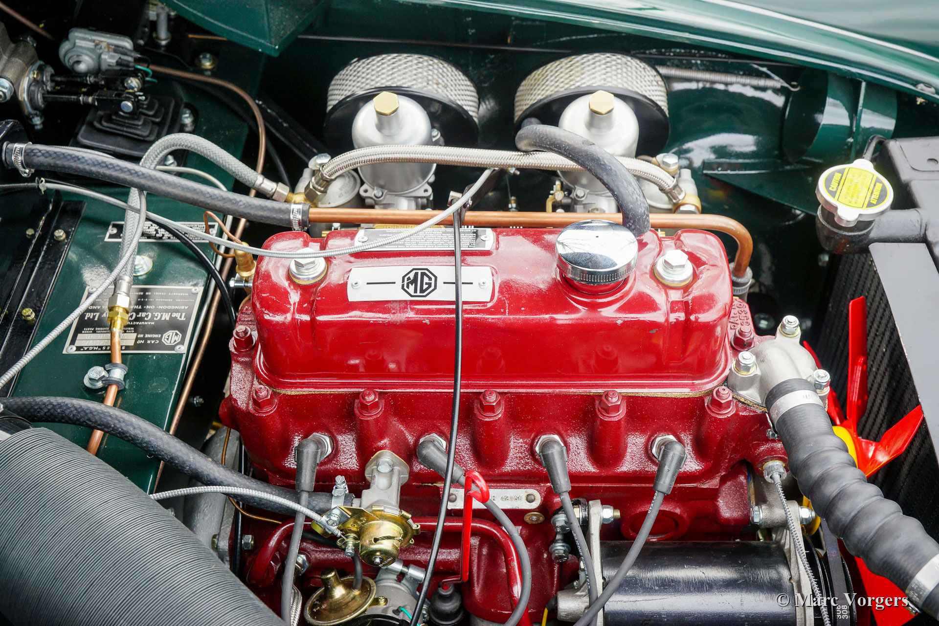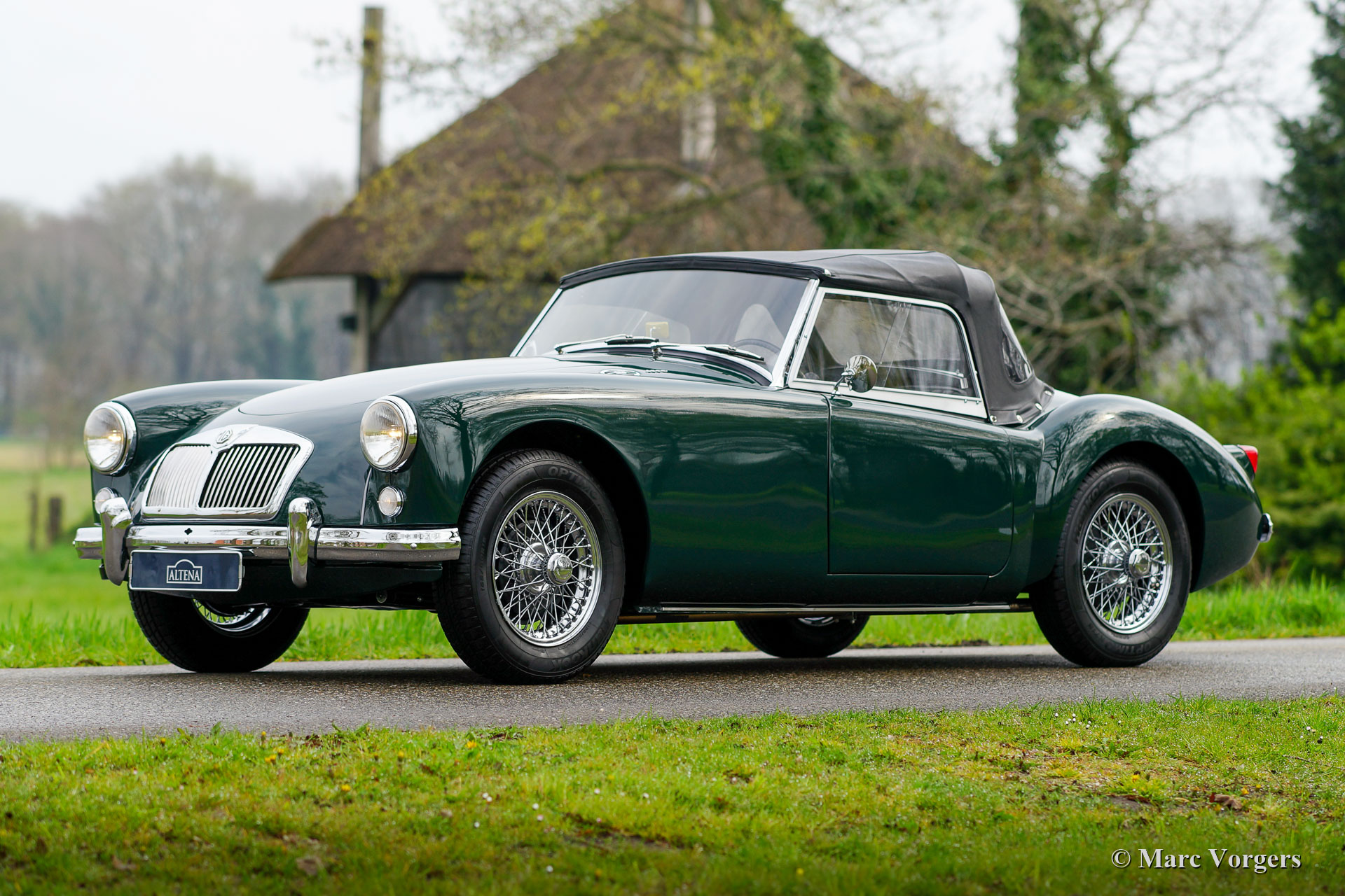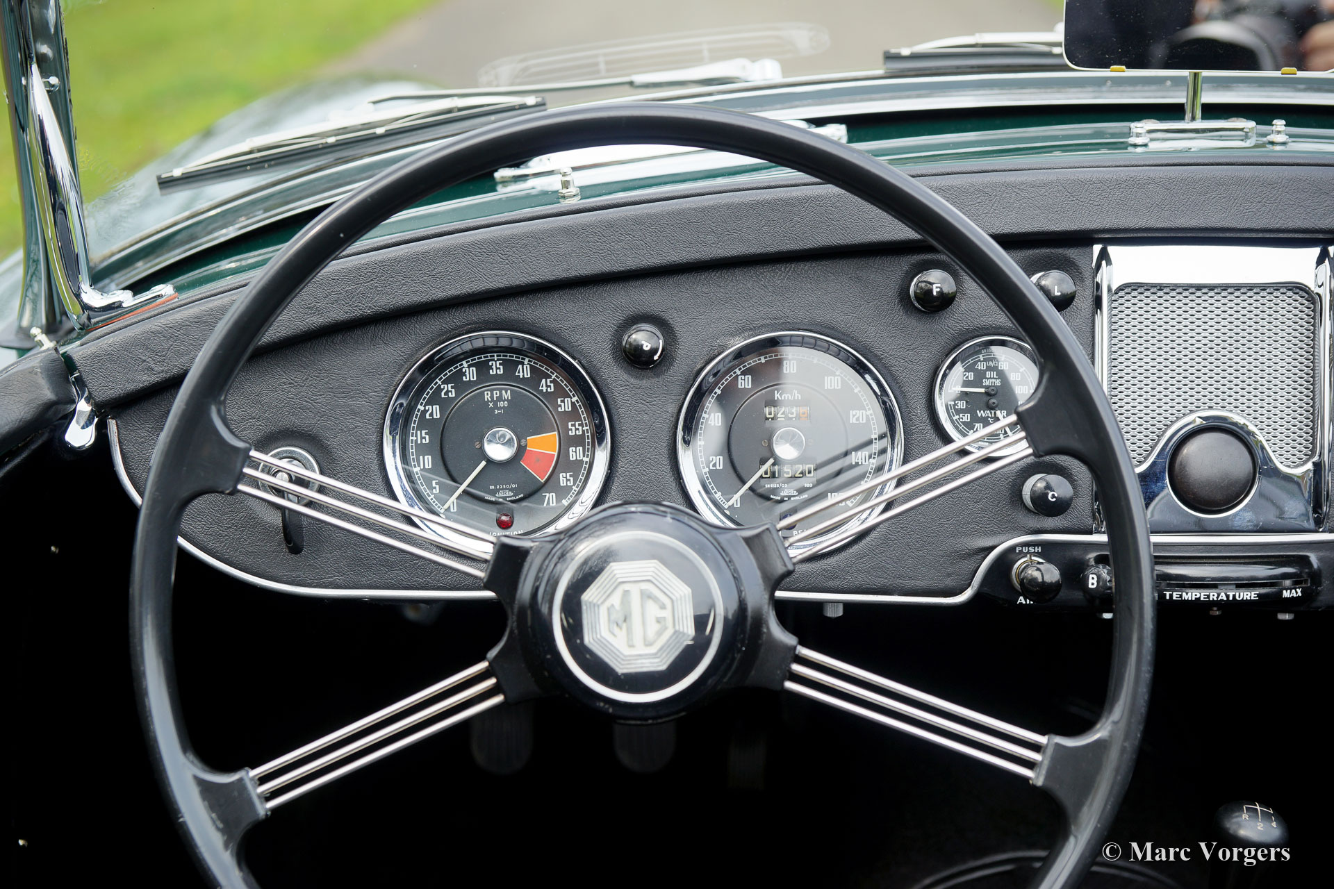 The year 1955 saw the introduction of the MGA. With this design the MG broke new grounds. After its predecessors MG TD and MG TF, which were largely based on the pre-war MG TB, it was a roadster with a very modern sporty design. Like its predecessors, the MGA was a great success and, like before, the greater part was sold in America. Until 1959, the MGA was equipped with a 1459 cc four-cylinder engine. From that year, the car was fitted with a 1588 cc four-cylinder. A 1622 cc four-cylinder engine replaced the 1588 cc. engine in 1961. The early MGA versions had very good drum brakes until 1959, but after that year, the MG A was equipped with disc brakes on the front wheels. The year 1962 saw the production of the MGA, the A 1600 Mk II. The MGB replaced this very popular British sports car, and was to develop the success of the MG A even further.