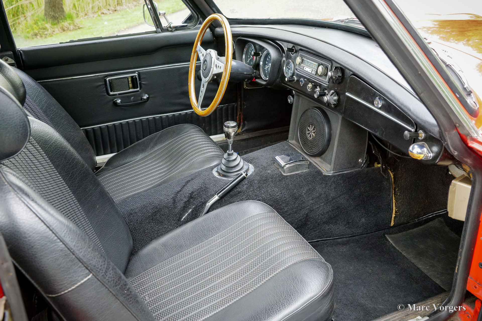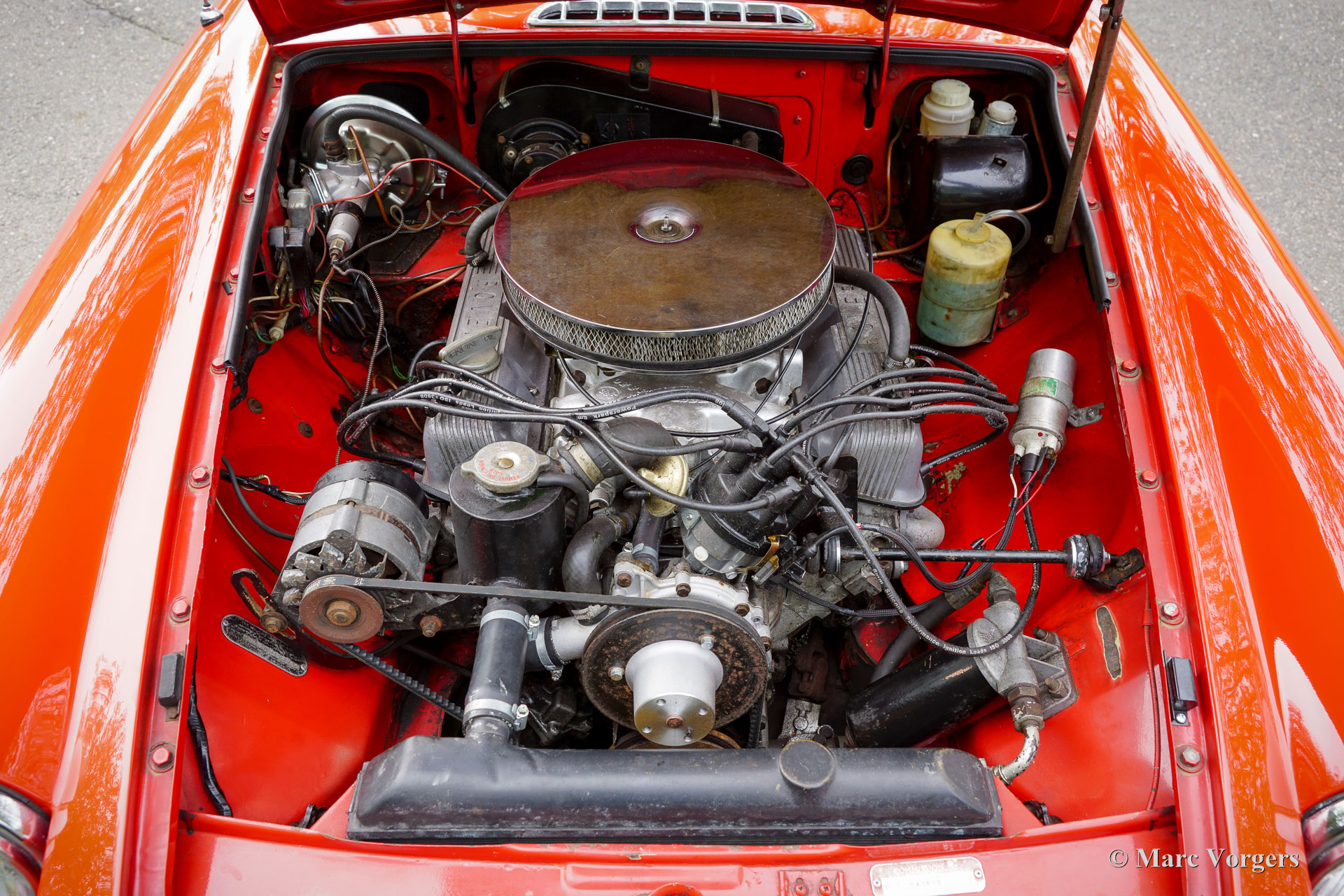 MG MGB GT V8, Baujahr 1971. Fahrgestellnummer GHD5 2462796. Rote Außenfarbe kombiniert mit schwarzer Vinyl-Innenausstattung und schwarzem Teppich. Dieser wunderbare MGB GT wurde im Juni 1971 als Standard-Vierzylinder-MGB GT gebaut. Das Auto wurde im Mai 1975 in den Niederlanden erstmals zugelassen. Damals war das Auto bereits mit einem hochverdichteten (10,5:1) Rover P5/P6 3500 V8-Motor ausgestattet. Der originale Zulassungsbescheid aus dem Jahr 1975 ist noch vorhanden und beweist, dass der V8 bereits eingebaut war. Seit Neukauf hat das Auto nur 91630 Meilen (ca. 147.000 Kilometer) gefahren, was korrekt ist, da die Angaben der niederländischen Kfz-Behörde logisch und richtig sind (wird bei jeden APK/TÜV notiert). Bedauerlicherweise ist nicht bekannt, wo der frühe V8-Umbau durchgeführt wurde. Es wird gesagt, dass das Auto ein Costello V8-Umbau ist, aber wir sehen keinen Beweis dafür. Nicht dokumentiert und nicht durch mechanische/äußere Details unterstützt, die wir online finden können. Lediglich das Vorhandensein des V8-Motors und eines „Costello“-Emblems auf dem Kühlergrill stützen diese Annahme. Seit 1975 hatte das Auto nur drei Besitzer, von denen es seit 1983 nacheinander zwei Brüdern gehörte. Das Auto wird ohne Historie geliefert, aber das Auto und sein letzter Besitzer sind uns seit über 20 Jahren bekannt. Das Auto ist in einem sehr guten Zustand und wurde über die Jahre gut gepflegt. Die Karosserie erhielt erst kürzlich einen neuen Lack in der Originalfarbe. Die ersten vier Jahre dieses MG MGB GT V8 bleiben ein Rätsel, aber ab seiner Erstzulassung im Mai 1975 ist die Historie solide wie ein Fels. Tatsache ist, dass dieser MGB GT ein sehr guter V8-Umbau mit Linkslenkung ist, mit einem ordentlichen Rover 3500 V8 mit 180 SAE-PS (161 DIN-PS) und hoher Kompression, der mit einem Vierfachvergaser von Edelbrock ausgestattet ist, der für noch mehr Leistung sorgt! Die Motorhaube mit den ‚Power-Ausbuchtungen‘ stammt vom Sechszylinder-MGC, und die Revolution-Felgen sind originale Vintage-Modelle mit 185-70-14 Dunlop-Reifen. Das Auto ist außerdem mit einem Vierganggetriebe und Overdrive ausgestattet. MG ließ sich von den „Costello“ MGB V8 inspirieren und begann im April 1975 mit der Produktion einer eigenen V8 Version. Die Werksfahrzeuge waren alle mit Rechtslenkung und einer leistungsreduzierten Version (143 SAE-PS) des Rover 3500 V8 ausgestattet. Der hier präsentierte MGB GT mit frühem V8-Umbau hat sich als sehr gut konstruiertes Auto und zuverlässiger Reisebegleiter erwiesen! Dieser MGB GT V8 ist ein großartiger Fund für MG-Enthusiasten und -Historiker, die die frühe Geschichte des Autos erforschen und gleichzeitig dieses wundervolle und beeindruckende Fahrwerk in vollen Zügen genießen möchten!