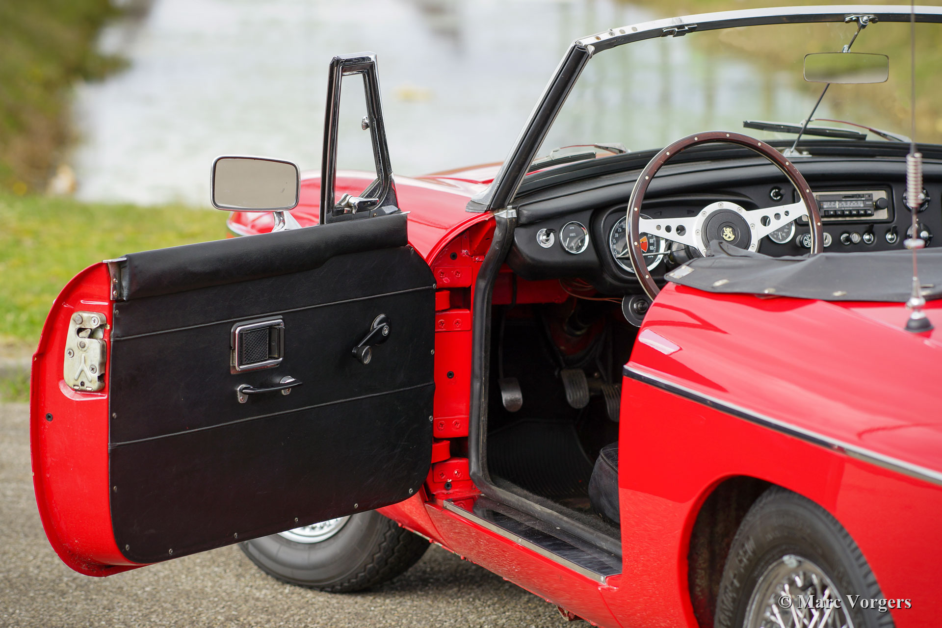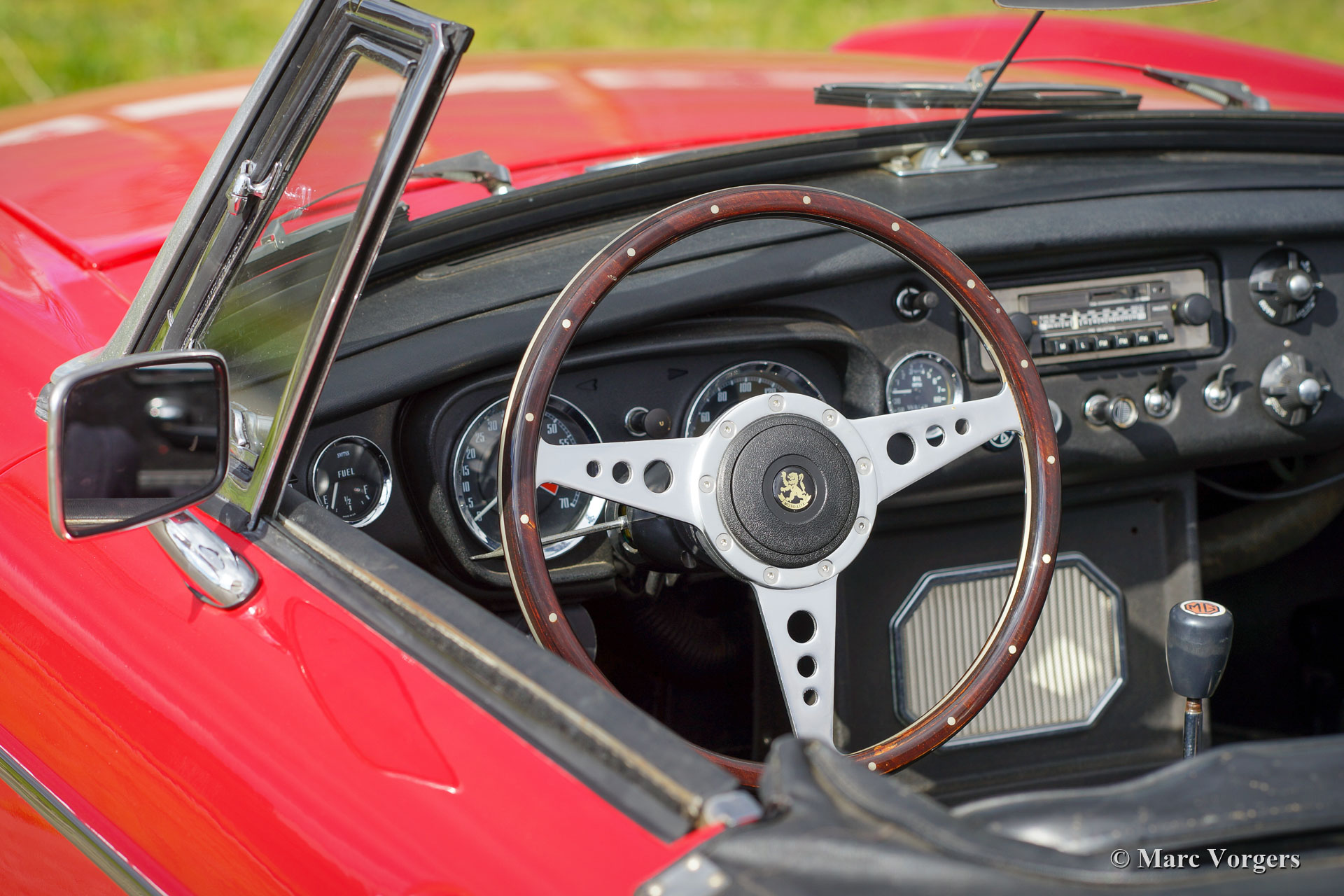 MG MGB Roadster, Jahr 1970. Farbe Rot kombiniert mit einer schwarzen Lederausstattung und einem schwarzen Teppich. Dieser schöne MGB Roadster wurde in den Niederlanden neu verkauft. Es ist das begehrte Modell mit dem Stahlarmaturenbrett. In der Vergangenheit wurde das Auto restauriert und es wurde ein überholter 1800 ccm Motor eingebaut. Dieser MGB ist in einem guten Zustand und es wurde immer pünktlich gewartet. Das Auto zeigt normale Gebrauchsspuren und es fährt herrlich! Das Auto verfügt über einige wünschenswerte Optionen wie Chromdrahträder, Overdrive, Lederausstattung, eine Chrom-Gepäckablage, ein Sportlenkrad mit Holzfelge und zwei an der Tür montierte Rückspiegel. Darüber hinaus ist das Auto mit einer elektronischen Zündung, einem Ölkühler und einem elektrischen Lüfter ausgestattet. Dieser MGB Roadster ist bereit für einen fantastischen Sommer!