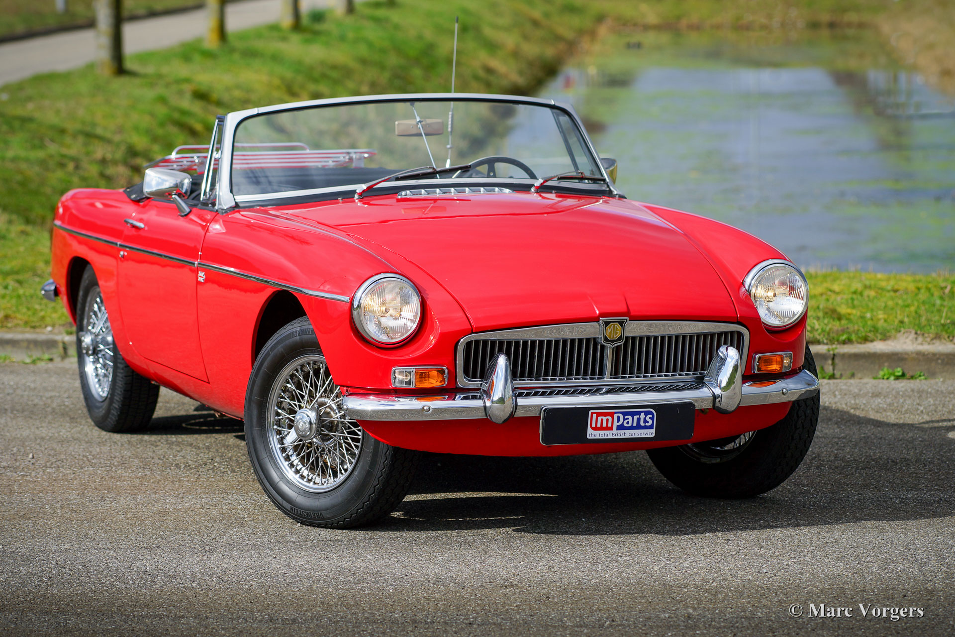 The MG B was the first MG (Morris Garage) to be built of unitary construction bodywork. The MG B roadster was manufactured between 1962 and 1980. Early models can be recognized by the chrome bumpers, but because of American rules on safety, the later models were equipped with synthetic bumpers. The greater part was exported to the United States.