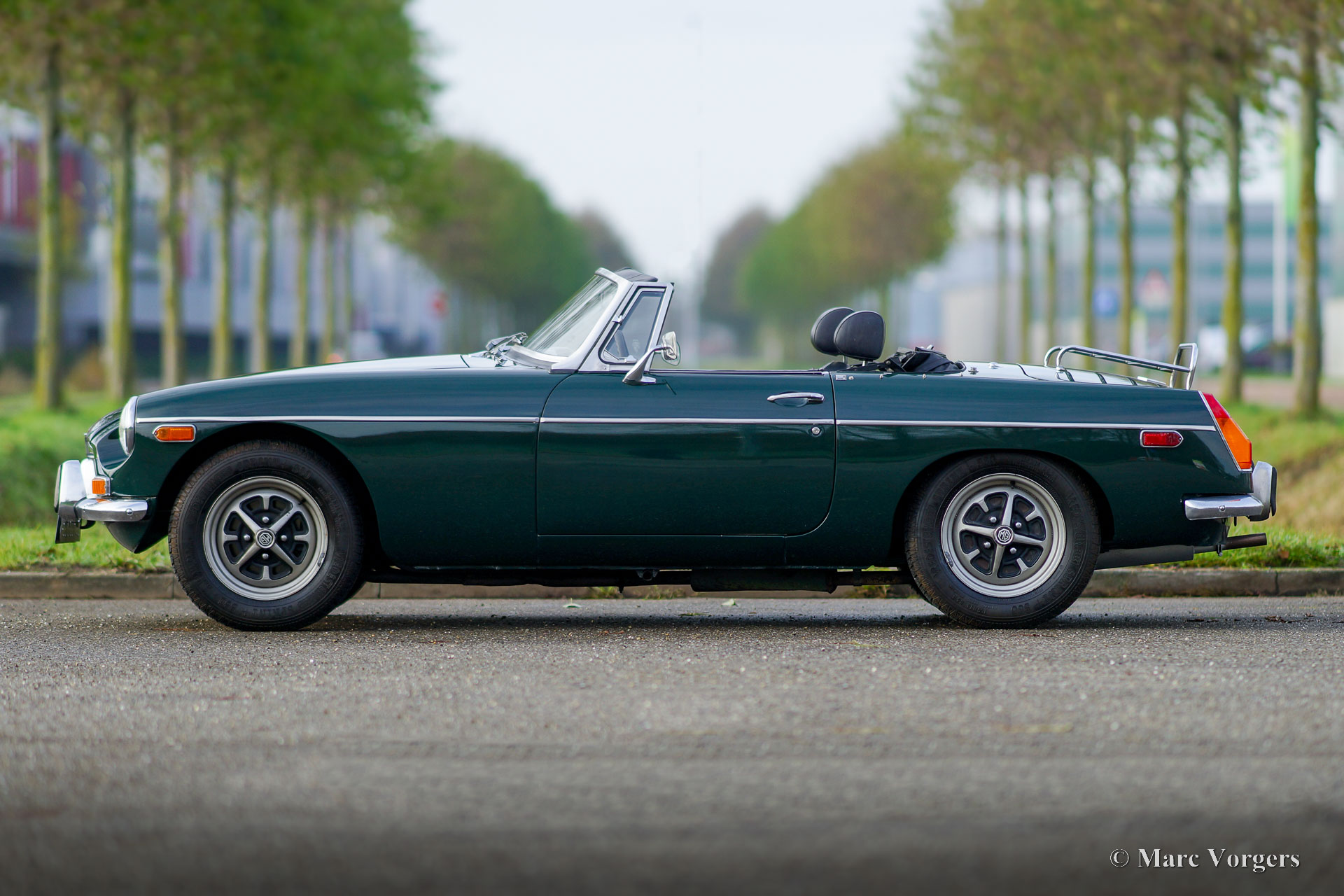 The MG B was the first MG (Morris Garage) to be built of unitary construction bodywork. The MG B roadster was manufactured between 1962 and 1980. Early models can be recognized by the chrome bumpers, but because of American rules on safety, the later models were equipped with synthetic bumpers. The greater part was exported to the United States.