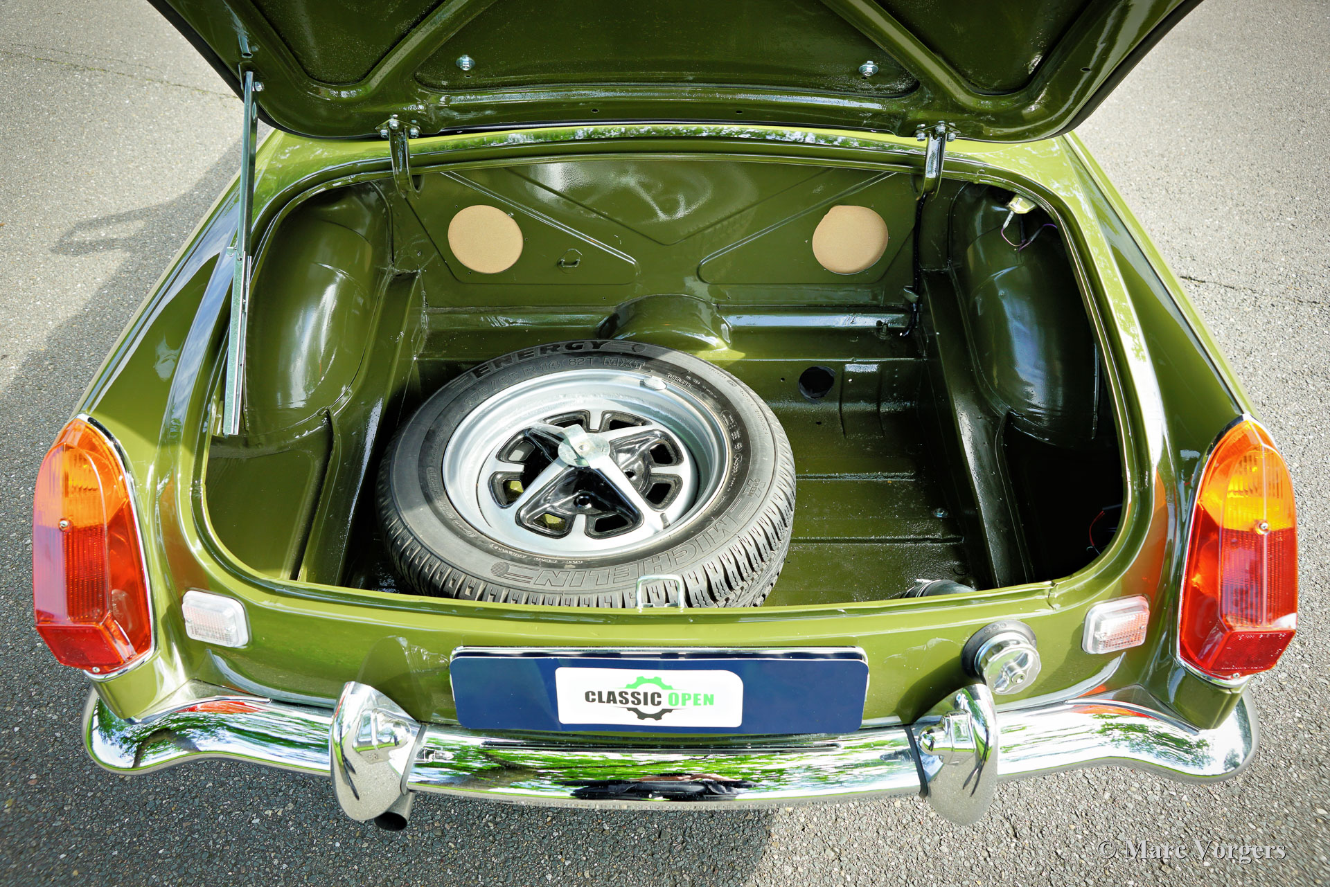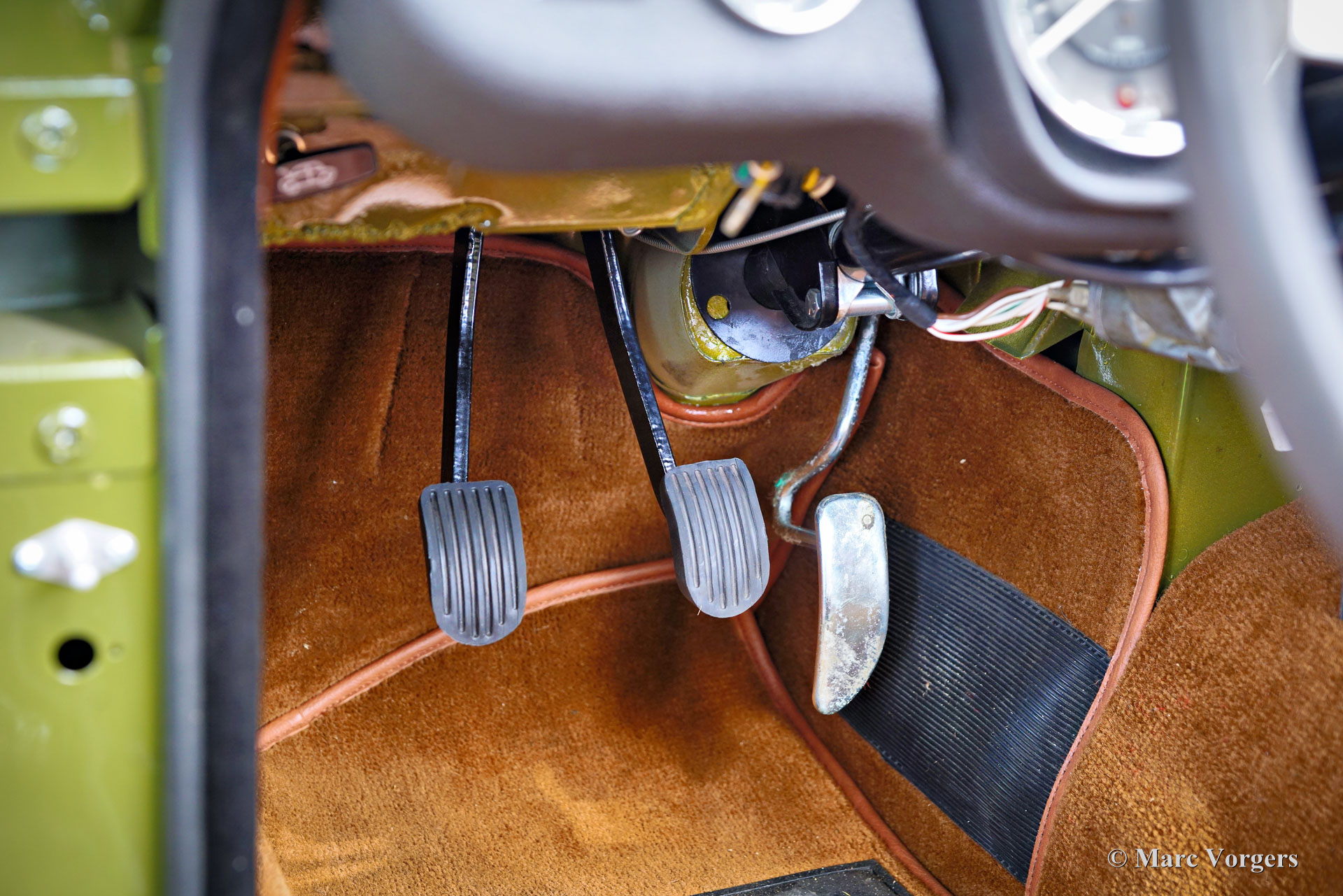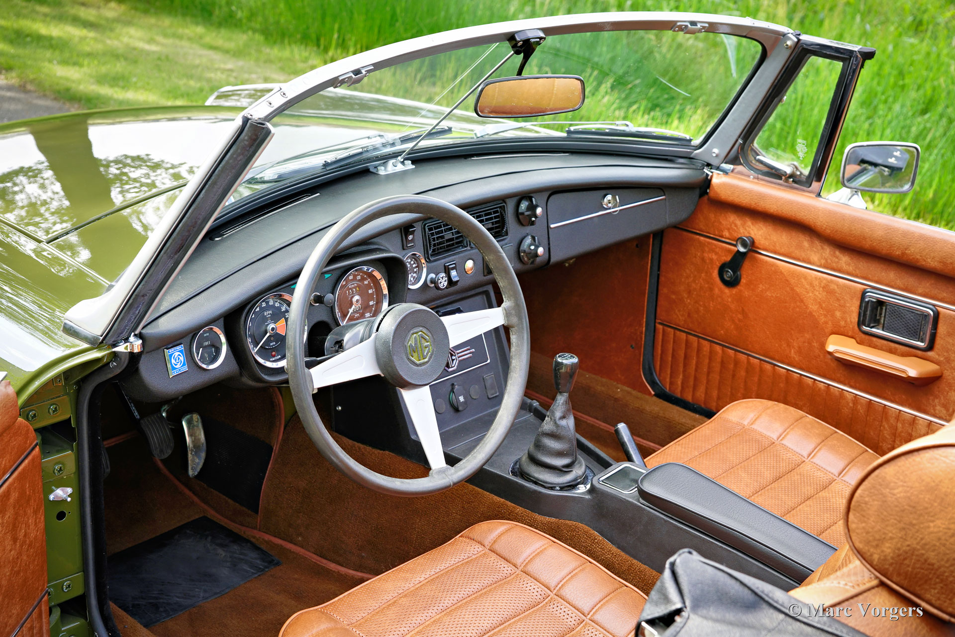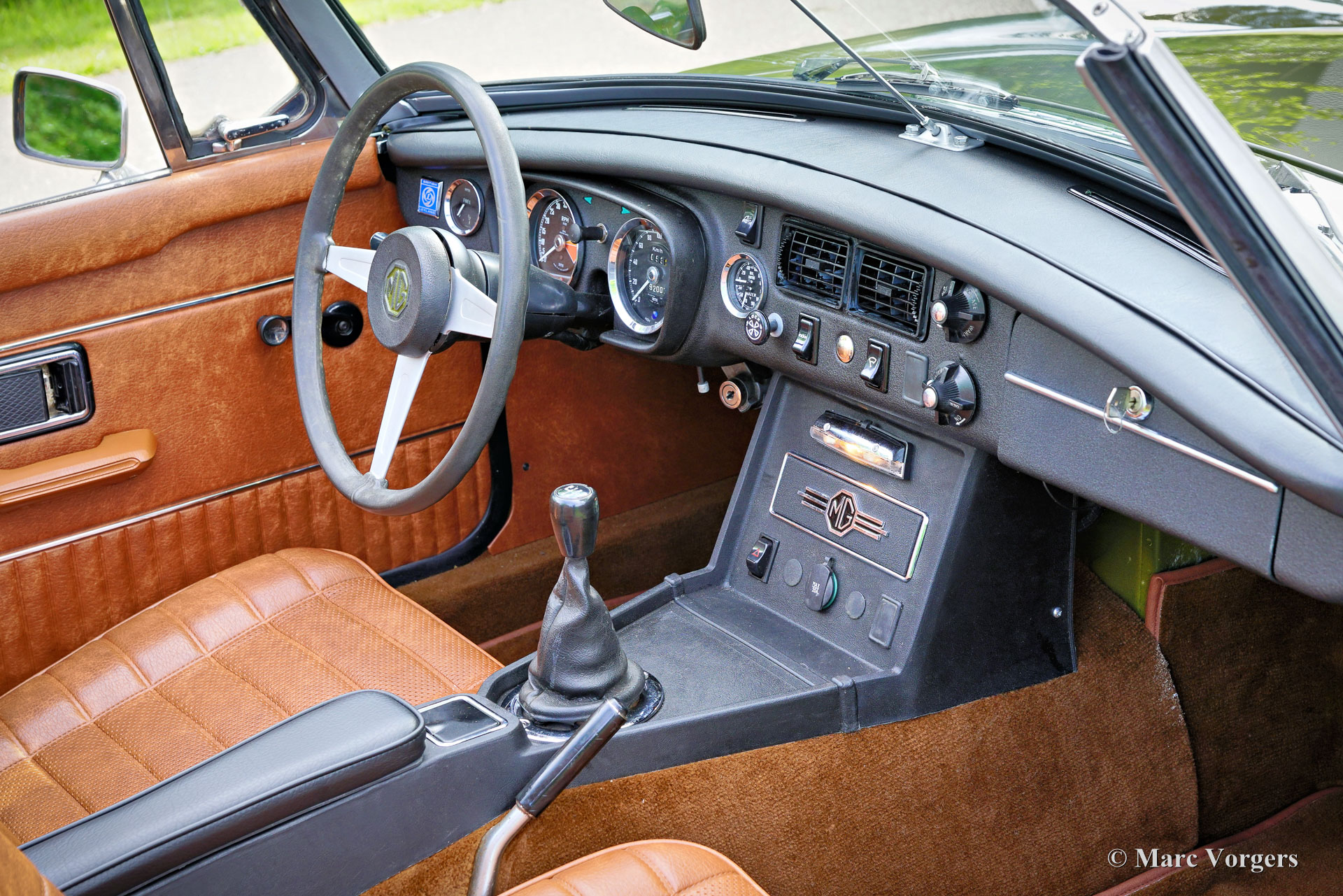 MG MGB Roadster, Jahr 1975 (Baujahr Juli 1974, Erstzulassung 8. Januar 1975). Farbe grün „Tundra Green“ kombiniert mit einer braunen Kunstlederausstattung und passendem Teppich. Dies ist eines der letzten MGB-Autos, die mit Chromstoßstangen und einem Armaturenbrett aus Stahl gebaut wurden. Die letzten MGBs mit diesen Spezifikationen wurden im September 1974 gebaut. Die meisten MGB-Roadster-Autos wurden in den USA neu verkauft, dieses Exemplar hat von Anfang an in den Niederlanden gelebt! Dieser großartig aussehende und herrlich fahrende MGB wurde vor vier Jahren umfassend restauriert. Ein Fotobericht der Restaurierung liegt vor. Das Auto wurde wunderschön in der lebendigen Originalfarbe „Tundragrün“ lackiert und der Innenraum wurde in den richtigen Farben in einen brandneuen Zustand versetzt. Beim Umbau wurde ein modernes 5-Gang-Getriebe eingebaut. Das Auto weist wunderbare Originaldetails auf, wie die „Rostyle“-Räder, die verchromten Felgenverzierungen, das wunderschöne Armaturenbrett, das Lenkrad, die Kipphebelabdeckung, die Luftfiltergehäuse aus Stahl und den originalen europäischen Tacho in Kilometern statt Meilen. Darüber hinaus ist der MGB mit zwei an der Tür montierten Rückspiegeln und einem verchromten Gepäckträger ausgestattet. Der leistungsstarke und zuverlässige 1800 cc. Vierzylindermotor und die beiden S.U. Die Vergaser wurden überholt, der Motor läuft mit bleifreiem Benzin. Dies ist Ihre Chance, einen „besser als neu“ restaurierten MGB-Roadster in einer einzigartigen Originalfarbgebung zu kaufen!