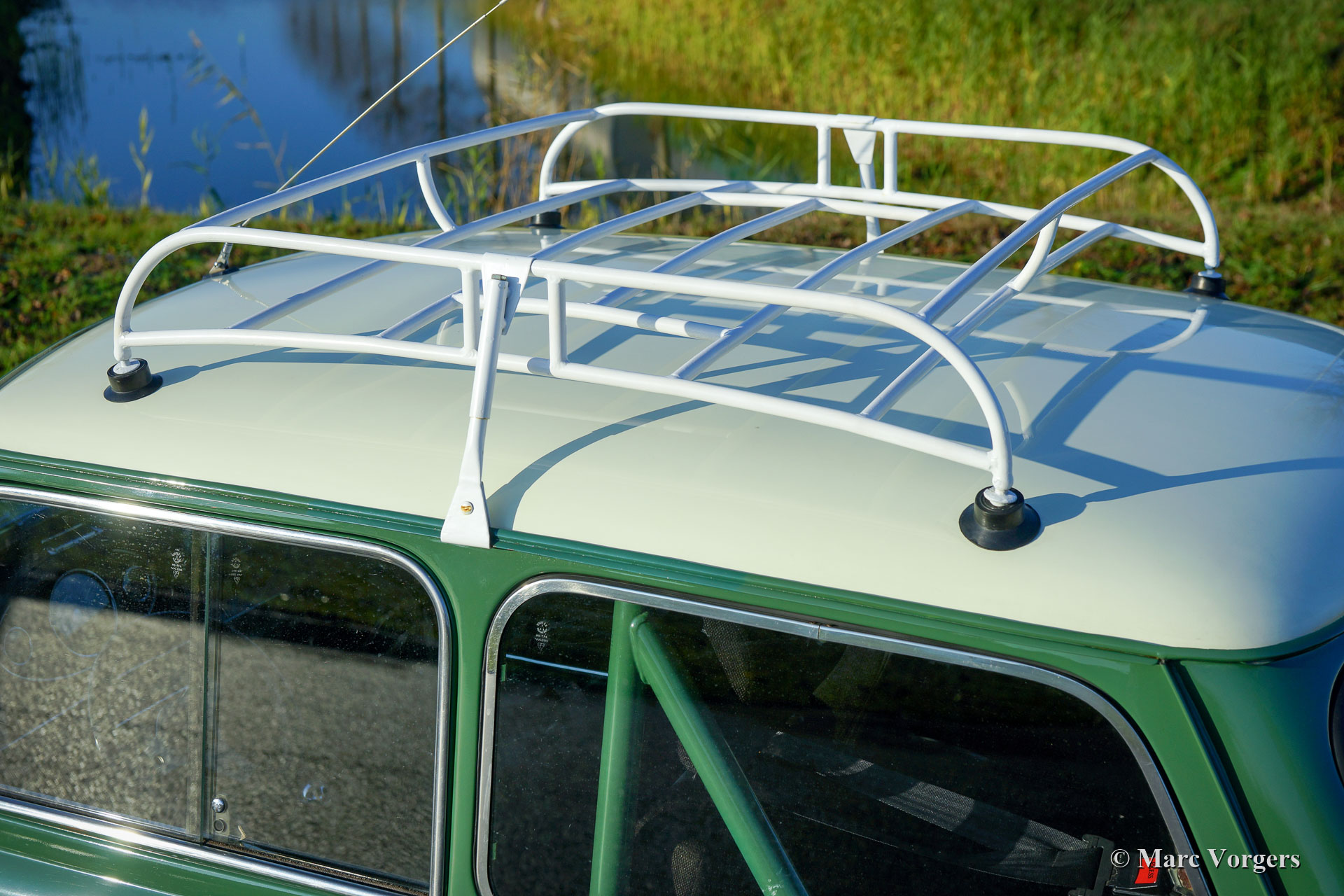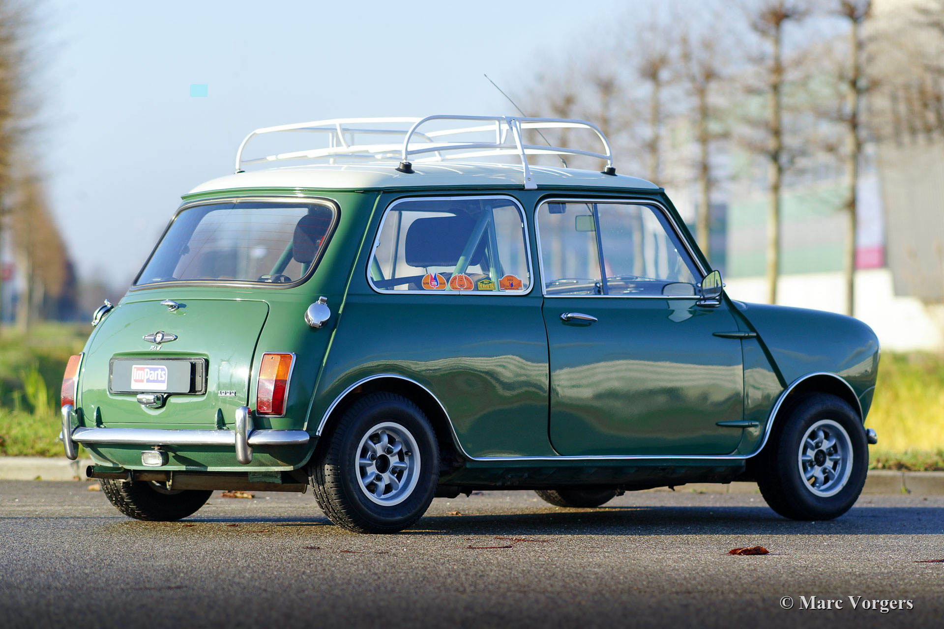 Morris Mini Cooper Mk 2, Jahr 1968. Farbe ‚‘Almond green‘ mit einem crèmeweiss-farbigen Dach. Schwarzes Interieur mit speziellen Rallyesitzen und schwarzem Teppich. Dieser großartige Mini Cooper ist seit zwanzig Jahren in einer Familie. Das Auto wurde im Jahr 2001 umfassend restauriert, ein Foto-Bericht dieser umfangreichen Restaurierung liegt vor. Die Karosserie erhielt eine Grundierung ‘Bad‘, so dass die Grundierung alle Ecken des nackten Metalls innen und außen erreicht hat. Nun, 17 Jahre später, ist keine Spur von Rost zu finden! Dieser Mini Cooper ist in sehr gutem Zustand mit leichten Gebrauchsspuren und das Auto fährt perfekt! Das Auto ist sehr gut dokumentiert. Dokumente des letzten Besitzers sind vorhanden, ebenso Restaurierungsrechnungen und ein BMC Heritage-Zertifikat. Während des Restaurierungs- und Überholungsprozesses wurde ein größerer 1300-cm3-Motor montiert mit einer ‘Fast Road‘ -Nockenwelle, einem größeren S.U. Vergaser HIF 44, ein ‘Free Flow‘ -Auspuffkrümmer, ein Ölkühler und ein Schraub-Ölfilter. Weiter wurden ein Servo-Bremskraftverstärker und Cooper S-Bremse (vorne scheiben und Trommel) hinten montiert. Der ursprüngliche 998-cm3-Motor ist in diesem Verkauf enthalten.