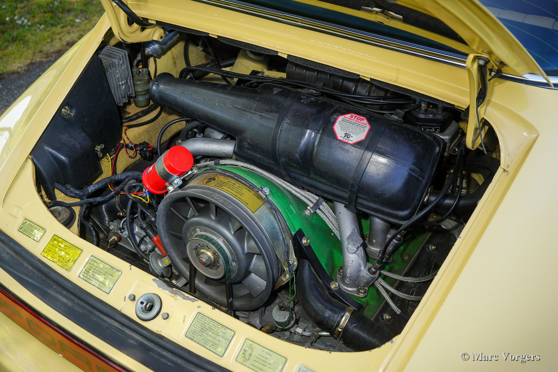 The Porsche 911 was designed with a steel unitary bodywork construction in which the engine was located behind the rear axle. The 911 engine is a air-cooled six cylinder "boxer" engine. The suspension of the Porsche 911 was independent from the start as was a five speed gearbox with floor shift.