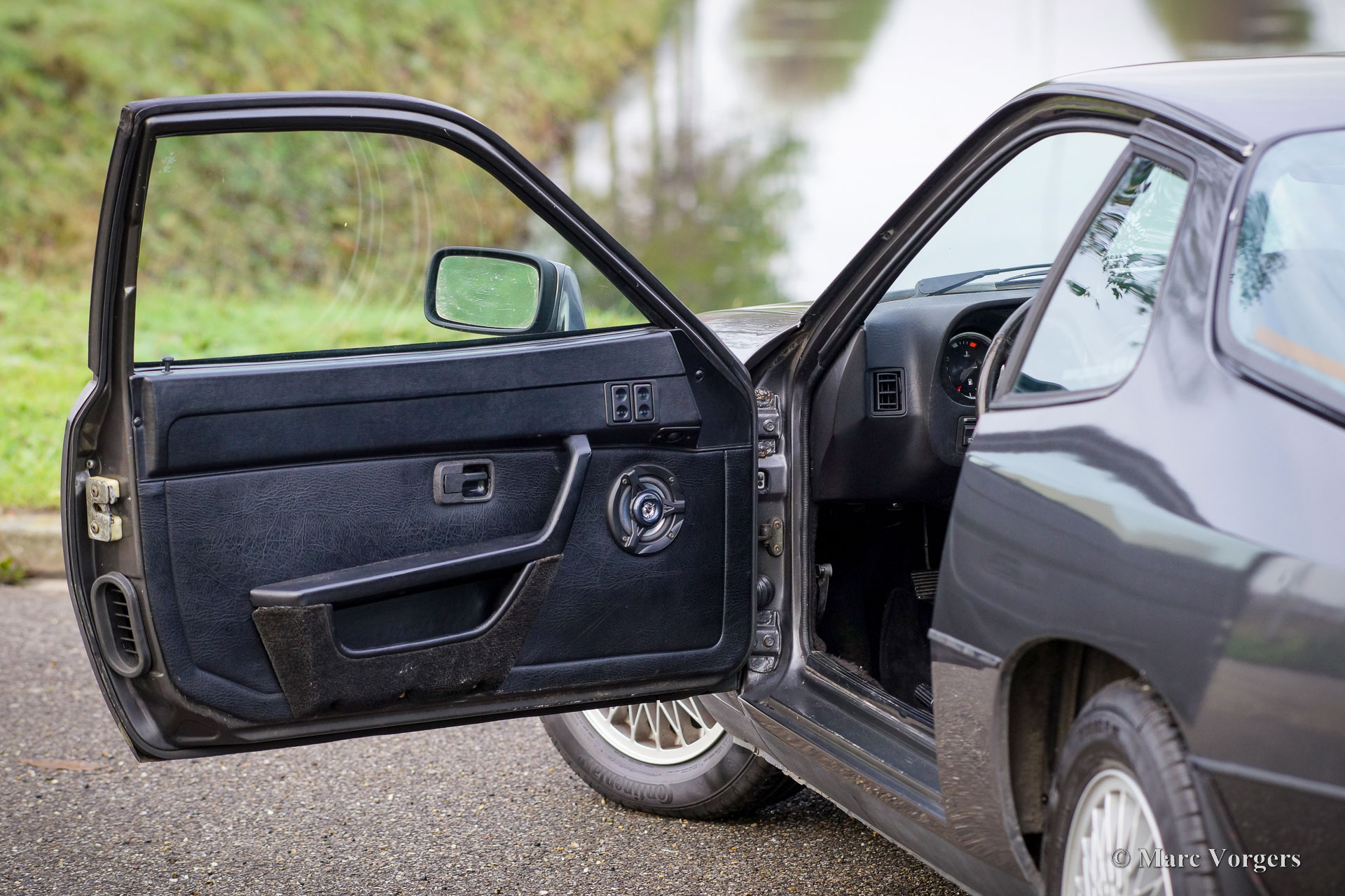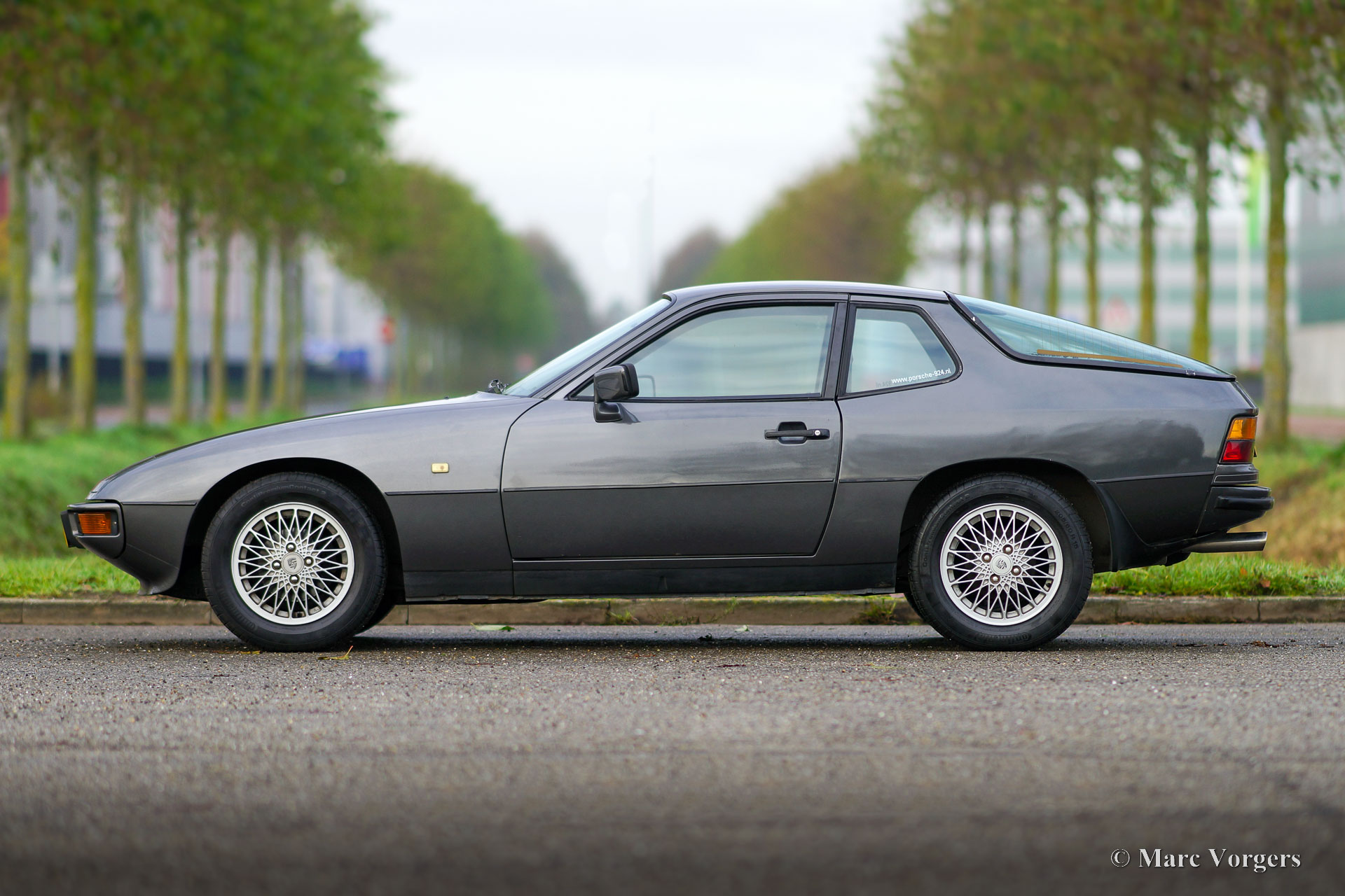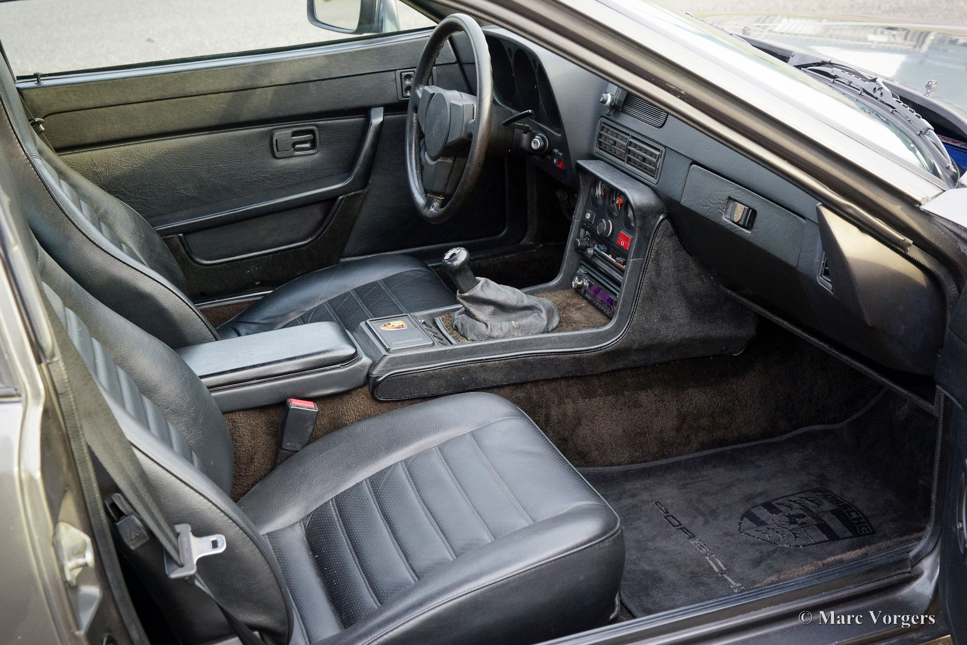 Porsche 924, Jahr 1980. Farbe Anthrazitgrau metallic kombiniert mit schwarzem Leder- und Kunstlederinterieur, schwarzem Teppich und schwarzem Dachhimmel. Der Porsche 924 ist ein renommiertes Porsche-Modell, das in Zusammenarbeit mit der Volkswagen wurde. Ein sehr erfolgreiches Modell, von dem 118.000 Exemplare produziert wurden. Der Porsche 924 verfügt über einen längs eingebauten wassergekühlten 2-Liter-Vierzylindermotor, der satte 125 PS leistet. Die Straßenlage ist aufgrund der hervorragenden Gewichtsverteilung, die sich aus der Anordnung des Getriebes (5-Gang) zwischen den Hinterrädern ergibt, sehr gut. Dieser Porsche 924 ist in einem guten Fahrerzustand und das Auto fährt sehr gut. Die originale Innenausstattung ist in einem guten Zustand mit normalen Gebrauchsspuren. Unter der Motorhaube sieht alles gut und aufgeräumt aus. Dieser 924 zeigt alle Originaldetails und ist mit sehr schönen 924 Turbo-Leichtmetallrädern ausgestattet.