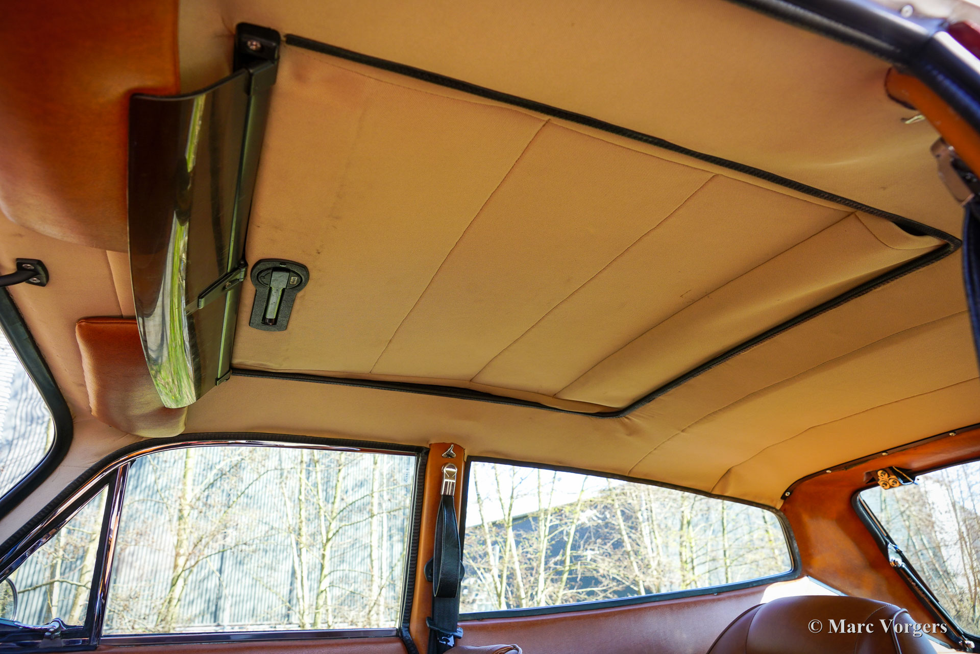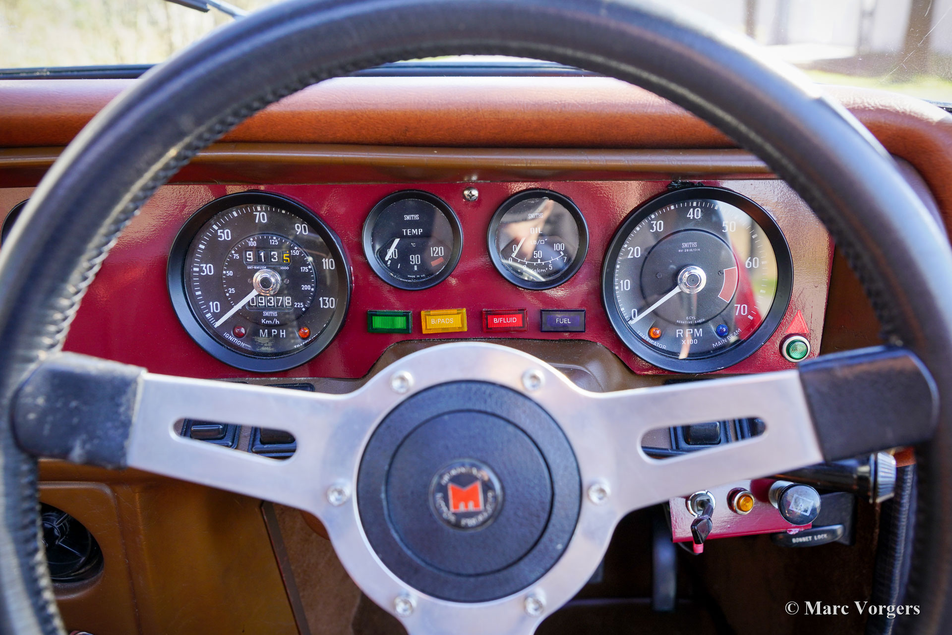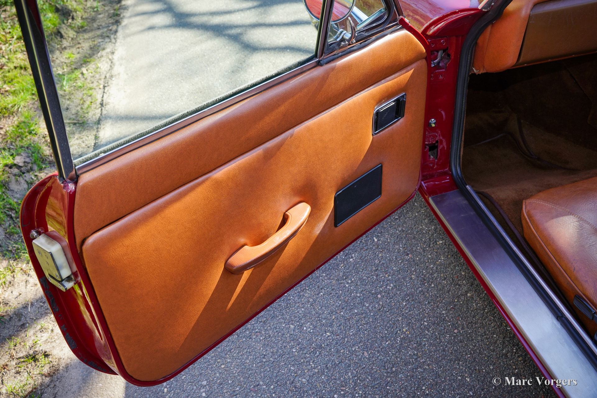 Reliant Scimitar GTE SE5A, Jahr 1973. Dieses wunderschöne Exemplar ist in dunkelrot lackiert und verfügt über eine cognacbraune Kunstlederausstattung. Der Wagen wurde von einem Liebhaber aus Großbritannien importiert und anschließend zwischen 2022 und 2024 weitgehend restauriert. Die Restaurierung ist detailliert dokumentiert. Die GFK-Karosserie (glasfaserverstärkter Kunststoff) wurde neu lackiert, und ein Großteil des Innenraums, einschließlich des Faltdachs, wurde erneuert. Der leistungsstarke Ford Essex 3-Liter-V6-Motor, der sich bereits in gutem Zustand befand, wurde mit einem neuen Vergaser ausgestattet und mit einer elektronischen Zündung nachgerüstet. Das Vierganggetriebe verfügt über den begehrten Overdrive. Im Zuge der Restaurierung erhielt der Wagen neue Edelstahlstoßstangen, eine Edelstahl-Auspuffanlage, polierten 14-Zoll-Wolfrace-Leichtmetallfelgen mit Continental-Reifen der Dimension 185/70 R14 H sowie ein Caliber-Retro-Radio. Der Reliant Scimitar GTE war bei seiner Markteinführung 1968 ein bahnbrechendes Design. Als sportlicher zweitüriger Kombi begründete er das Segment der modernen Shooting Brakes. Das Modell wurde für sein attraktives Design, seinen Charakter, seine Praktikabilität und seine innovative Konstruktion gelobt, die ein Stahlkastenrahmenchassis mit einer darauf verschraubten GFK-Karosserie kombinierte. Die mechanischen Komponenten (Motor, Getriebe, Hinterachse usw.) stammten aus den Ford-Baureihen Zephyr/Zodiac und Capri. Dies ist eine hervorragende Gelegenheit, einen legendären Reliant Scimitar GTE SE5A in restauriertem und sehr gutem Zustand zu erwerben – zu einem Preis weit unter den Restaurierungskosten!