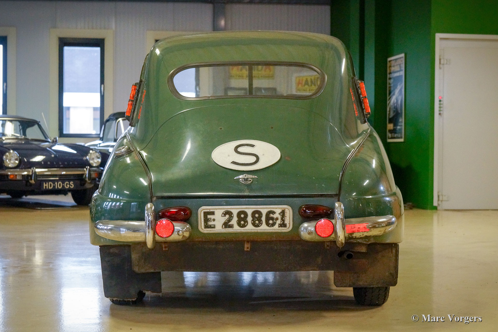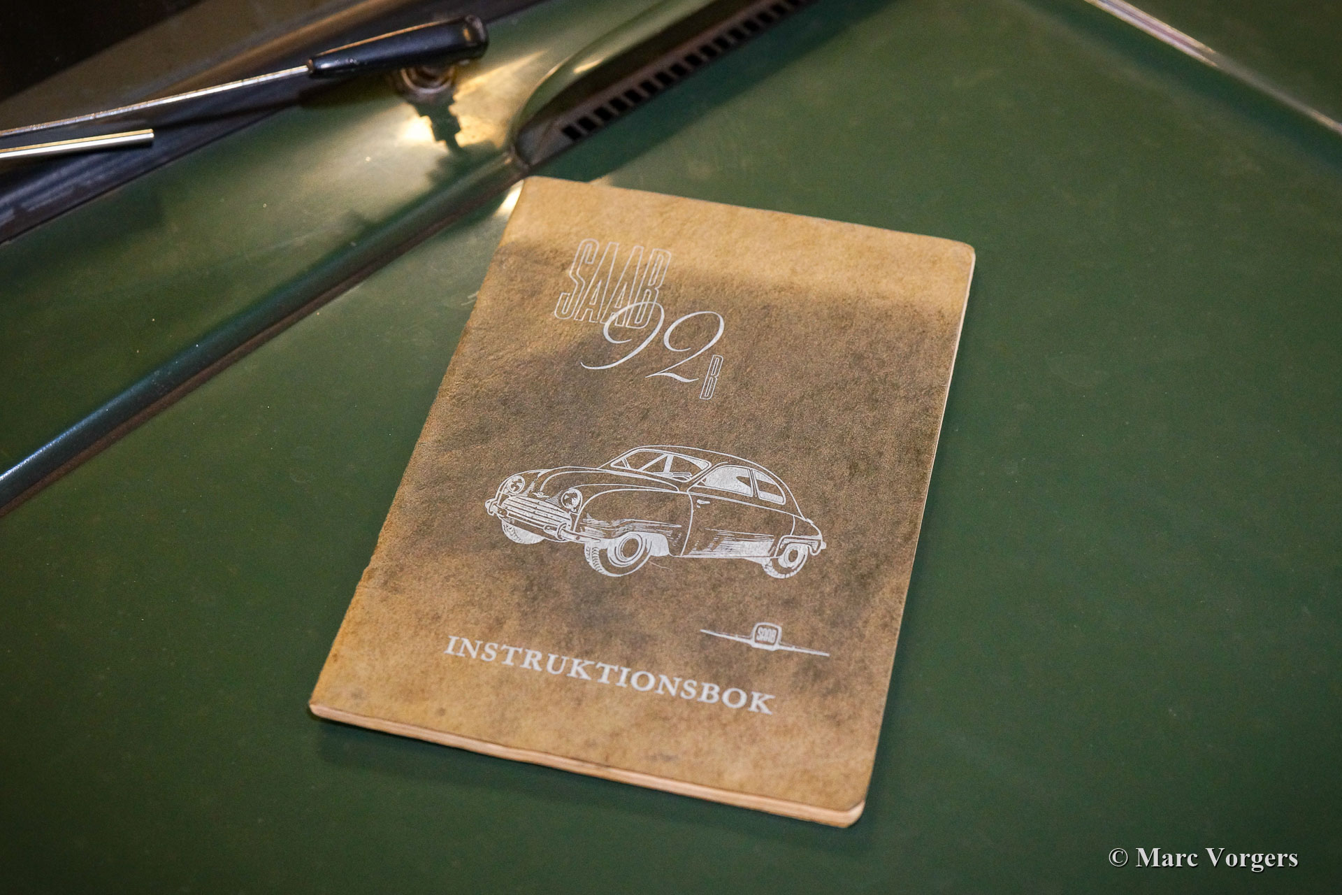 Saab 92B, Jahr 1953. Farbe grün kombiniert mit einem beigen Interieur und Gummiteppich. Dieser sehr seltene Saab 92B ist ein völlig originales und 66 Jahr alter ‘überlebende‘ (Survivor)! Dieses Saab wurde nie restauriert und das Auto hat in 66 Jahren nur 60.000 Kilometer zurückgelegt. Das Auto ist gut dokumentiert und die geringe Laufleistung kann nachgewiesen werden. Das Auto wurde in Schweden neu verkauft und vor einigen Jahren von einem Saab-Sammler in die Niederlande importiert. Der Saab 92 ist eines der seltensten Saab-Modelle. Bei diesem Exemplar handelt es sich um eine hoch sammelbare „Zeitmaschine“ im Originalzustand mit viel Spuren von gebrauch und des Alters. Originale Lackierung, originaler Innenraum und alle originalen Details sind vorhanden… Der Zweizylinder-Zweitaktmotor mit 764 cm³ (28 PS) läuft immer noch wunderschön. Dieses Saab ist ein Muss für jeden Saab-Sammler und ein würdiger Konkurrent in jeder Concours D'élégance Original-‘Survivor‘-Klasse!