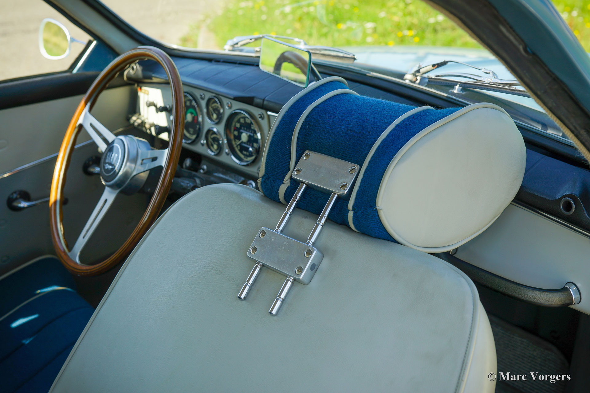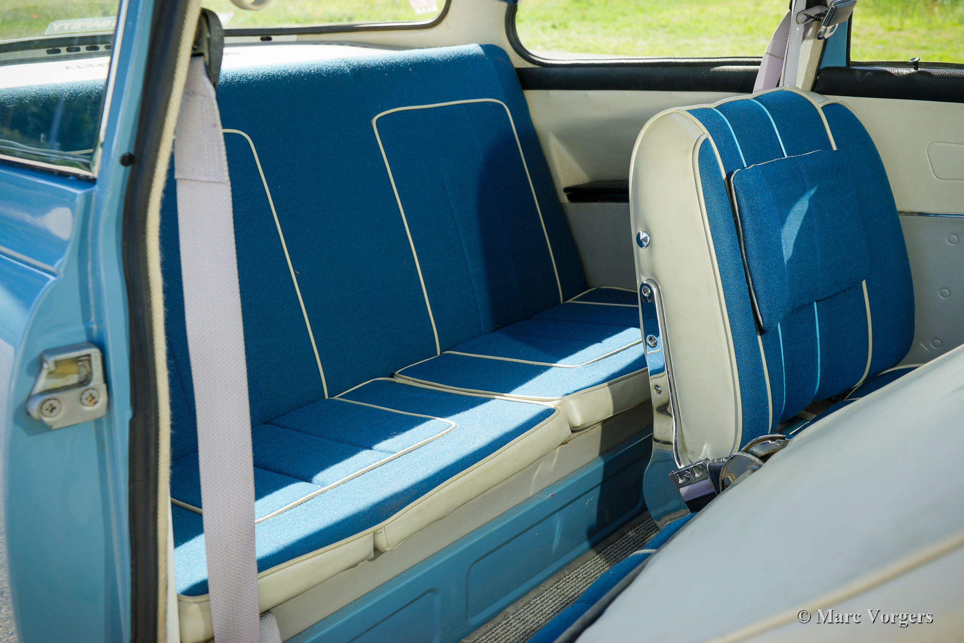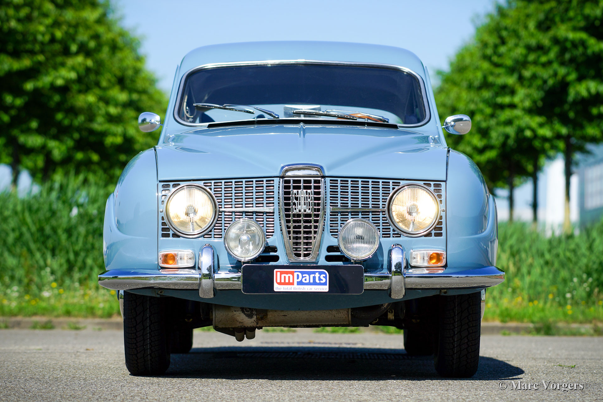 Saab 96 Monte Carlo 850, Jahr 1967. Farbe hellblau kombiniert mit einem blau / grauen (Stoff / Kunstleder) Interieur. Der Saab 96 Monte Carlo 850 wurde zum Gedenken an den Siegen des Rallyefahrers Erik Carlsson bei den Rallyes Monte Carlo 1962 und 1963 gebaut. Das Monte-Carlo-Modell bietet spezielle Optionen und Details: Der 850-cm³-Motor ist mit drei Vergasern und einem automatischen Zweitakt-Ölschmiersystem ausgestattet, und die Räder sind mit fünf statt vier Schrauben an den Naben montiert. Optisch zeichnet sich der Monte Carlo durch die Monte-Carlo-Embleme, Spezialsitze und Rückbank, das sportliche Armaturenbrett mit Holzlenkrad, spezielle Türschilder und doppelte Chromleisten an den Seiten aus. Dieses wunderbare Beispiel wurde in der Vergangenheit umfassend restauriert. Die Karosserie wurde verzinkt. Ein Fotobericht und Rechnungen der Restaurierung liegen vor. Dieser Saab Monte Carlo 850 befindet sich in einem ausgezeichneten Zustand mit leichten Gebrauchsspuren und das Auto fährt perfekt. Der Zweitaktmotor leistet 55 PS und das Vierganggetriebe mit Lenksäulen-Schalthebel funktioniert wunderbar. Der 850 ist mit Scheibenbremsen an den Vorderrädern und einem Wechselstromdynamo ausgestattet. Das Auto wird komplett mit den Original-Bedienungsanleitungen geliefert, die alle speziellen Originaldetails enthalten. Dies ist ein sehr begehrenswertes Exemplar für den Saab-Enthusiasten und Sammler.