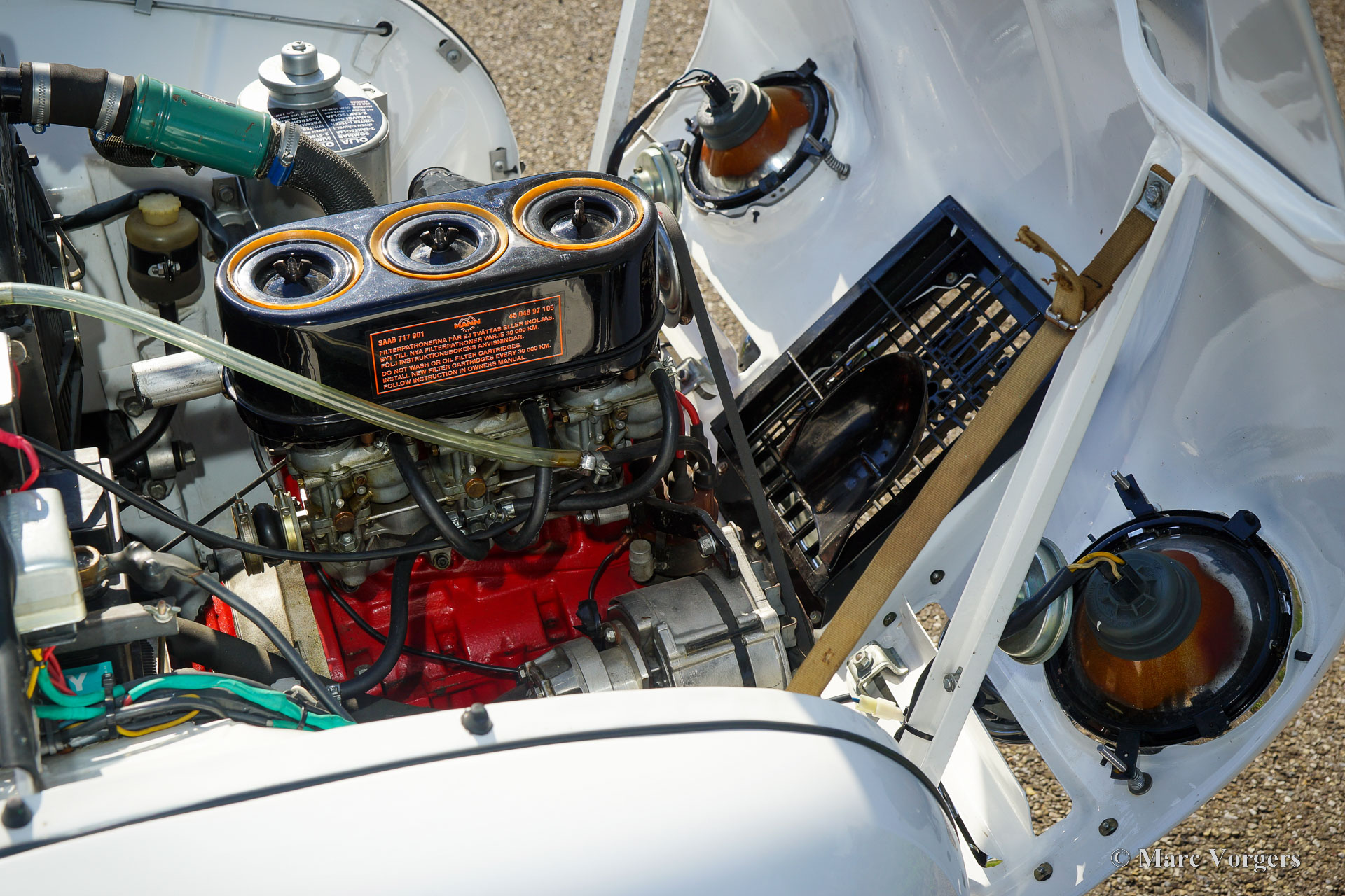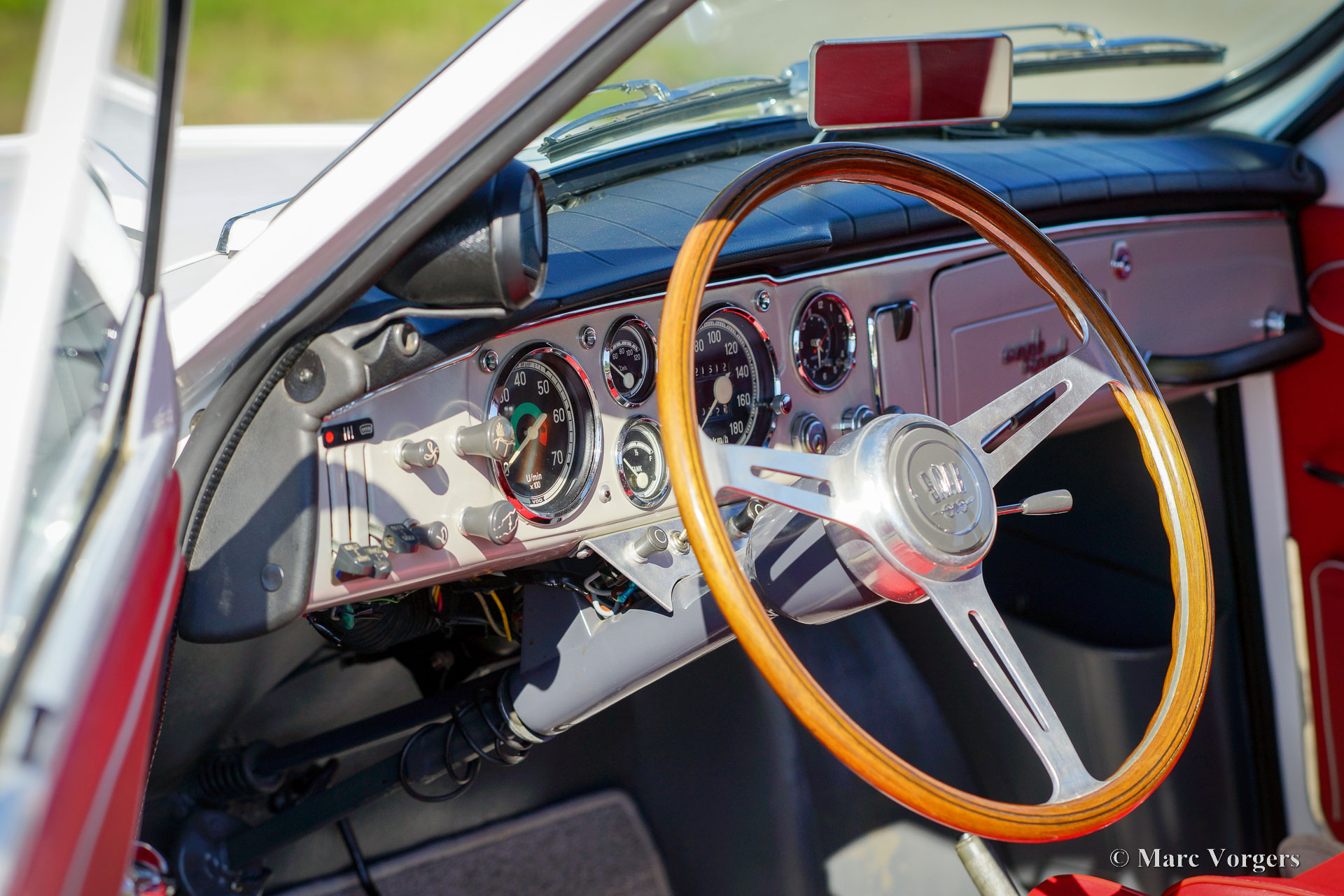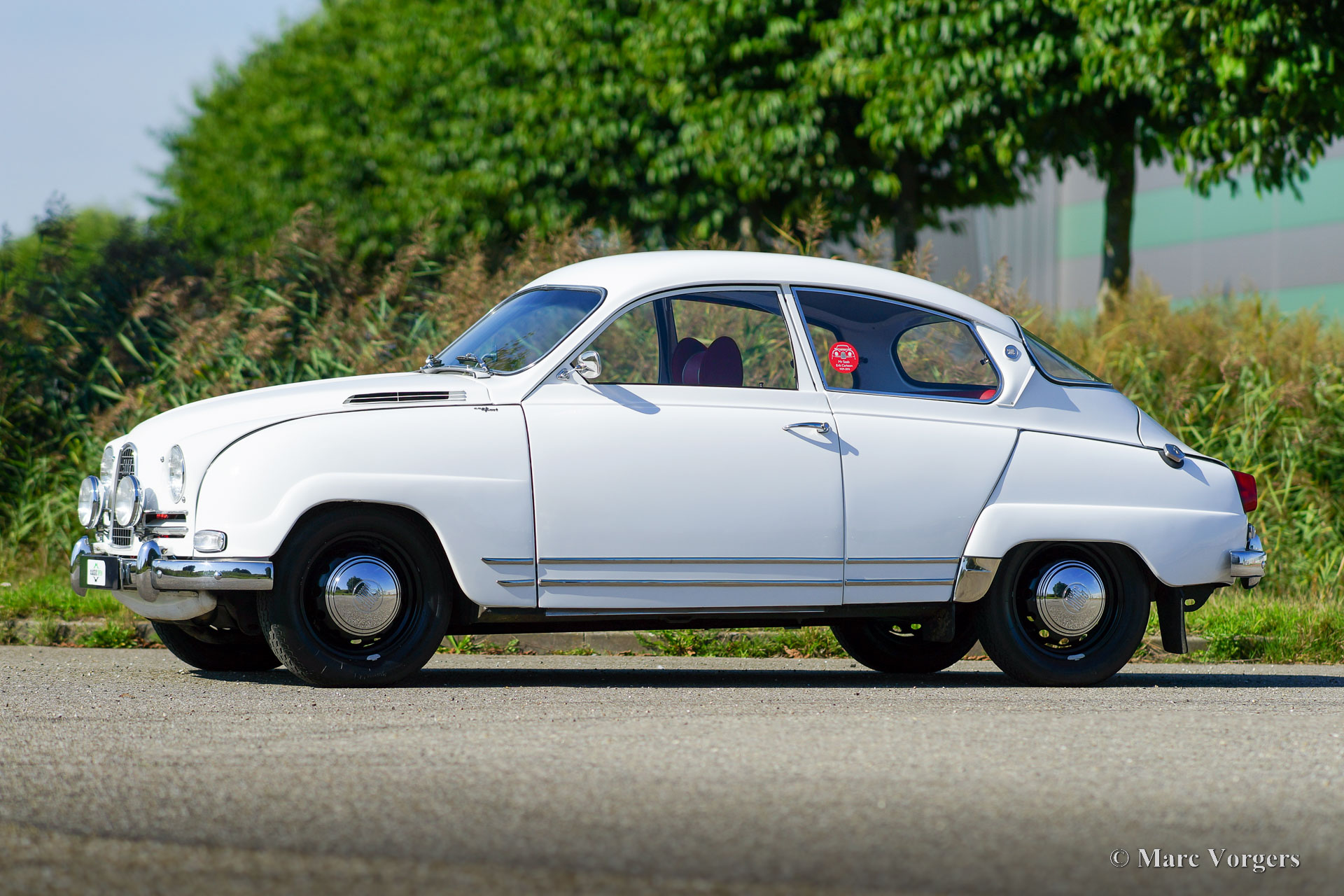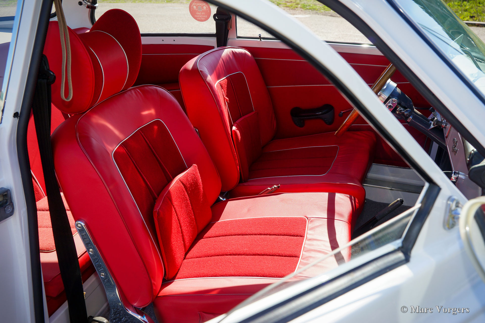 Saab 96 Sport, Jahr 1963. Farbe Weiß in Kombination mit einem rot-Leder-/Stoff-Innenraumgetrimmt mit silbernen Paspeln und grauem Teppich. Dieser prächtige Saab 850 zeigt alle Details des 850 Sportmodells wie der Special Chromleisten an den Seiten, den speziellen Kühlöffnungen an auf der Motorhaube und den Special 850 Sport Badges. Der Saab 96 850 „Zwei-Takt“ war eine sehr erfolgreiche Rallyewaffe der 1960er Jahre. In den Händen des Rallye -Fahrers Erik Carlsson erzielte Saab viele Erfolge wie den Sieg in der Monte Carlo Rally von 1963 und in der San Remo -Rallye von 1964. 2004 hat Erik Carlsson sein Autogramm auf das Sonnen Visor dieses Saabs gesetzt! Das leichte und agile Auto wird von einem leistungsstarken Drei-Zylinder-Zwei-Takt-Motor mit einer Kapazität von 850 ccm angetrieben. Dank drei Vergaser beträgt die Leistung eine stolze 58 PS. Diese fabelhafte Saab 96 850 Sport wurde in der Vergangenheit ausführlich und wunderschön restauriert, das Auto ist in einem hervorragenden Zustand und das Auto fährt perfekt. Das Armaturenbrett verfügt über eine Reihe von Messgeräten und das wunderbare Originallenkrad mit Holzkranz. Am Front finden Sie einen zusätzlichen Satz Lampen. Diese seltenen Saab -Modelle werden nur dann und wann zum Verkauf angeboten. Dies ist Ihre Chance, einen ganz besonderen Saab 96 850 Sport zu kaufen!