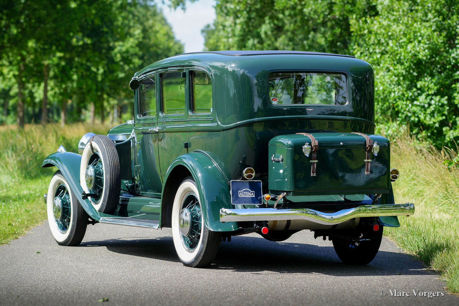 Studebaker President Eight Modell 80, Jahr 1931. Fahrgestellnummer: 703119X. Farbe grün kombiniert mit einem grauen Stoff-Interieur. Dieser beeindruckende Studebaker Eight aus dem Jahre 1931 wurde in Deutschland im Jahr 2000 aufwendig und schön restauriert. Das Auto ist in einem hervorragenden Zustand und das Auto fährt herrlich! Der enorme 5.1-Liter ‚Straight-8‘ Motor liefert eine gesunde 100 PS und es läuft sehr glatt. Gepaart mit einem prächtigen Dreigang-Handschaltgetriebe mit "Freilauf" ist das Fahrerlebnis für den Fahrer und seine Passagiere hochkarätig. Dieses Studebaker Modell 80 zeigt alle originalen Details, schönes Chrom, sehr gute Lackierung mit nur sehr geringen Spuren nach der Anwendung vor 18 Jahren. Dieser schöne Studebaker wird komplett mit der originalen Verkaufsbroschüre und dem Benutzerhandbuch geliefert, außerdem ist ein altes deutsches ‘Wert Gutachten' vorhanden. Dies ist ein großartiges Automobil aus den goldenen 1930er Jahren, ein Sammlerstück und ein großartiger Fahrer, um an historischen Veranstaltungen teilzunehmen!