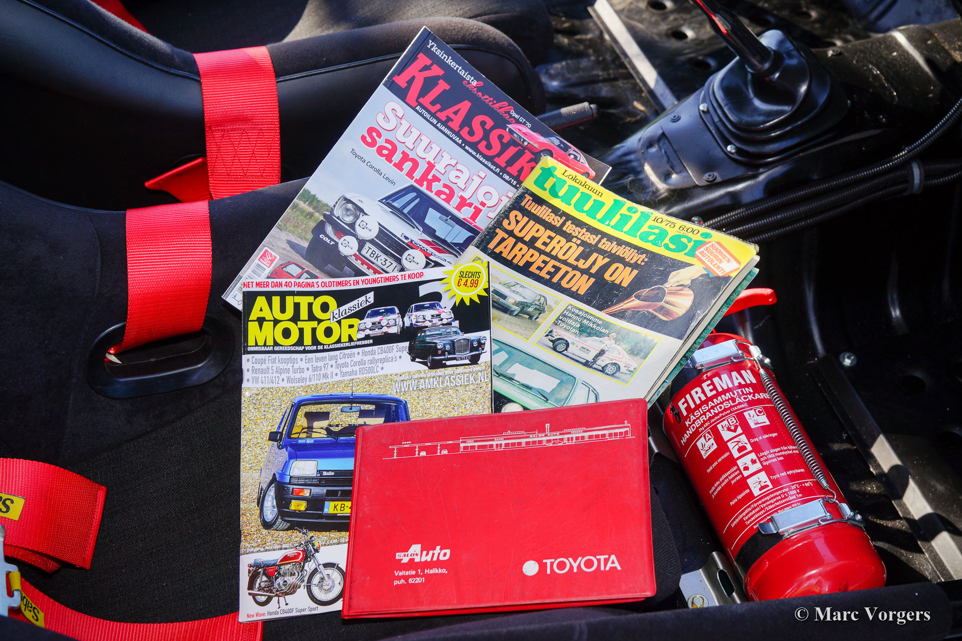 Toyota Corolla Coupé Rallye Auto, Jahr 1973. Farbe Weiß kombiniert mit einem schwarzen Rallye-Interieur. Dieses fantastische Toyota Corolla Coupé ist eine Nachbildung des originalen Rallye-Autos von Hannu Mikkola - Atso Aho Team Toyota Europe, mit dem sie im Jahr 1975 die „1000 Lakes Rallye“ in Finnland gewonnen haben! Das Auto wurde in der Vergangenheit von einem finnischen Spezialisten als Hommage an Hannu Mikkola (der am 26. Februar 2021 im Alter von 78 Jahren leider verstorben ist) restauriert und gebaut. Das Auto war ein Jahr lang im finnischen Rallyemuseum ausgestellt und Sie finden Hannu Mikkolas Unterschrift auf dem linken Frontflügel. Das Auto ist in den Niederlanden zugelassen und es kommt mit Geschichte und drei Autozeitschriften. Das Magazin von 1975 handelt von dem originalen Mikkola-Auto, und die beiden anderen Auto-Magazine, ein finnisches und ein niederländisches, enthalten Artikel über die vorgestellte Nachbildung. Ebenfalls vorhanden ist die äußerst seltene Original-Bedienungsanleitung. Dieses beeindruckende Toyota Corolla Rallye-Auto ist eine originalgetreue Nachbildung des originalen Rallye-Autos. Das Äußere zeigt alle korrekten Details und Aufkleber, die perfekt nachgebildet wurden. Das Auto ist in einem ausgezeichneten Zustand und es fährt perfekt. Das Rallye-Auto war ausgestattet mit einem 195 PS starken Toyota 151E-16 Twin Cam Levin-Motor. Dieses Auto wird von einem vergleichbaren 2T-G Toyota Twin Cam-Motor aus derselben Zeit angetrieben, der mit zwei Dell'Orto-Doppelvergasern ausgestattet ist. Dieses großartige Toyota Corolla Coupé ist ein sehr interessantes Angebot für den Toyota-Sammler oder die Person, die mit einem unglaublich besonderen und selten gesehenen Auto an historischen Rallye-Events teilnehmen möchte!