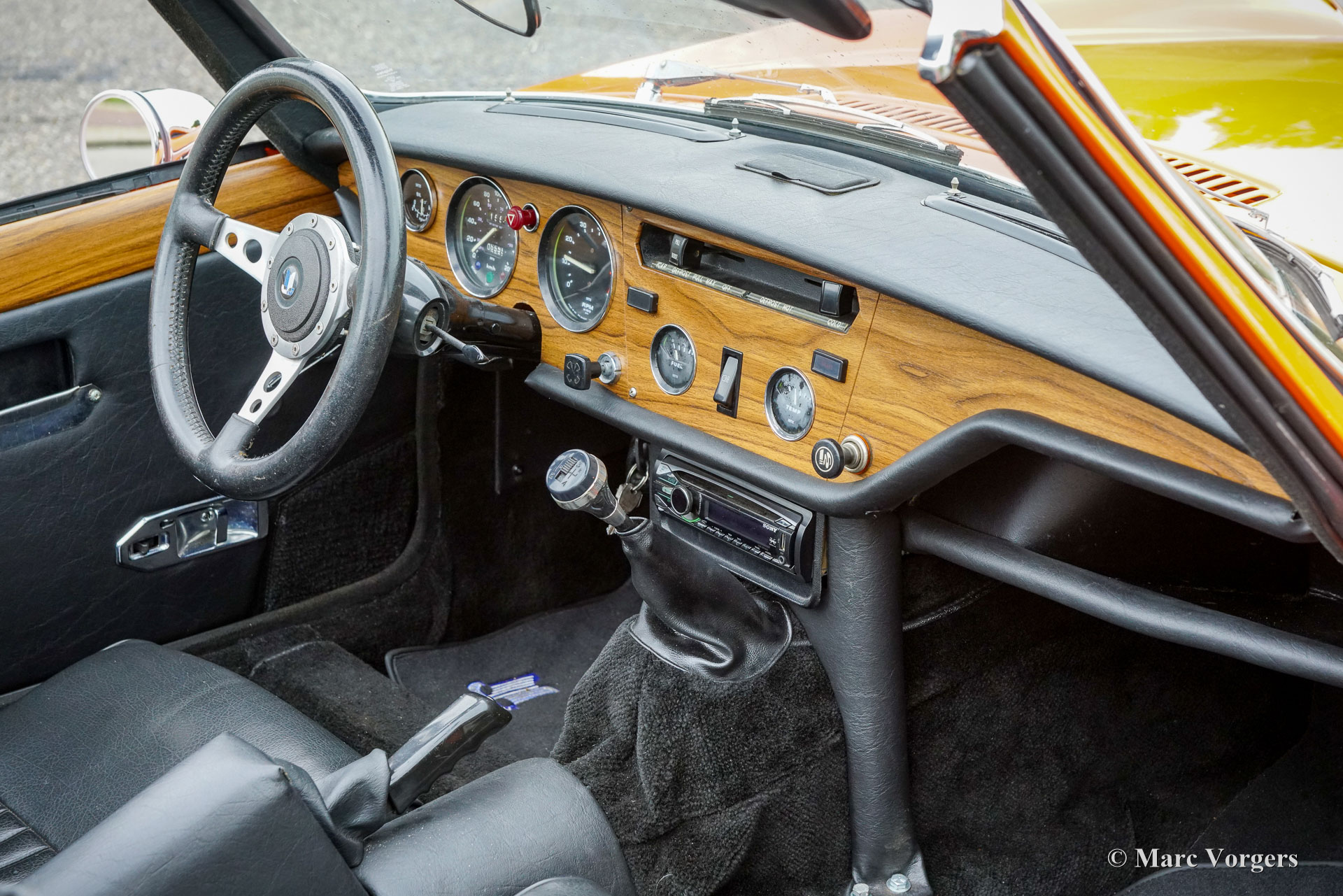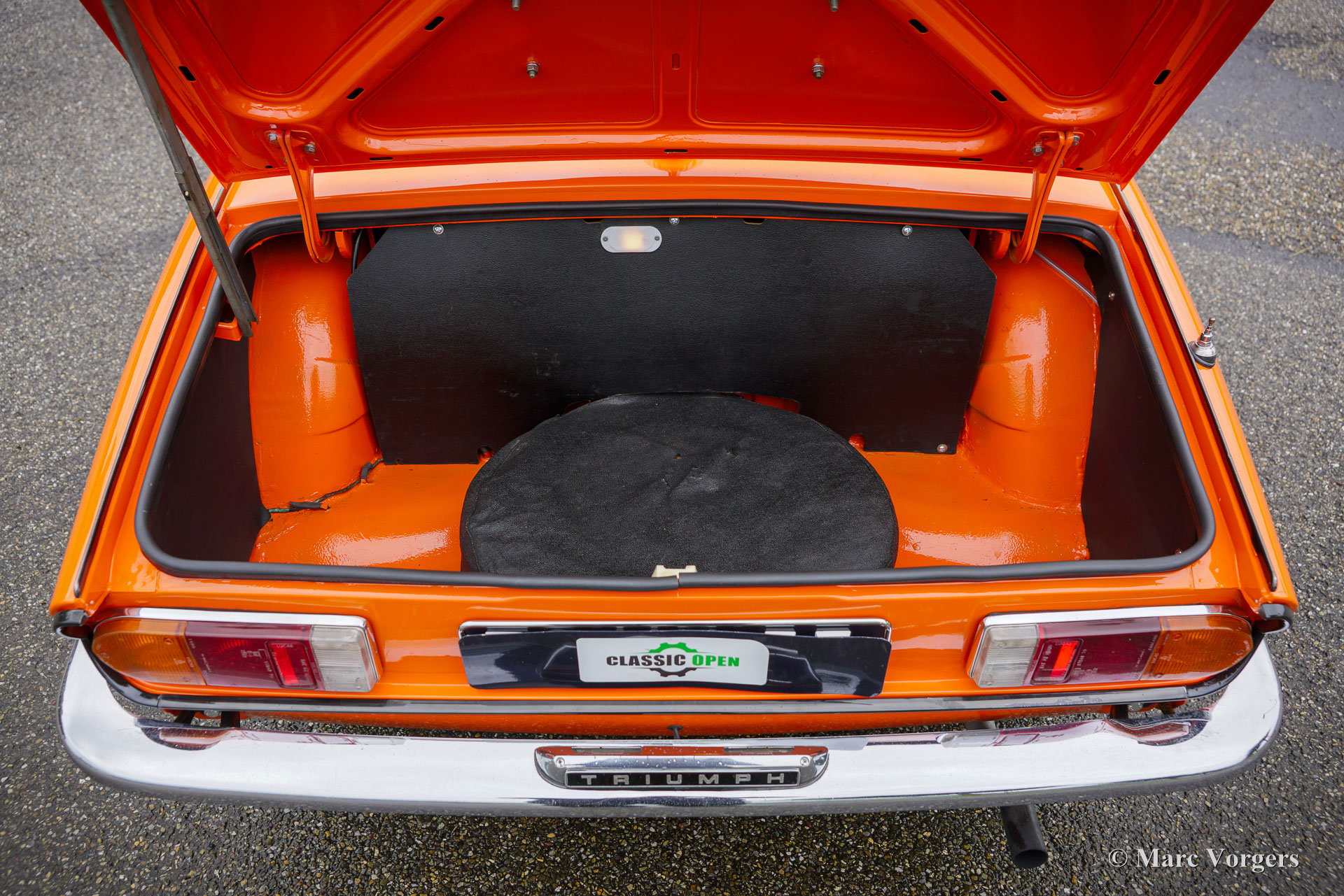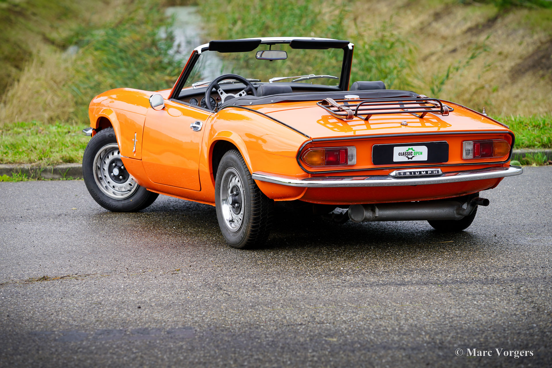 Triumph Spitfire 1500 TC, Jahr 1978. Farbe Orange kombiniert mit einer schwarzen Lederausstattung und schwarzem Teppich. Verdeck- und Verdeck Abdeckung aus schwarzem Vinyl. Diese fantastische Triumph Spitfire wurde vor Kurzem im Originalzustand restauriert. Es wurden möglichst viele Originalteile aufgearbeitet und wieder eingebaut. Die Karosserie erhielt innen und außen eine leuchtend orange Lackierung. Dieser Spitfire 1500 TC weist alle wunderbaren Originaldetails auf und das Auto ist in einem ausgezeichneten Zustand! Die Triumph Spitfire ist ein Meisterwerk des berühmten italienischen Designers Michelotti. Der Triumph Spitfire verfügt über den gleichen wunderbaren Motorhauben Stil wie der Jaguar E-Type, der nach vorne hochklappt und den kompletten Motorraum und die Vorderradaufhängung freigibt. Der Triumph Spitfire ist ein wunderbarer kompakter Sportwagen für den britischen Autoliebhaber, der ein sportliches Fahrverhalten und ein großartiges Fahrerlebnis mit offenem Verdeck bietet. Dieses wunderbare Auto verfügt über den zuverlässigen 1500-cm³-Vierzylindermotor, gepaart mit einem Vierganggetriebe mit Overdrive. Das Auto ist mit einem MotoLita-Sportlenkrad mit Lederkranz und einem schwarzen Gepäckträger ausgestattet. Dieser wundervolle Spitfire im leuchtenden Orange der 1970er Jahre ist bereit, in vollen Zügen genossen zu werden!
