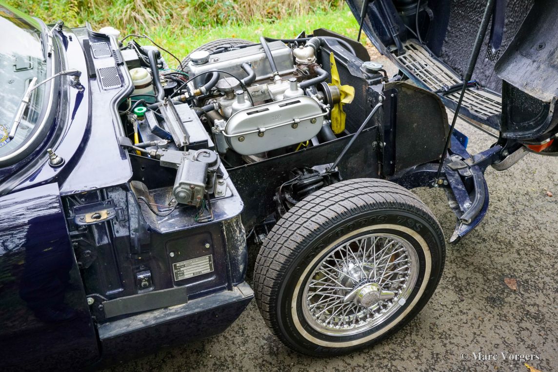 The Triumph Spitfire was equipped with an uprated four cylinder Triumph Herald engine. The engine was covered by a large bonnet enveloping the entire front of the car just like we see with the Jaguar E-type. The Spitfire was designed by the Italian designer Michelotti who had drawn the TR 4 and Triumph Herald too.