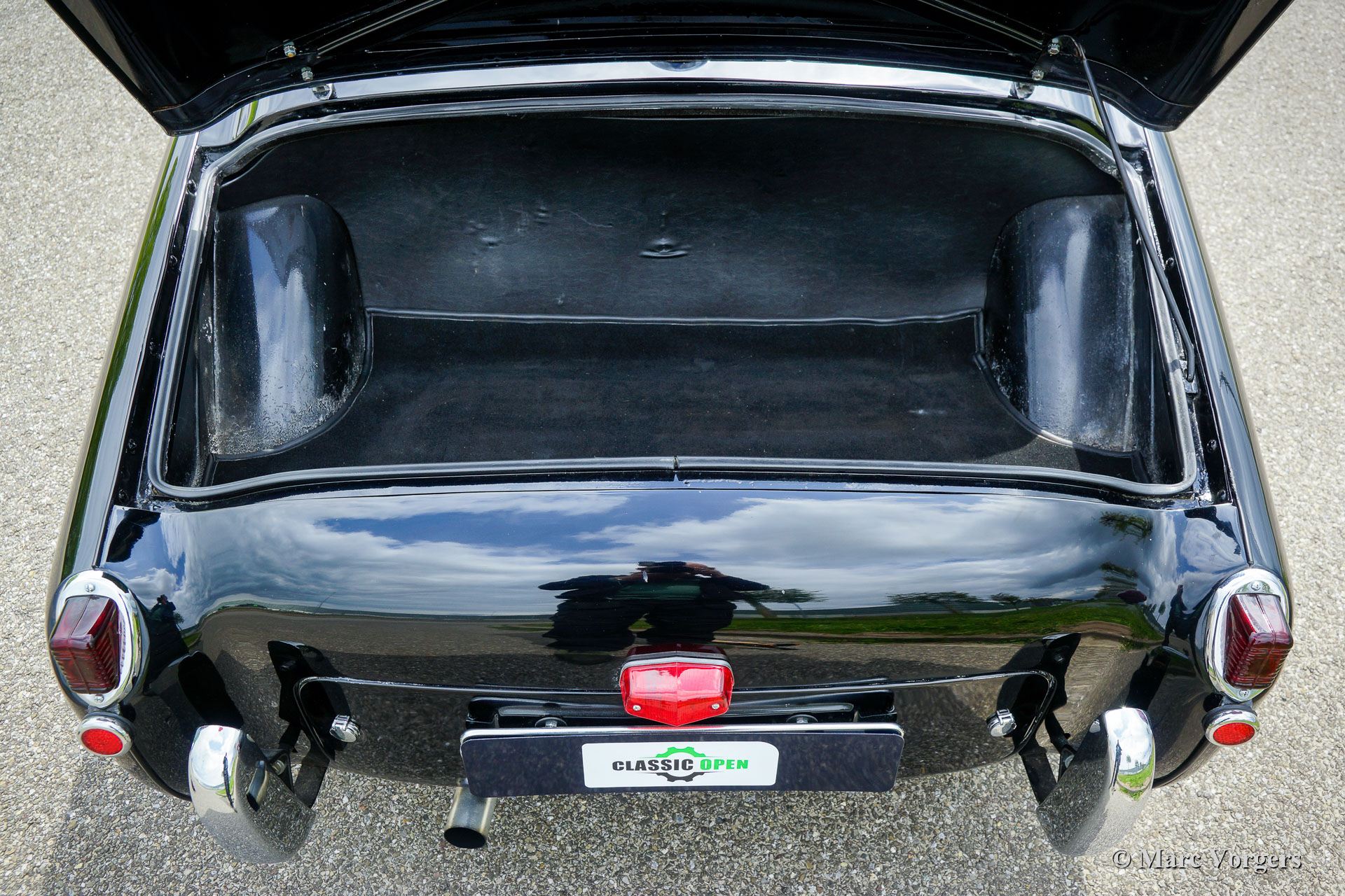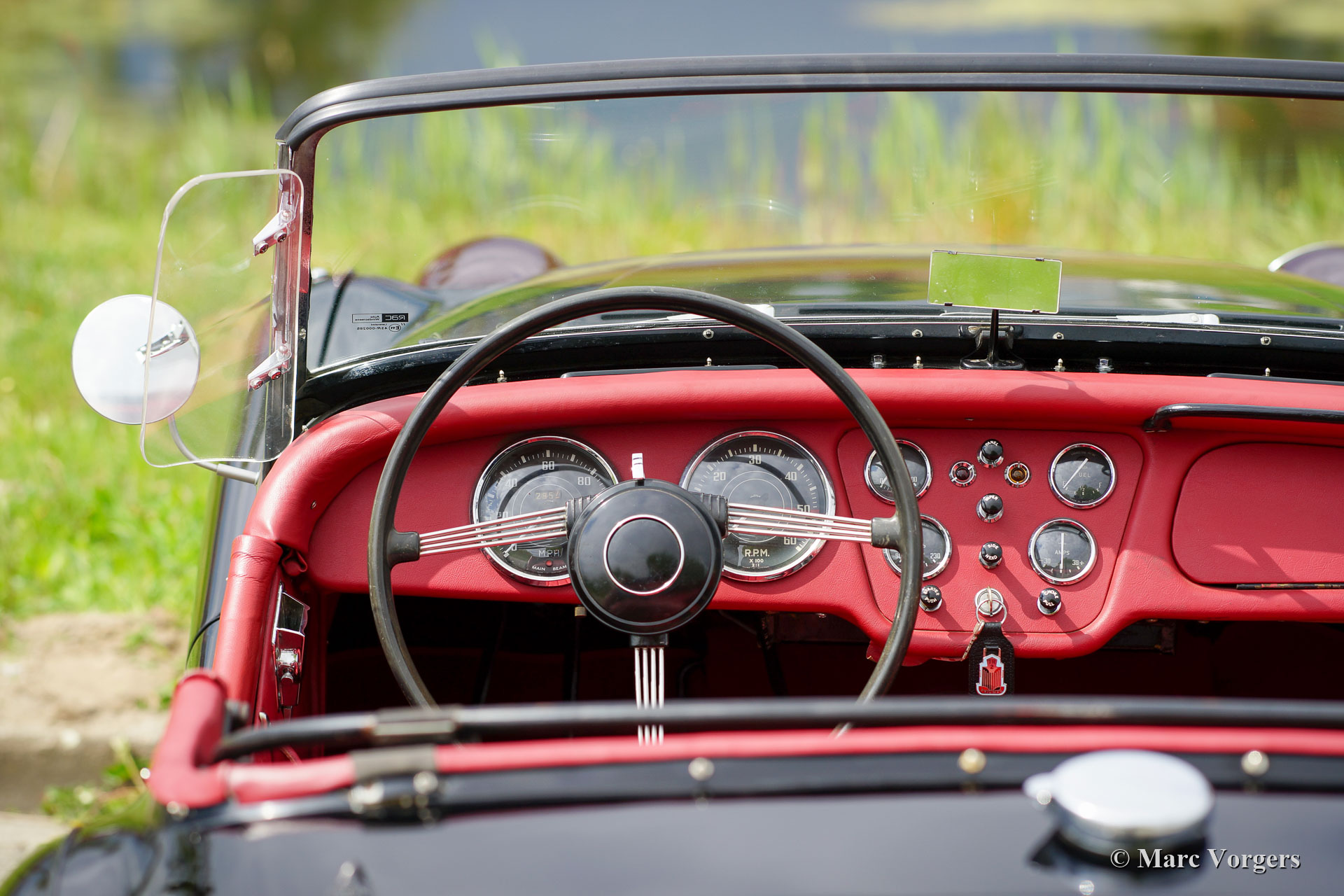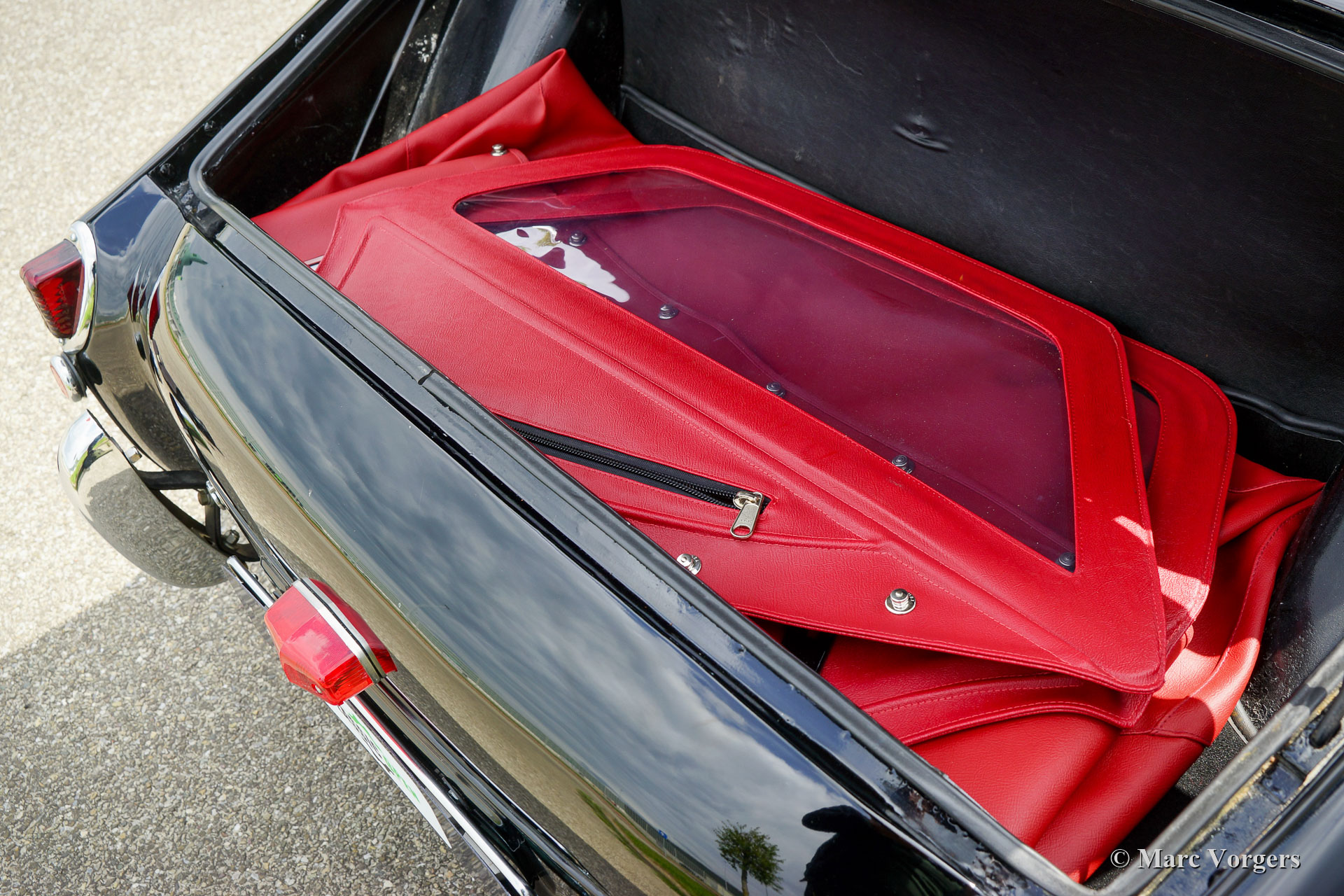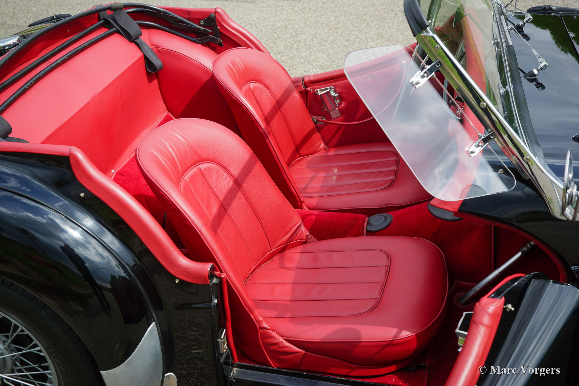 The TR 2 is a pure two-person roadster, a classic generously giving you the fifties British sports car feeling, rough but honest. It comes with a simple soft-top for weather protection. Separate clip-on side screens can additionally be attached to the doors.