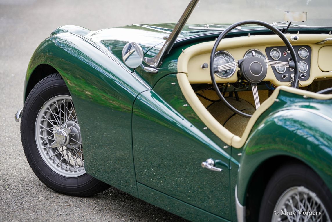 The Triumph TR 3 is a no nonsense sports car; very robust, simple and reliable, a true British sports car all over. The TR 3 was the first production car, off factory, equipped with disc brakes on the front-wheels. The engine was a Standard Vanguard based, cast-iron, long stroke, in-line four cylinder with a displacement of 1991cc. The TR 3 engine was equipped with two carburettors giving a power-output of almost 100 bhp.