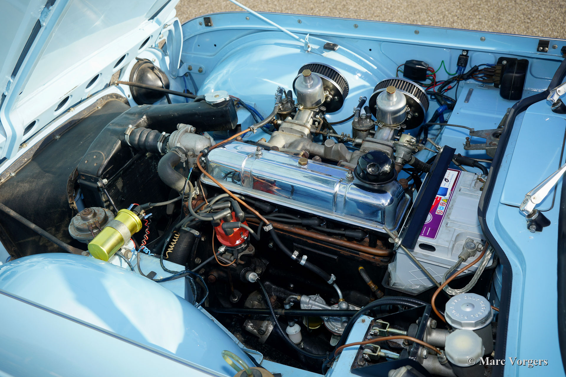 The 2498 cc. straight six with P.I. (Petrol Injection) system had a power output of 150 SAE hp. The complex P.I. system did not make it to the US market because is was delicate to service and adjust. The TR 5 for the US market was fitted with two carburettors and was named Triumph TR 250.