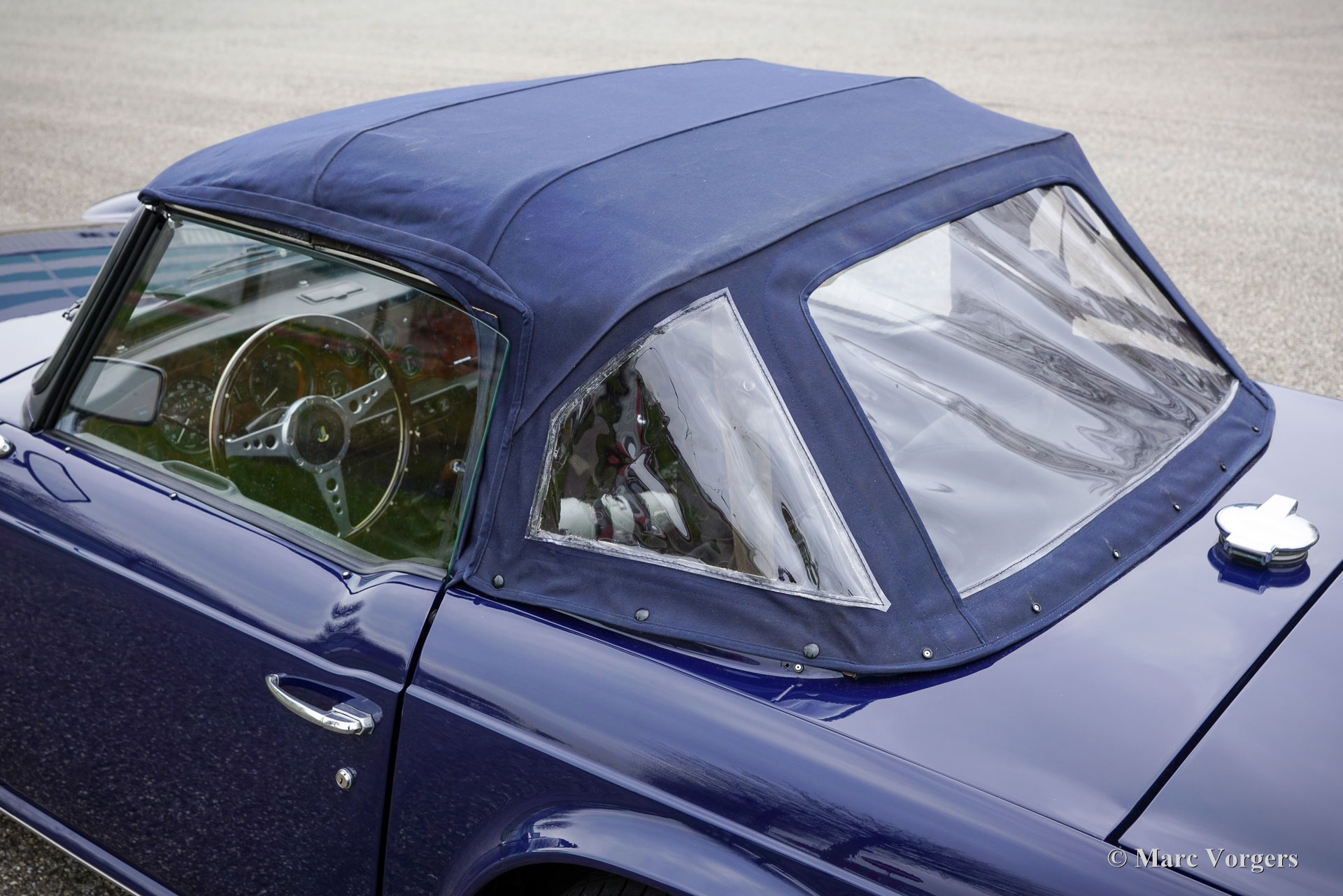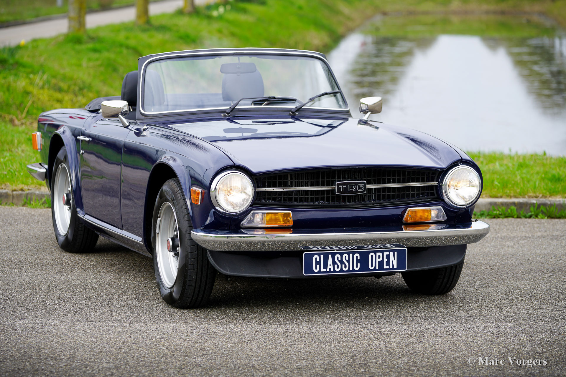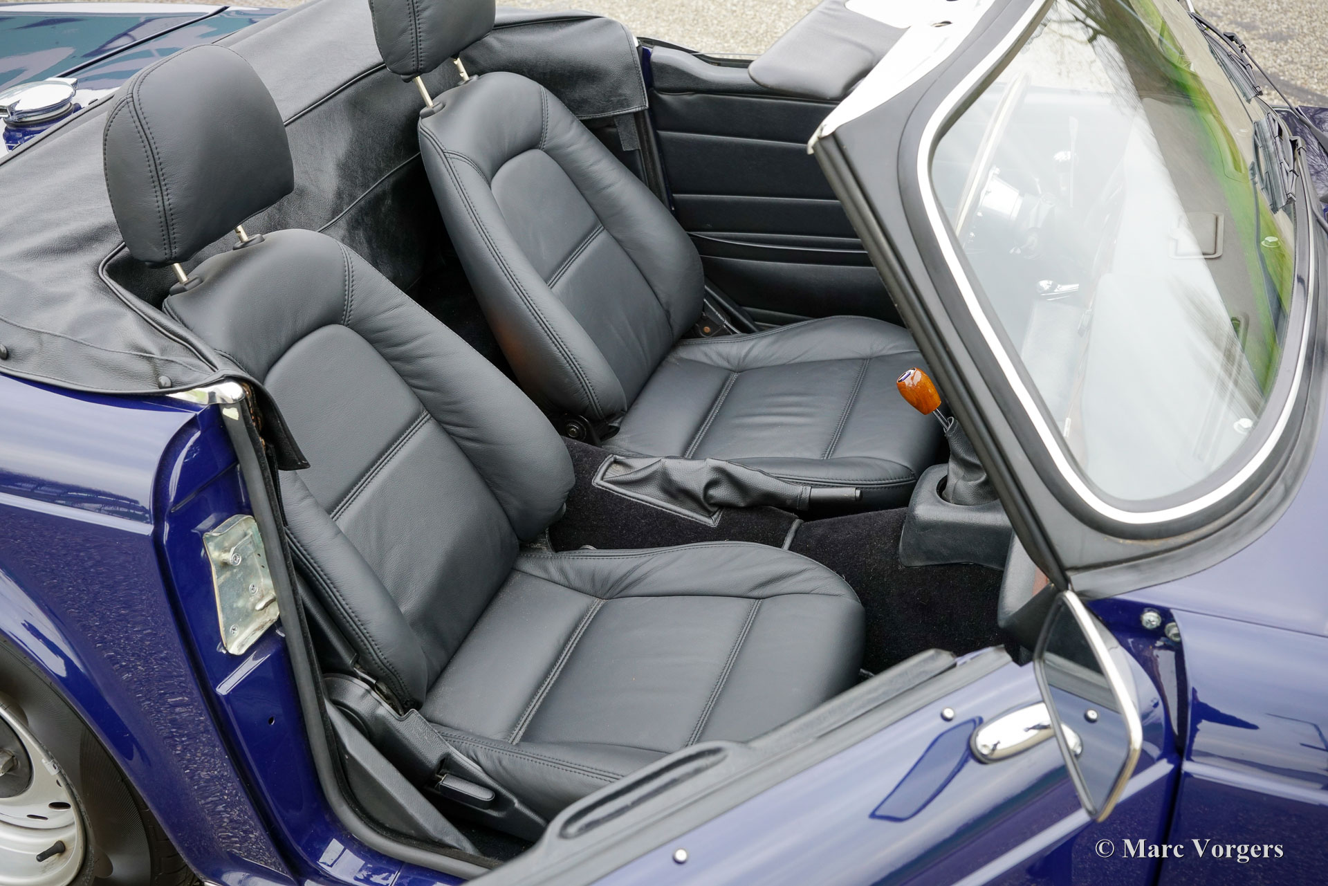 Triumph TR6 PI, Jahr 1972. Fahrgestellnummer 1CP53295LP. Außenfarbe: Dunkelblau, Innenausstattung: Schwarze Ledersitze und schwarzer Teppich. Ausgestattet mit einem blauen Mohair-Verdeck und einer schwarzen Vinyl-Verdeck Abdeckung. Dieser seltene und begehrte Triumph TR6 PI in europäischer Ausführung verfügt über die mechanische Lucas-Benzineinspritzung. Von diesem Modell wurden nur 5.333 Linkslenker und 8.370 Rechtslenker für den britischen Markt gebaut. Der TR6 PI und der Vorgänger TR5 – beide mit dem gleichen 2,5-Liter-Motor und der gleichen technischen Basis – zählen zu den aufregendsten Modellen der Triumph-Roadster-Reihe. Der 150 SAE PS starke Sechszylinder-Motor verleiht dem TR6 PI einen betont sportlichen Charakter, untermalt von einem wunderbar kernigen Auspuffklang. Dieses hervorragende Exemplar wurde in der Vergangenheit restauriert. Die Karosserie wurde innen und außen neu lackiert, und der Innenraum wurde neu bezogen. Das Fahrzeug weist attraktive Originaldetails auf, wie die werkseitigen Stahlfelgen mit schwarzen Radkappen und die Innenraumleuchte zwischen den Sitzen. Zur Ausstattung gehören: Overdrive, elektrische Servolenkung (EZ), Lederkomfortsitze mit höherer Rückenlehne und Kopfstützen, ein Armaturenbrett aus Walnussholz, zwei verchromte, auf die Türen montierte Außenspiegel, ein Moto-Lita-Holzlenkrad, ein Aluminium-Hochleistungskühler, eine elektronische Zündung und eine Edelstahl-Auspuffanlage. Der Triumph TR6 ist das beliebteste Modell der TR-Reihe, wobei die PI-Version die begehrteste ist. Er repräsentiert den letzten der wahrhaft kraftvollen britischen Roadster mit einem Reihensechszylinder unter einer langen Motorhaube und einer tiefen Sitzposition direkt vor der Hinterachse, die dem Fahrer ein cockpitähnliches, fast schon Kampfpiloten-Gefühl vermittelt. Dies ist ein hervorragendes Exemplar einer TR6 PI, angeboten zum Preis eines Vergasermodells … Da kann man einfach nicht widerstehen!