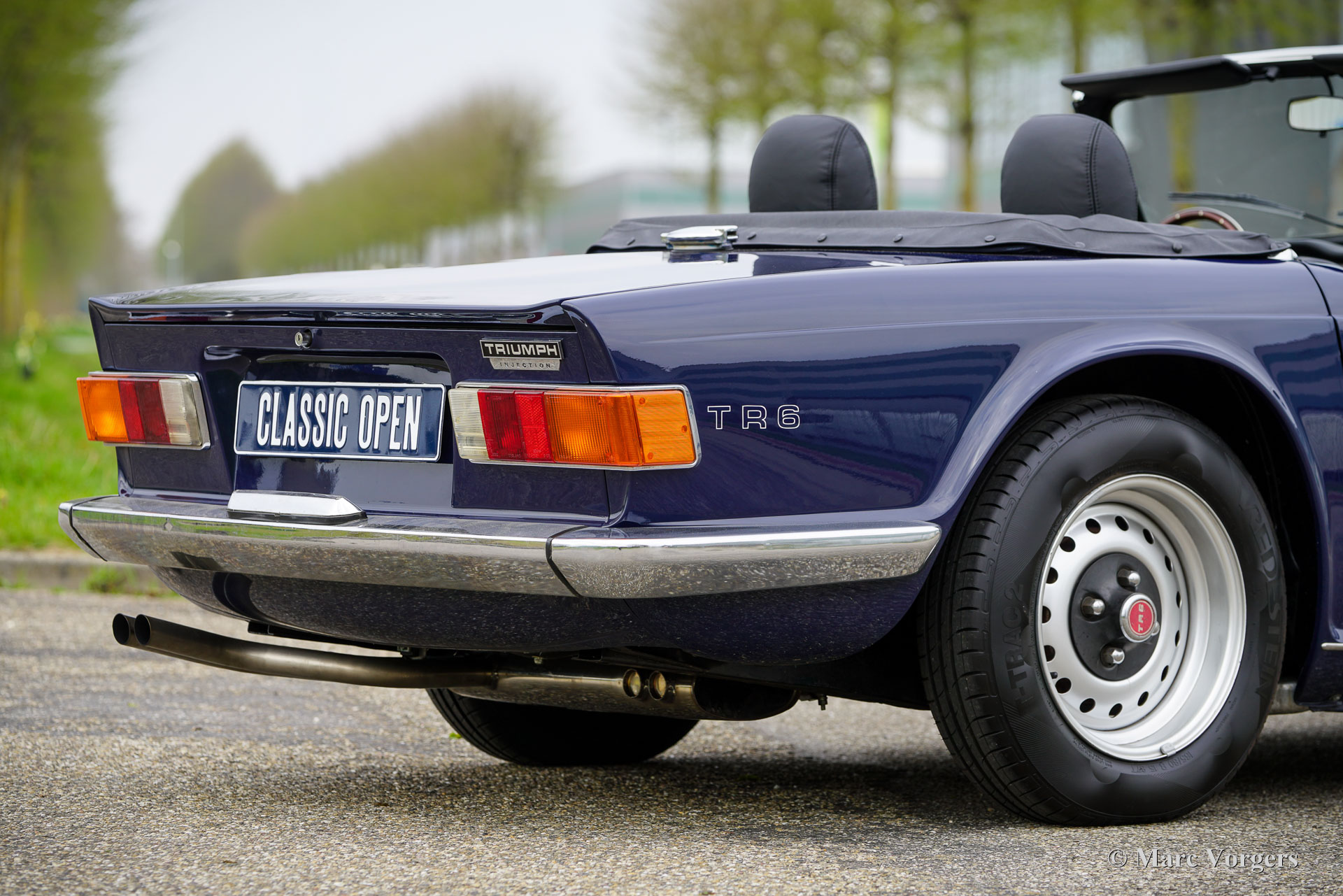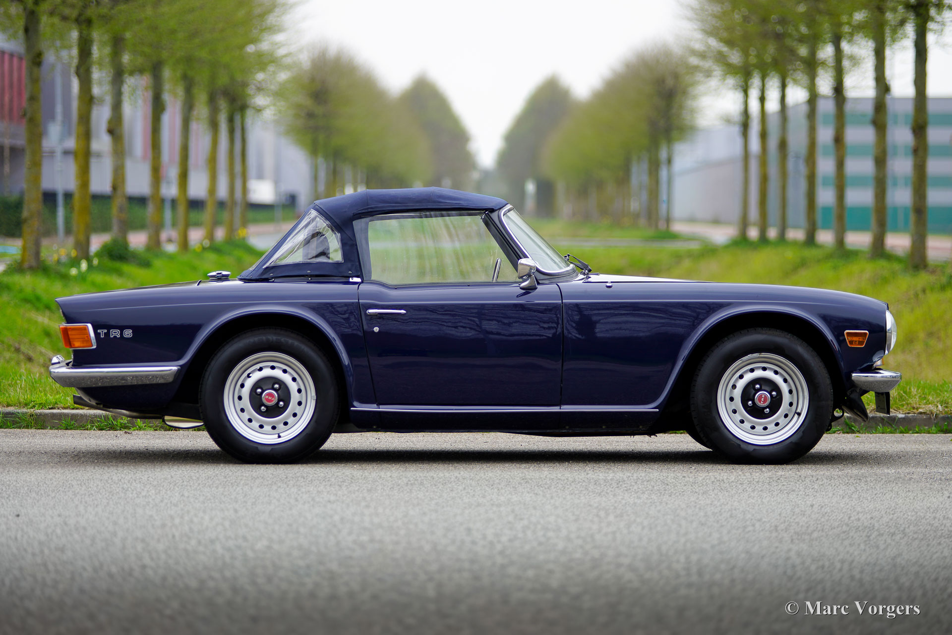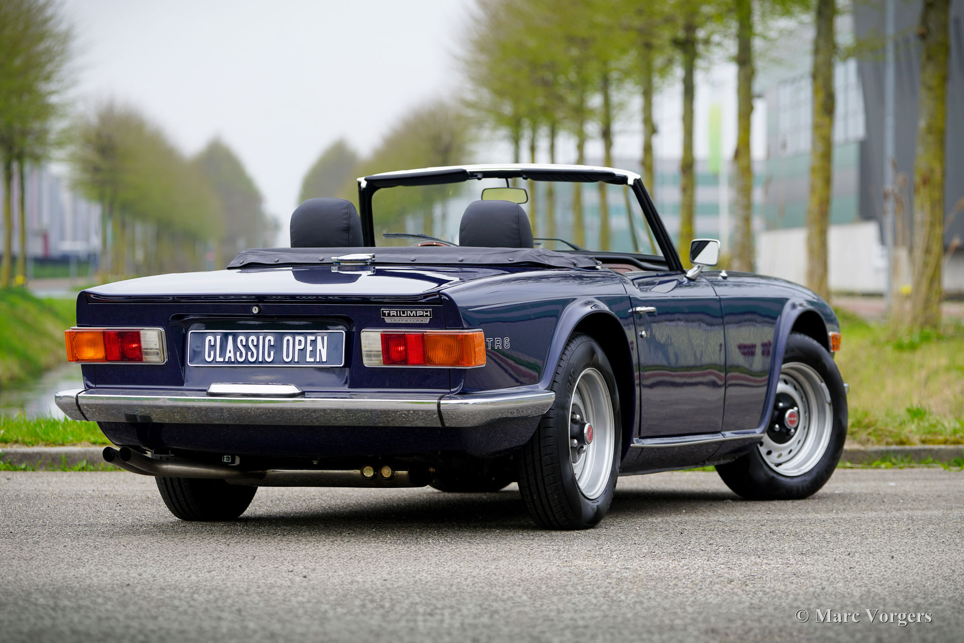 Triumph TR6 PI, Jahr 1972. Fahrgestellnummer 1CP53295LP. Außenfarbe: Dunkelblau, Innenausstattung: Schwarze Ledersitze und schwarzer Teppich. Ausgestattet mit einem blauen Mohair-Verdeck und einer schwarzen Vinyl-Verdeck Abdeckung. Dieser seltene und begehrte Triumph TR6 PI in europäischer Ausführung verfügt über die mechanische Lucas-Benzineinspritzung. Von diesem Modell wurden nur 5.333 Linkslenker und 8.370 Rechtslenker für den britischen Markt gebaut. Der TR6 PI und der Vorgänger TR5 – beide mit dem gleichen 2,5-Liter-Motor und der gleichen technischen Basis – zählen zu den aufregendsten Modellen der Triumph-Roadster-Reihe. Der 150 SAE PS starke Sechszylinder-Motor verleiht dem TR6 PI einen betont sportlichen Charakter, untermalt von einem wunderbar kernigen Auspuffklang. Dieses hervorragende Exemplar wurde in der Vergangenheit restauriert. Die Karosserie wurde innen und außen neu lackiert, und der Innenraum wurde neu bezogen. Das Fahrzeug weist attraktive Originaldetails auf, wie die werkseitigen Stahlfelgen mit schwarzen Radkappen und die Innenraumleuchte zwischen den Sitzen. Zur Ausstattung gehören: Overdrive, elektrische Servolenkung (EZ), Lederkomfortsitze mit höherer Rückenlehne und Kopfstützen, ein Armaturenbrett aus Walnussholz, zwei verchromte, auf die Türen montierte Außenspiegel, ein Moto-Lita-Holzlenkrad, ein Aluminium-Hochleistungskühler, eine elektronische Zündung und eine Edelstahl-Auspuffanlage. Der Triumph TR6 ist das beliebteste Modell der TR-Reihe, wobei die PI-Version die begehrteste ist. Er repräsentiert den letzten der wahrhaft kraftvollen britischen Roadster mit einem Reihensechszylinder unter einer langen Motorhaube und einer tiefen Sitzposition direkt vor der Hinterachse, die dem Fahrer ein cockpitähnliches, fast schon Kampfpiloten-Gefühl vermittelt. Dies ist ein hervorragendes Exemplar einer TR6 PI, angeboten zum Preis eines Vergasermodells … Da kann man einfach nicht widerstehen!