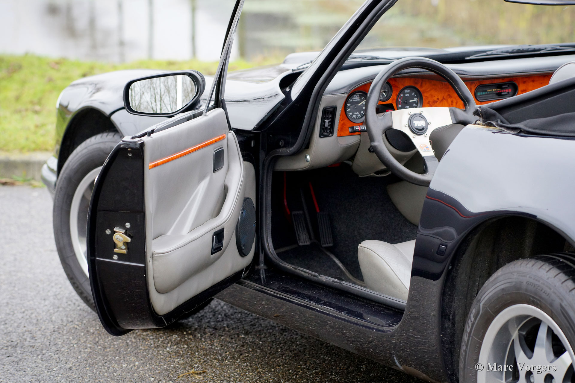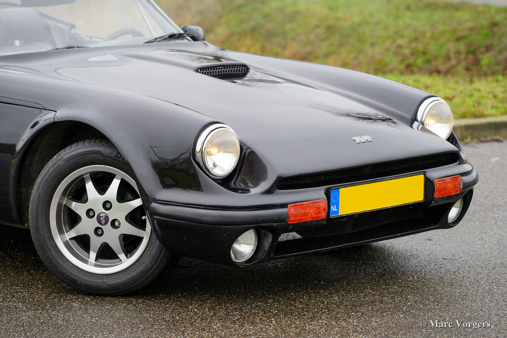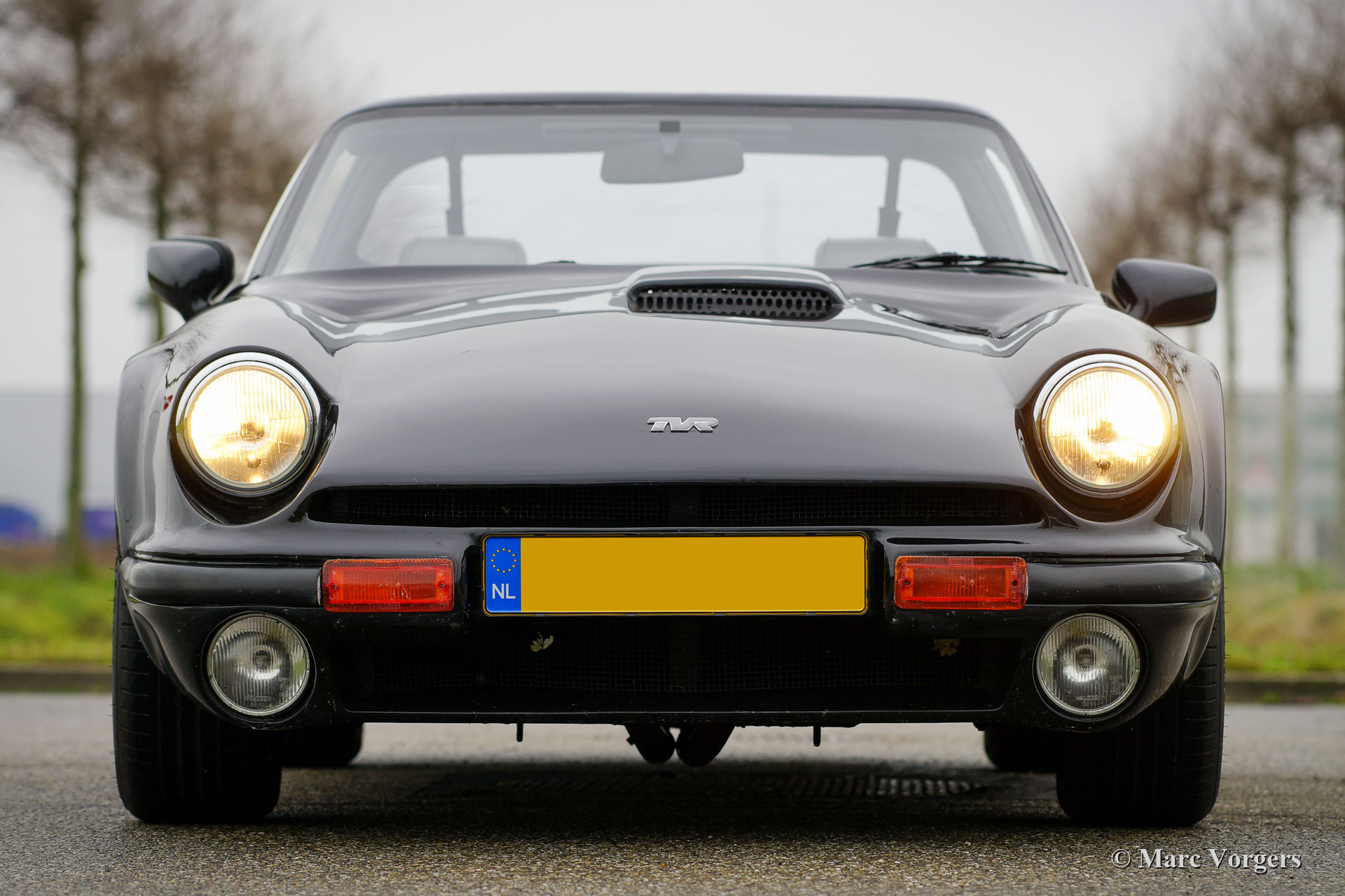 TVR S3, Jahr 1991. Farbe Schwarz kombiniert mit einer grauen Lederausstattung und einem schwarzen Targa-Dach. Der TVR S3 verfügt über den 2,9-Liter-V6-Ford-Motor, der gesunde 170 PS leistet. Die Kraftübertragung auf die Hinterräder erfolgt über ein 5-Gang-Schaltgetriebe. Der Motorsound ist richtig berauschend! Nur 112 Exemplare dieses Modells wurden von 1989 bis 1993 gebaut. Der TVR ist von neuem 116.000 Kilometer gefahren, das Auto ist in einem sehr guten Zustand. Ein besonderes TVR-Merkmal ist das Targa-Oberteil mit herunterklappbarem Rückenteil. Die Dachplatte kann im Kofferraum verstaut werden. TVR-Autos sind vollständig handgefertigt und der Innenraum aus Leder bietet viel Platz. Das offene Fahrerlebnis ist hervorragend!