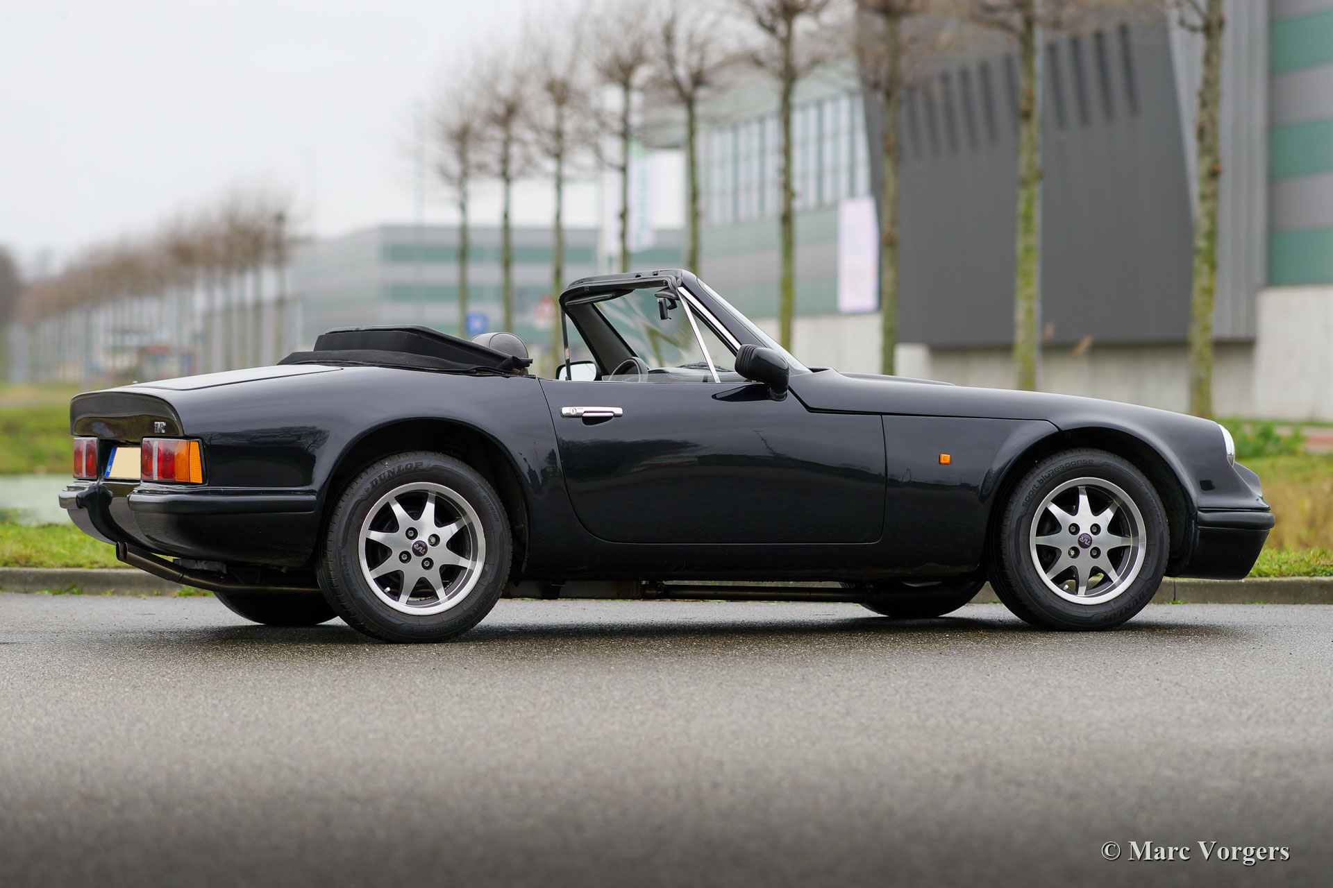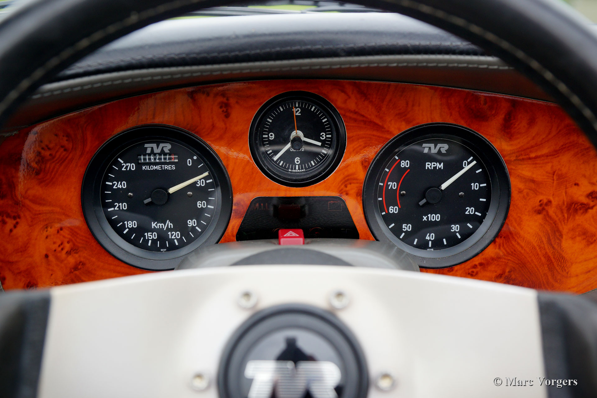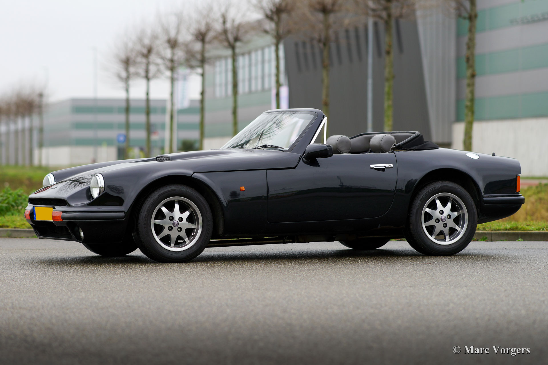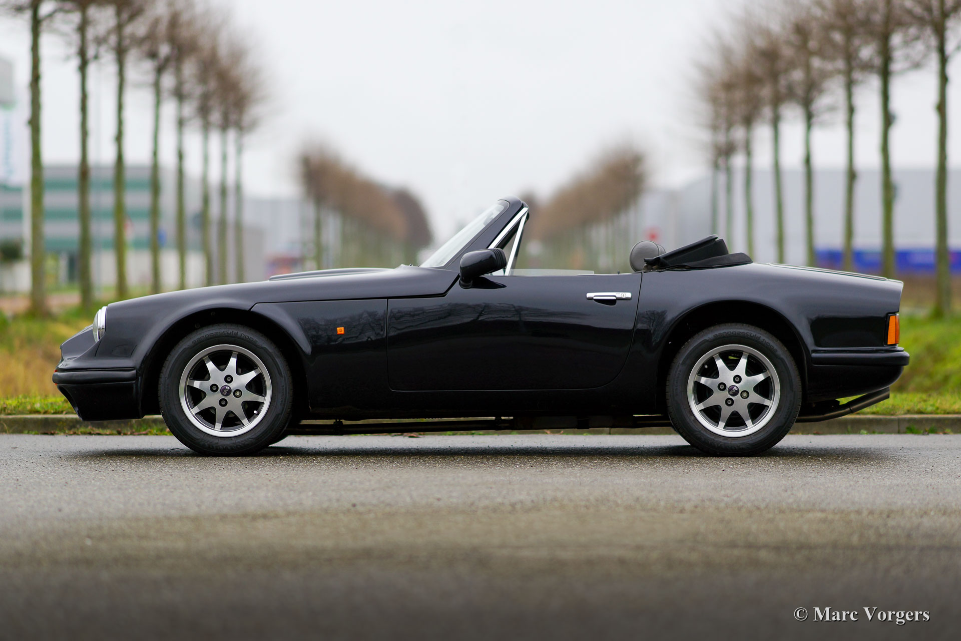 TVR S3, Jahr 1991. Farbe Schwarz kombiniert mit einer grauen Lederausstattung und einem schwarzen Targa-Dach. Der TVR S3 verfügt über den 2,9-Liter-V6-Ford-Motor, der gesunde 170 PS leistet. Die Kraftübertragung auf die Hinterräder erfolgt über ein 5-Gang-Schaltgetriebe. Der Motorsound ist richtig berauschend! Nur 112 Exemplare dieses Modells wurden von 1989 bis 1993 gebaut. Der TVR ist von neuem 116.000 Kilometer gefahren, das Auto ist in einem sehr guten Zustand. Ein besonderes TVR-Merkmal ist das Targa-Oberteil mit herunterklappbarem Rückenteil. Die Dachplatte kann im Kofferraum verstaut werden. TVR-Autos sind vollständig handgefertigt und der Innenraum aus Leder bietet viel Platz. Das offene Fahrerlebnis ist hervorragend!
