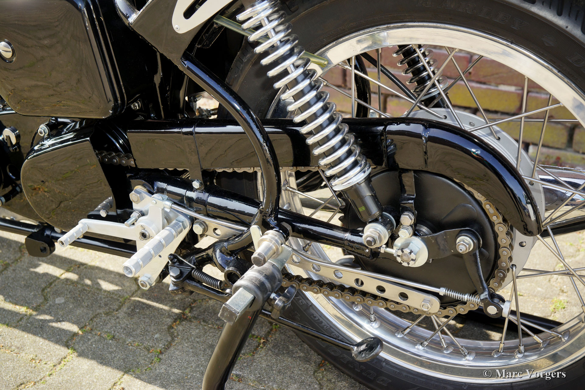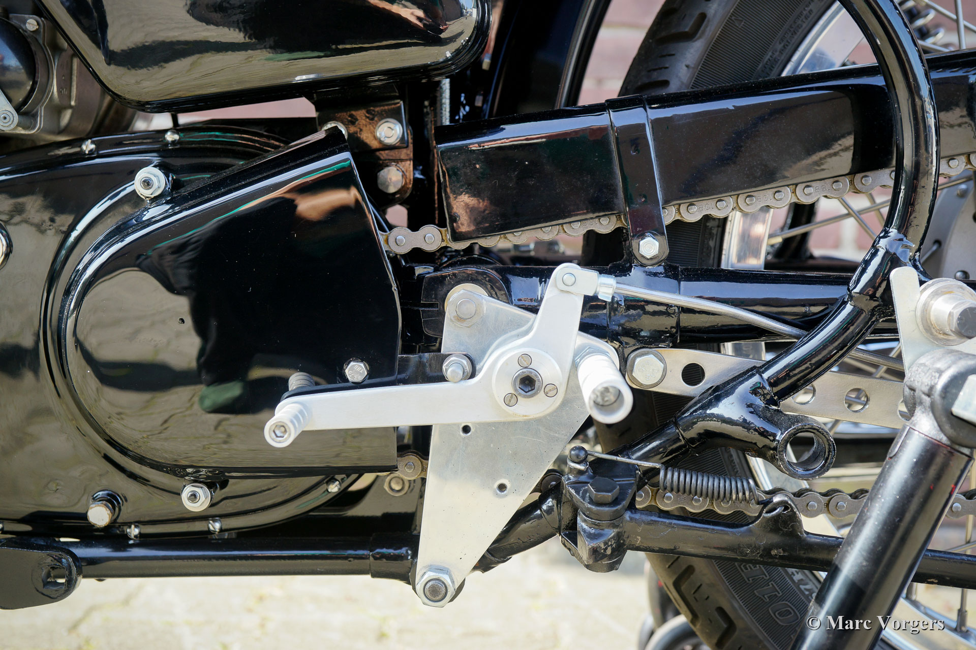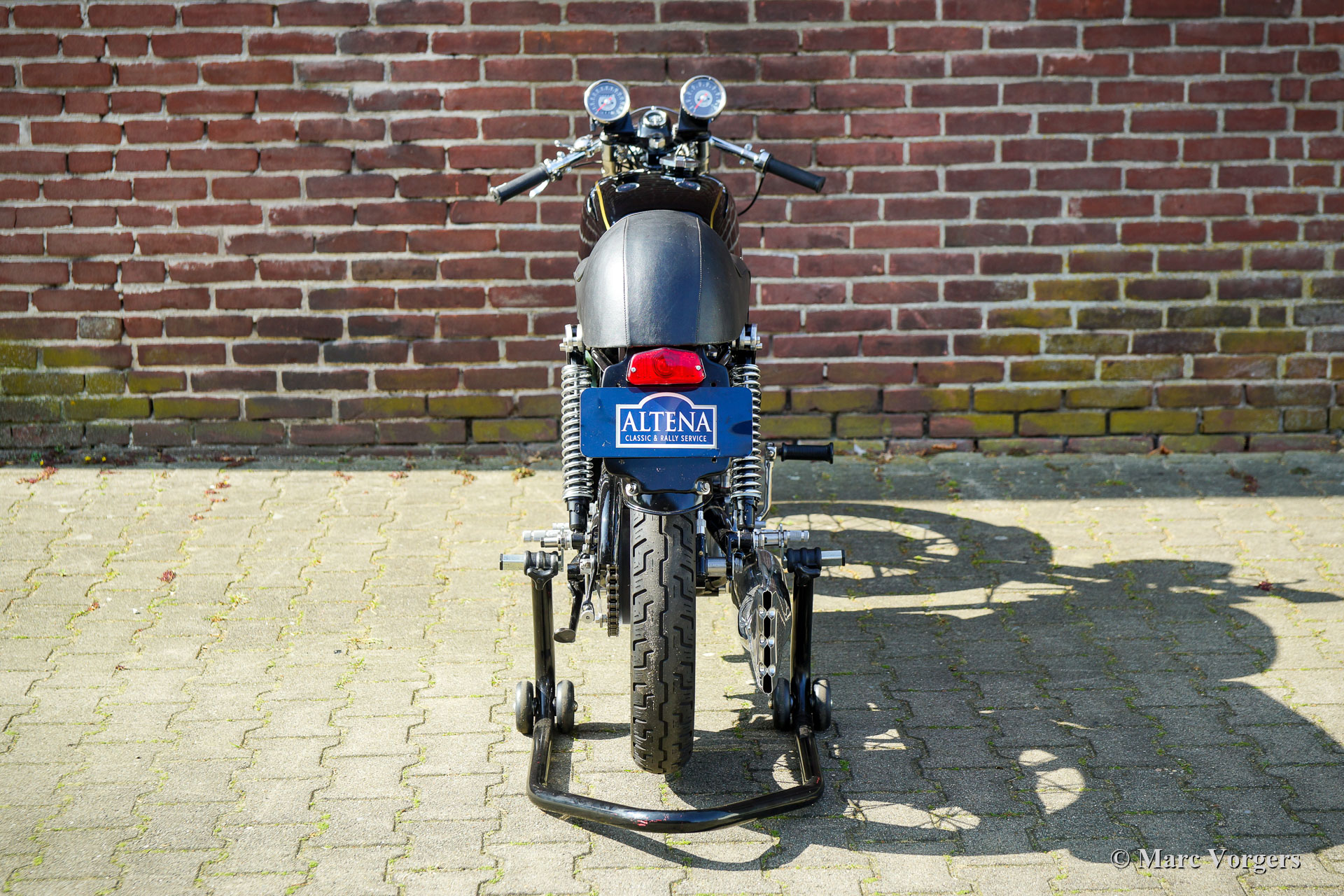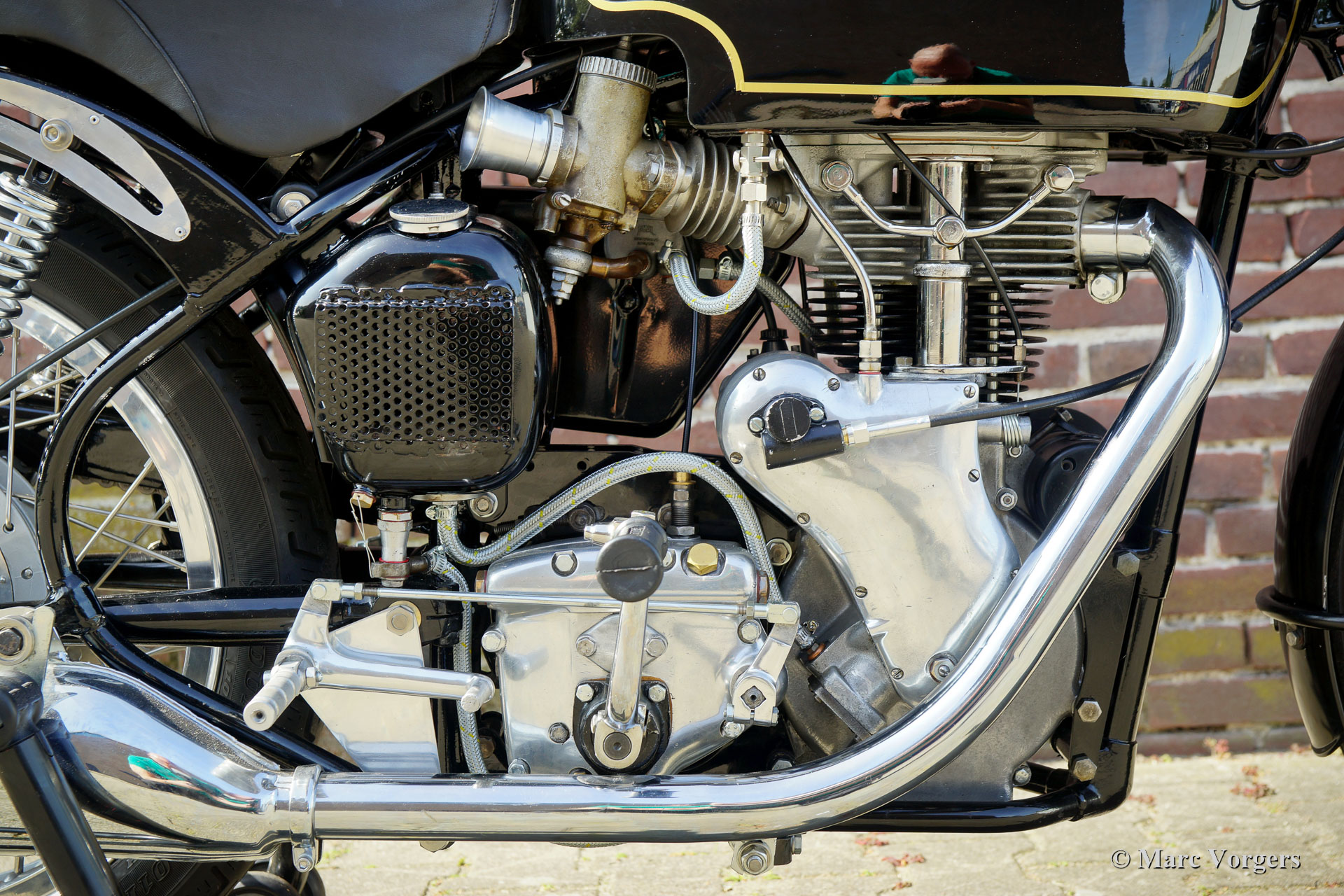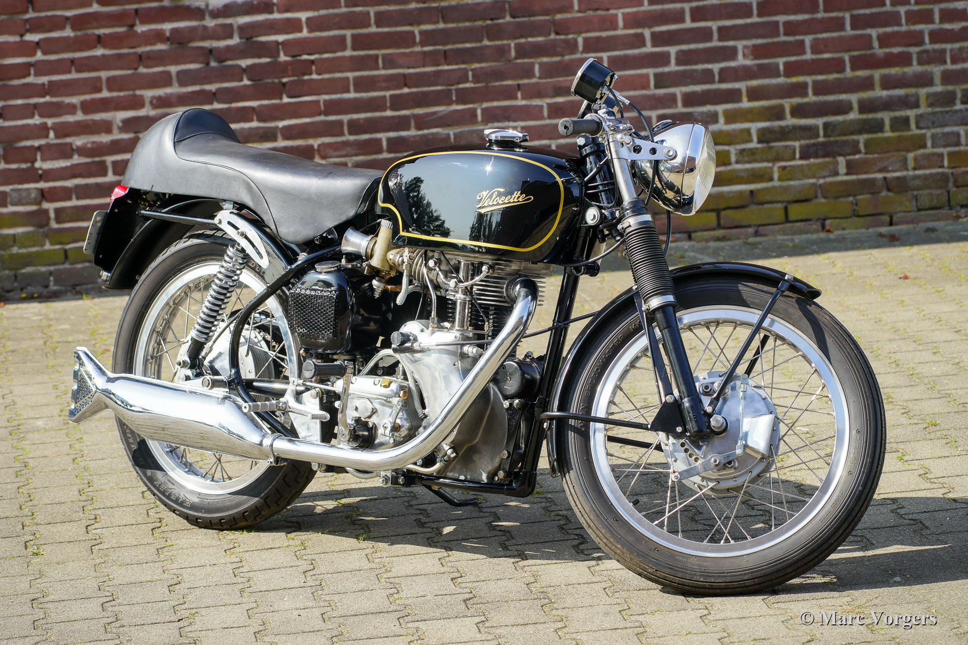 Velocette Venom Thruxton 500cc, Jahr 1963. Farbe schwarz mit gold. Velocette ist eine der legendären britischen Motorradmarken. Velocette hat viele Siege in der Geschichte des Motorsports errungen und die Maschinen waren bei den aufregenden Manx TT-Rennen auf der Isle of Man sehr erfolgreich. Der Venom Thruxton ist einer ihrer letzten Entwürfe. Der Venom Thruxton verfügt über einen leistungsstarken Einzylinder-Viertaktmotor mit 500 ccm Hubraum und Überkopfventilen. Dieses Velocette Venom-Motorrad wurde vollständig restauriert, überholt und nach Thruxton-Spezifikationen und höchsten Standards weiderhergestellt. Mitte der 1960er Jahre wurde der Motor von dem bekannten niederländischen Motorradrennfahrer Jan Strijbis verwendet, der 1976 als letzter Rennfahrer in einem TT auf einer Velocette antrat. Der Motor wurde mit neuen Teilen gemäß den Rennspezifikationen von Strijbis verbaut. Ausgestattet sind ein Thruxton-Zylinderkopf mit 2-Zoll-Einlassventil, Thruxton Racing-Nockenwellen, eine Rennkupplung mit 20 Federn und ein GP2 Amal-Rennvergaser. Das Getriebe ist eine Thruxton-Einheit mit „close ratio“ Übersetzungsverhältnis. Die spezielle Rennkurbelwelle, die Pleuelstange und der Kolben wurden ausgewuchtet. Dieser Motor läuft beeindruckend stark und ist für den Einsatz auf Straßen und Rennstrecken geeignet. Das Motorrad zeigt die fantastischen originalen Velocette Venom- und Thruxton-Details wie den speziellen Benzintank, den Öltank mit Hitzeschild, die große vordere Trommelbremse und die Aluminiumfelgen mit Edelstahlspeichen. Diese seltene Velocette Venom Thruxton sieht wie ein Bild aus und wird ein Blickfang bei jedem historischen Motorradtreffen sein. Diese Velocette-Motorräder sind sehr schwer zu finden, ein echtes Sammlerstück!