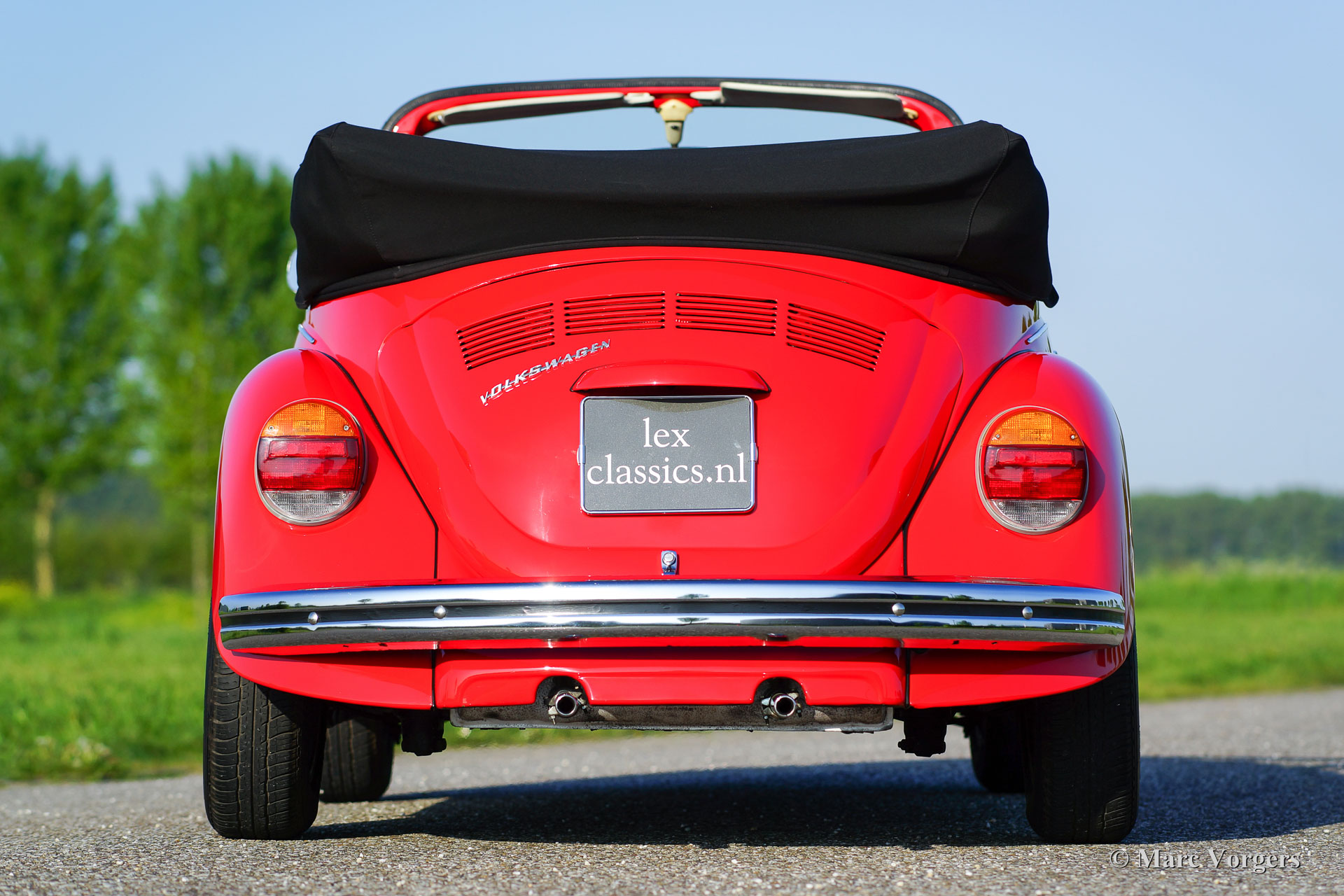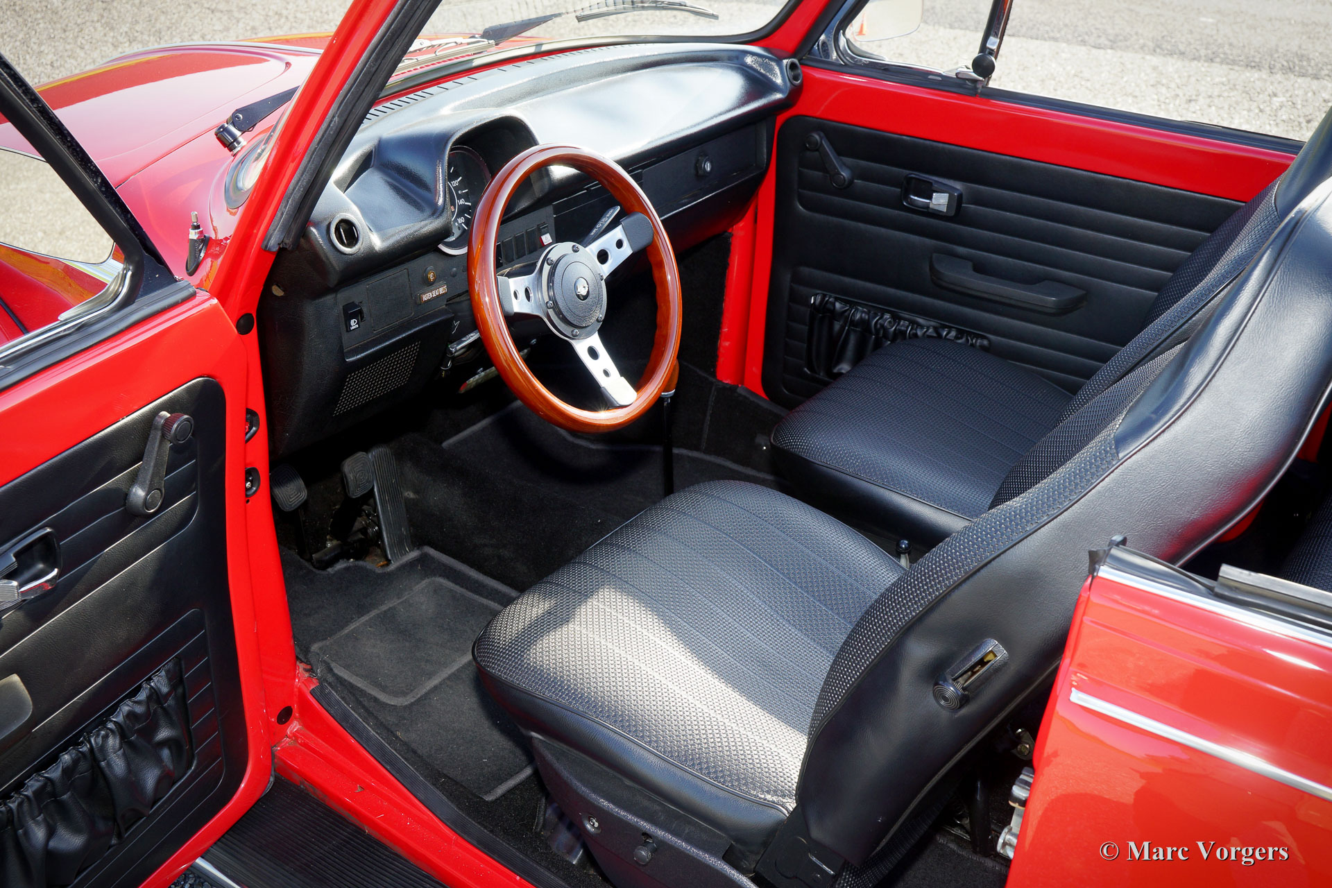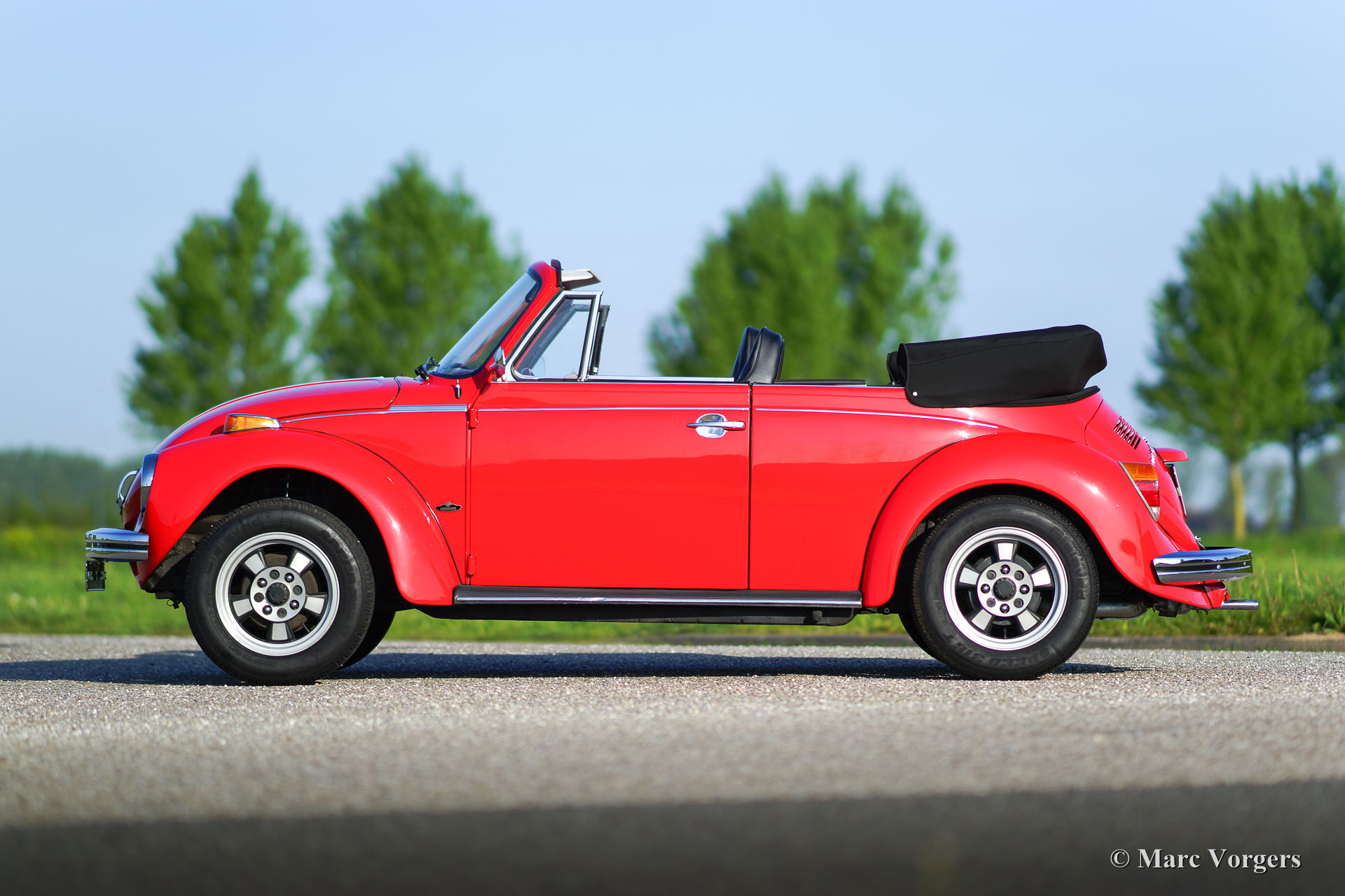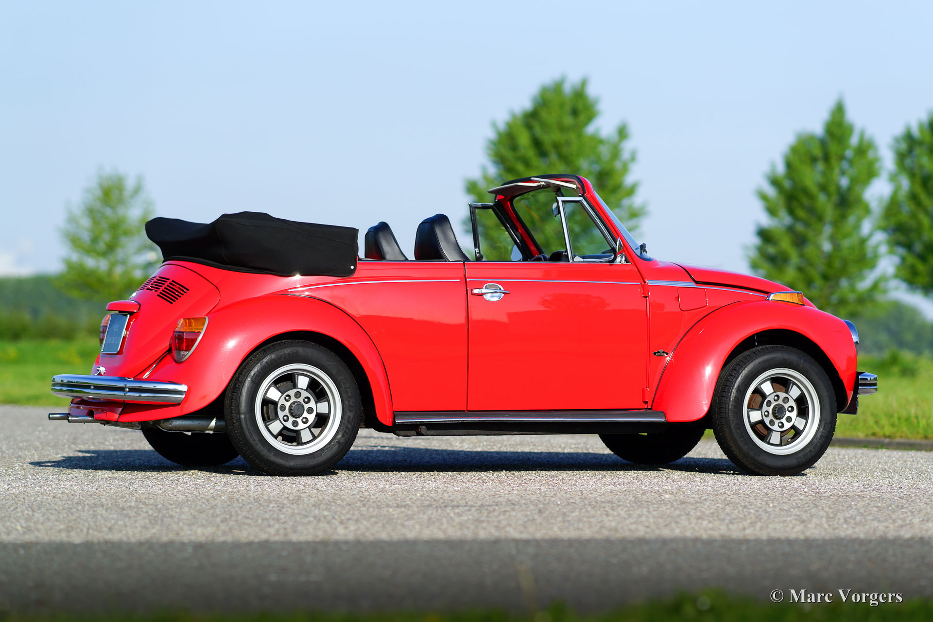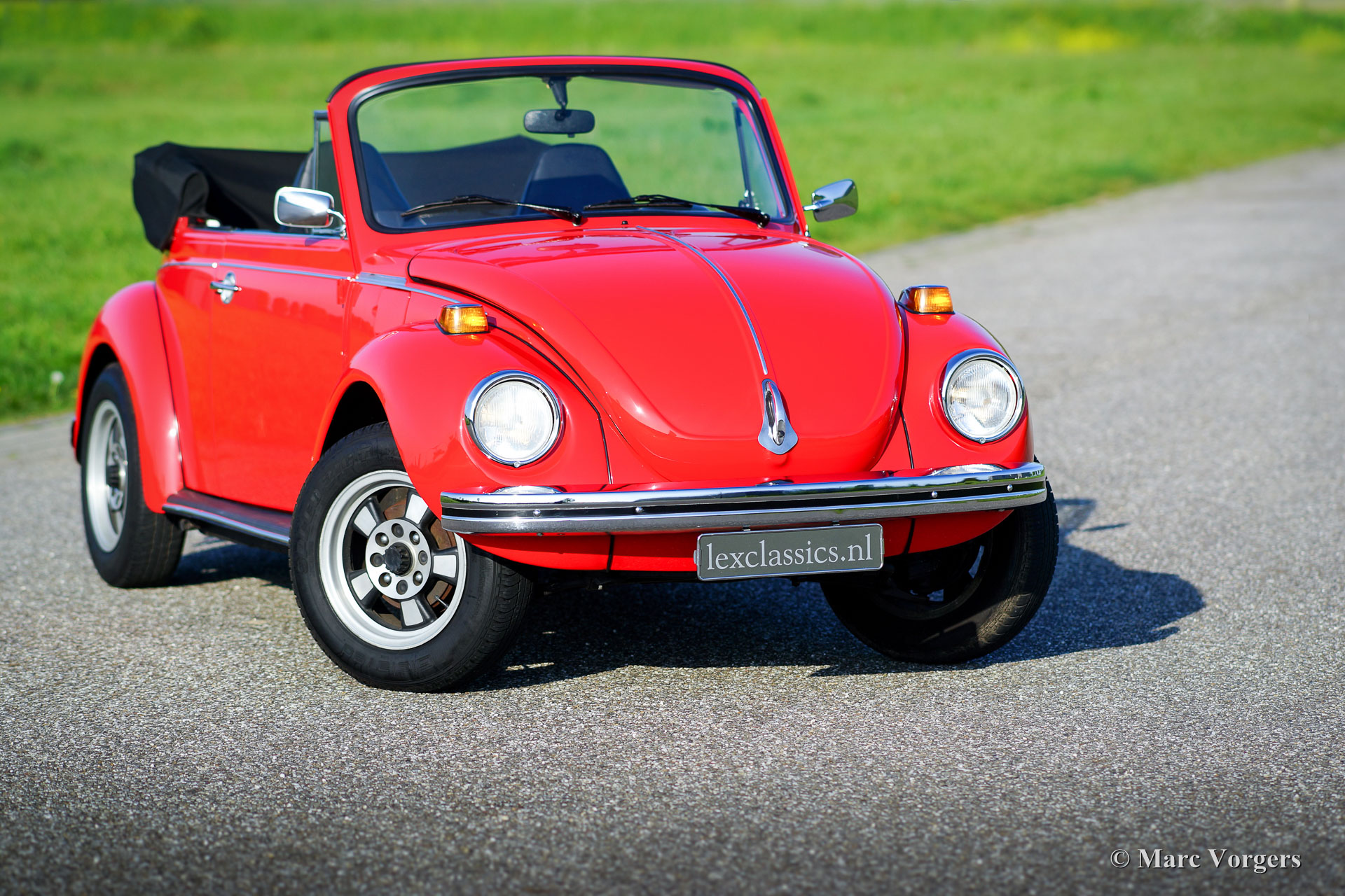 Volkswagen ‘Käfer‘ 1303 Cabriolet, Jahr 1973. Farbe rot mit schwarzem Kunstleder Innenraum und schwarzem Teppich. Schwarzes Verdeck und Verdeck-Abdeckung. Dieser feine VW 'Käfer' ist in einem sehr guten Zustand und das Auto fährt herrlich! Der Volkswagen ist das ideale Cabrio für eine Familie oder das Erlebnis mit Freunden zu genießen. Alle Passagiere haben Grund zu lächeln, weil sie in Komfort gefahren werden und mittlerweile viele ‘Daumen-hoch‘ von andere Verkehrsteilnehmer erhalten! Dieser VW 'Käfer' 1303 verfügt über einen leistungsstärkeren 1493 ccm Motor, der dem Auto gerade diesen Extrageist gibt! Die schönen Leichtmetallfelgen verleihen dem Auto auch ein sportlicheres Aussehen. Dies ist ein klassischer ‘Evergreen‘!