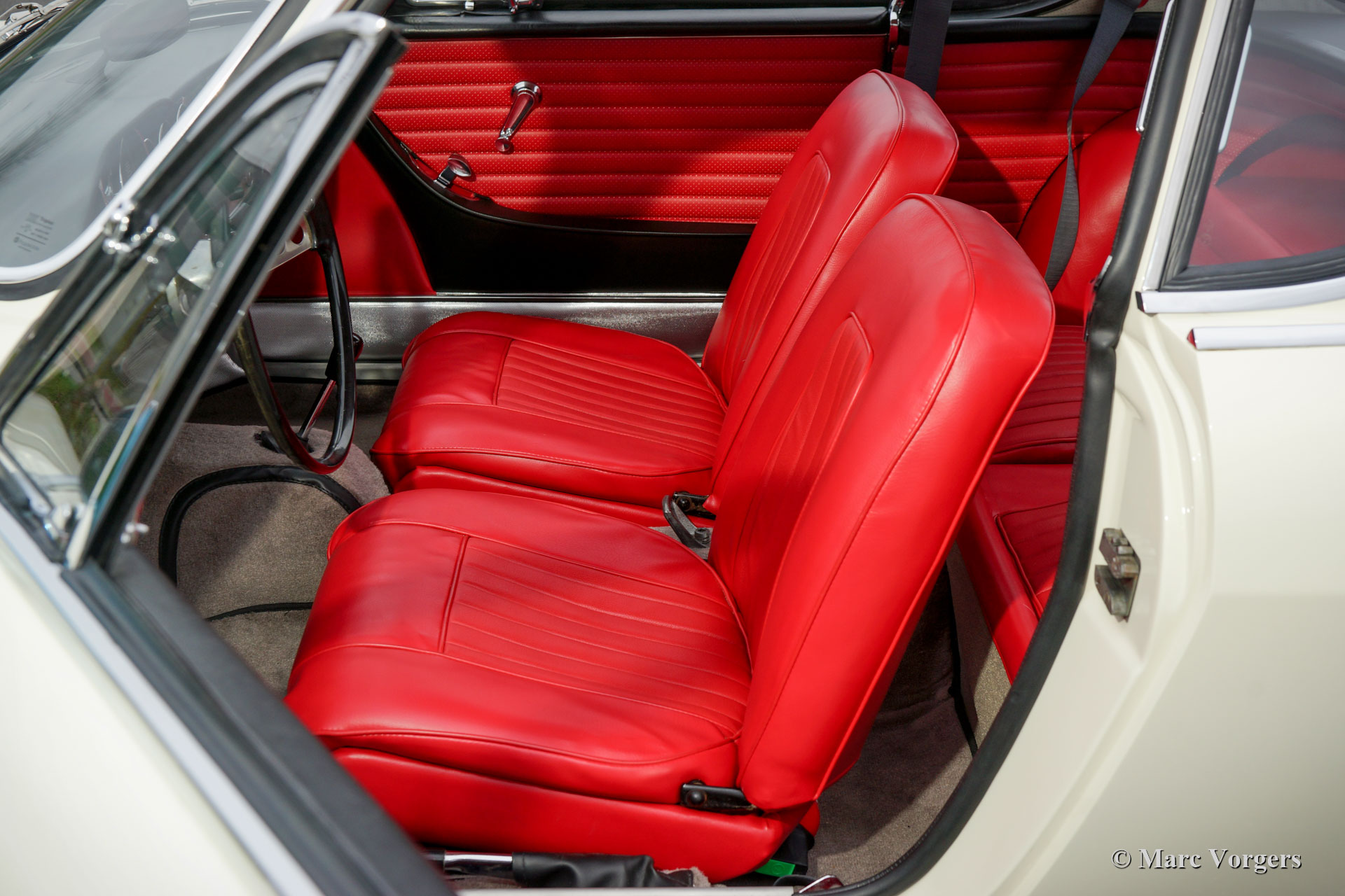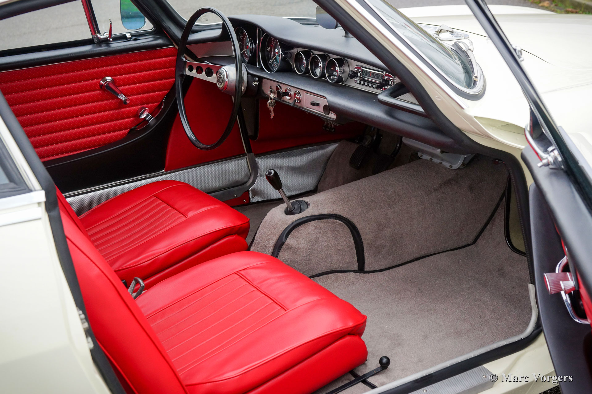 Volvo P1800 Jensen, Jahr 1963. Farbe Weiß „California White“ (Farbcode 42) kombiniert mit roter Innenausstattung (Code 302) und grauem Teppich. Dieser wunderschöne Volvo P1800 ist ein originaler P1800 mit einer von Jensen in Großbritannien gebauten Karosserie. Nur 6000 P1800-Autos wurden von Jensen gebaut, dieses Auto hat die Nummer 4851. Der Wagen wurde im Jahr 2000 in die Niederlande importiert und 2016 vom jetzigen Besitzer erworben. Ab diesem Jahr begann eine umfassende Restaurierung, die kürzlich abgeschlossen wurde. Das Auto wurde nach den Originalspezifikationen der Fabrik restauriert, abgesehen vom Einbau eines modernen Bremsservos. Alles wurde überprüft, überholt / restauriert und oder erneuert. Nur Teile, die nicht mehr zu reparieren waren, wurden durch Volvo Qualitätsteile von VP Autoparts in Schweden ersetzt. Die Karosserie wurde von der Firma Hogenboom in den Niederlanden von Grund auf restauriert und mit einem hochwertigen Lacksystem veredelt. Der Innenraum wurde komplett nach Originalspezifikationen neu gepolstert und die Armaturenbrettinstrumente wurden komplett überholt. Die Chromteile wurden in Großbritannien perfekt neu verchromt. Die Mechanik wie Motor, Overdrive, Bremsen, Vergaser, Anlasser, Dynamo, Bremsen und Federung wurden komplett überholt. Das Getriebe und das Differenzial erwiesen sich als in ausgezeichnetem Zustand, diese wurden überprüft, gereinigt, mit neuen Dichtungen versehen und äußerlich aufgearbeitet. Der Motor wurde mit speziell angefertigten CP-Kolben und einer modifizierten hinteren Öldichtung ausgestattet. Außerdem wurde der Kabelbaum erneuert, die Bremsleitungen erneuert, alle Gummiteile erneuert, der Kraftstofftank erneuert und die Karosserie mit einer Schallschutzbehandlung und einem transparenten Korrosionsschutz versehen. Dieser wunderschöne Volvo P1800 verfügt über die sehr seltenen originalen Radabdeckungen, die originalen FIAMM-Drucklufthörner, eine Edelstahl-Auspuffanlage und ein klassisches Blaupunkt Münster-Radio mit UKW-Empfang. Dieser prächtige Volvo P1800 ist in BRANDNEUEM Zustand und sieht genauso aus, als hätte er 1963 die Werkstatte von Volvo verlassen! Ein fantastisches Exemplar für den Volvo-Sammler und P1800-Enthusiasten.