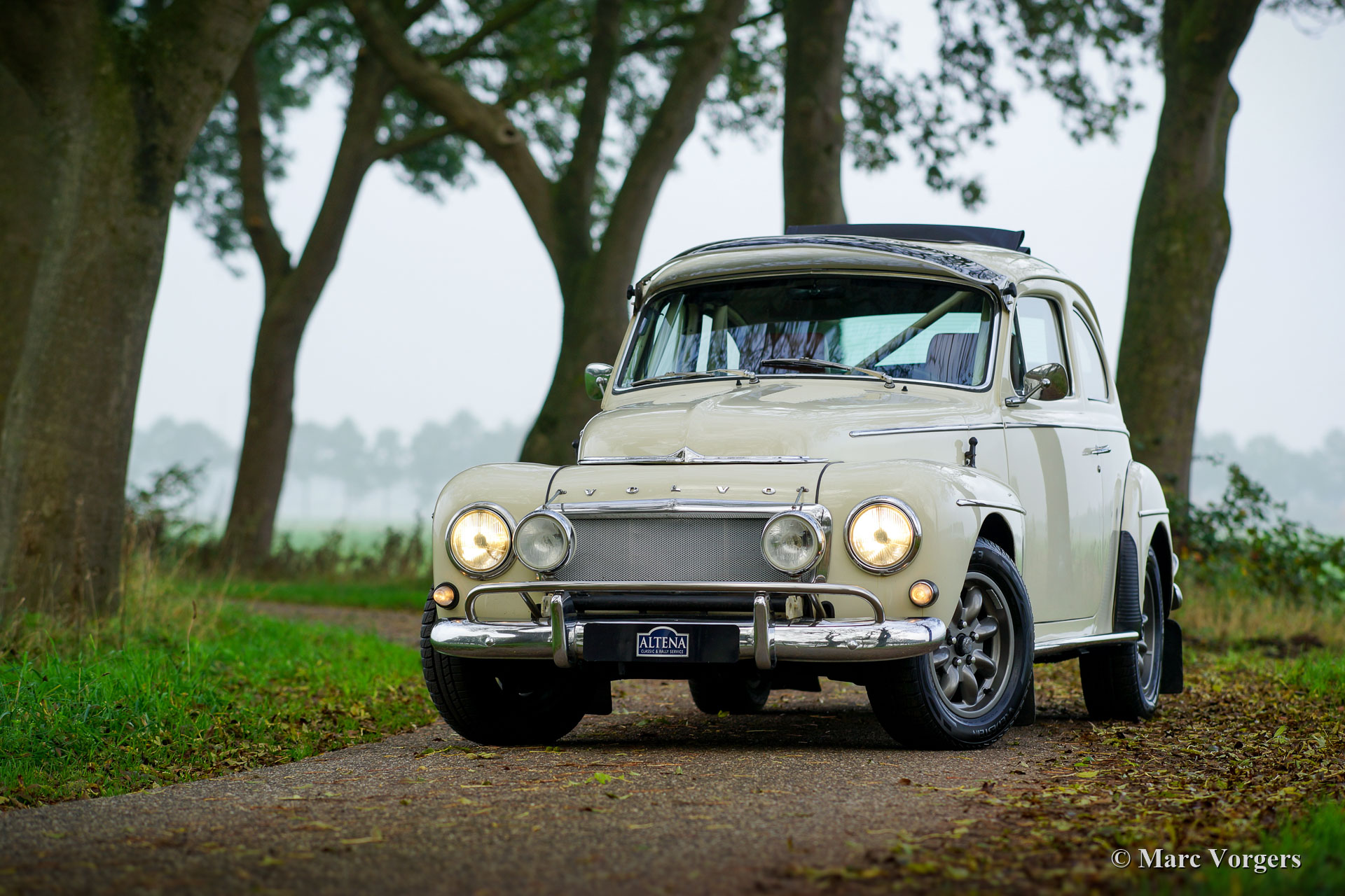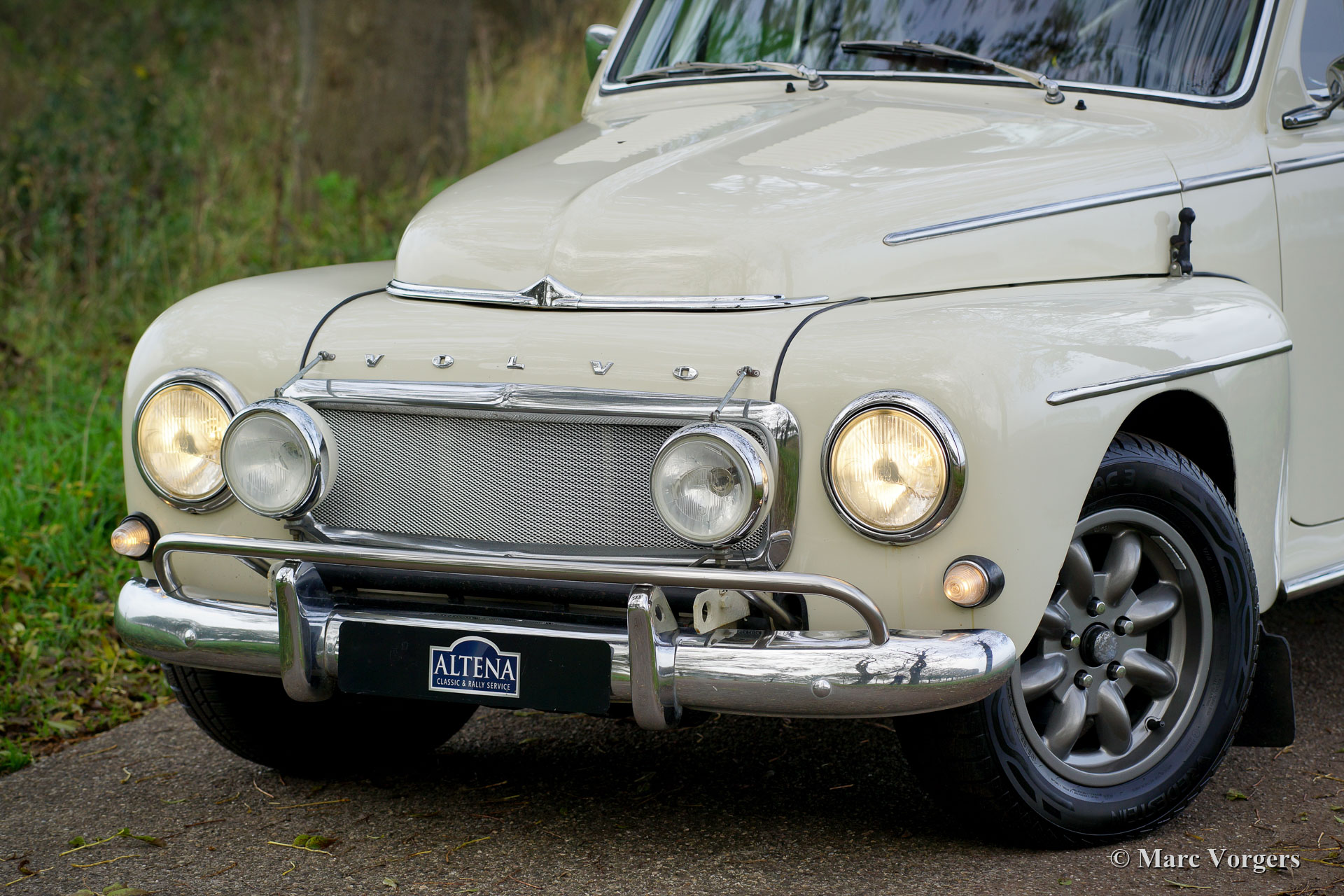 Volvo PV 544 Rallyewagen, Jahr 1960. Farbe Cremeweiß kombiniert mit einem schwarz / cognacfarbenem Rallyeinnenraum. Dieser Volvo PV544 wurde im Jahr 1996 in die Niederlande importiert. Im Jahr 2003 wurde das Auto vollständig restauriert, überholt und für die Teilnahme an der Rallye Amsterdam - Peking 2006 vorbereitet. Die Restaurierung und Rallye Präparation erfolgten in höchster Perfektion. Kosten und Mühen wurden gespart und die Arbeiten wurden von einem renommierten Fachbetrieb ausgeführt. Jetzt, über ein Jahrzehnt später, ist das Auto innen und außen immer noch in einem exzellenten Zustand. Seit der Amsterdam - Peking Rallye hat der Eigentümer regelmäßig an anderen historischen Rallyeveranstaltungen teilgenommen. Im Laufe der Jahre wurde das Auto perfekt und professionell gewartet und immer auf dem neuesten Stand gehalten. Dieser robuste Volvo PV544 verfügt über einen Volvo B20-Vierzylindermotor mit zwei S.U. Vergaser, ein Viergang-Schaltgetriebe mit Overdrive, Minilite-Leichtmetallräder, ein Webasto-Schiebe- / Klappdach, ein Simons-Sportauspuff, ein Aluminium-Benzintank, ein Sparco-Sportlenkrad, ein Vollrollkäfig, 4-Punkt-Sicherheitsgurte, VDO-Armaturenbrett Instrumente, ein spezieller Elektrischer Kabelbaum, zwei Cibië Oscar Scheinwerfer vorn, zwei breitstrahlende Rückfahrscheinwerfer, zwei Reserveräder, spezielle Ledersitze und ein originaler Volvo ‚Sunvisor‘. Außerdem sind alle Rallye-Instrumente, die Sie auf den Fotos sehen, enthalten. Dieser Volvo ist ein erstklassiges (Langstrecken-) Rallyeauto und wird mit einem FIVA-Ausweis geliefert. Dieses großartige Rallyeauto ist bereit für jedes neue Abenteuer!