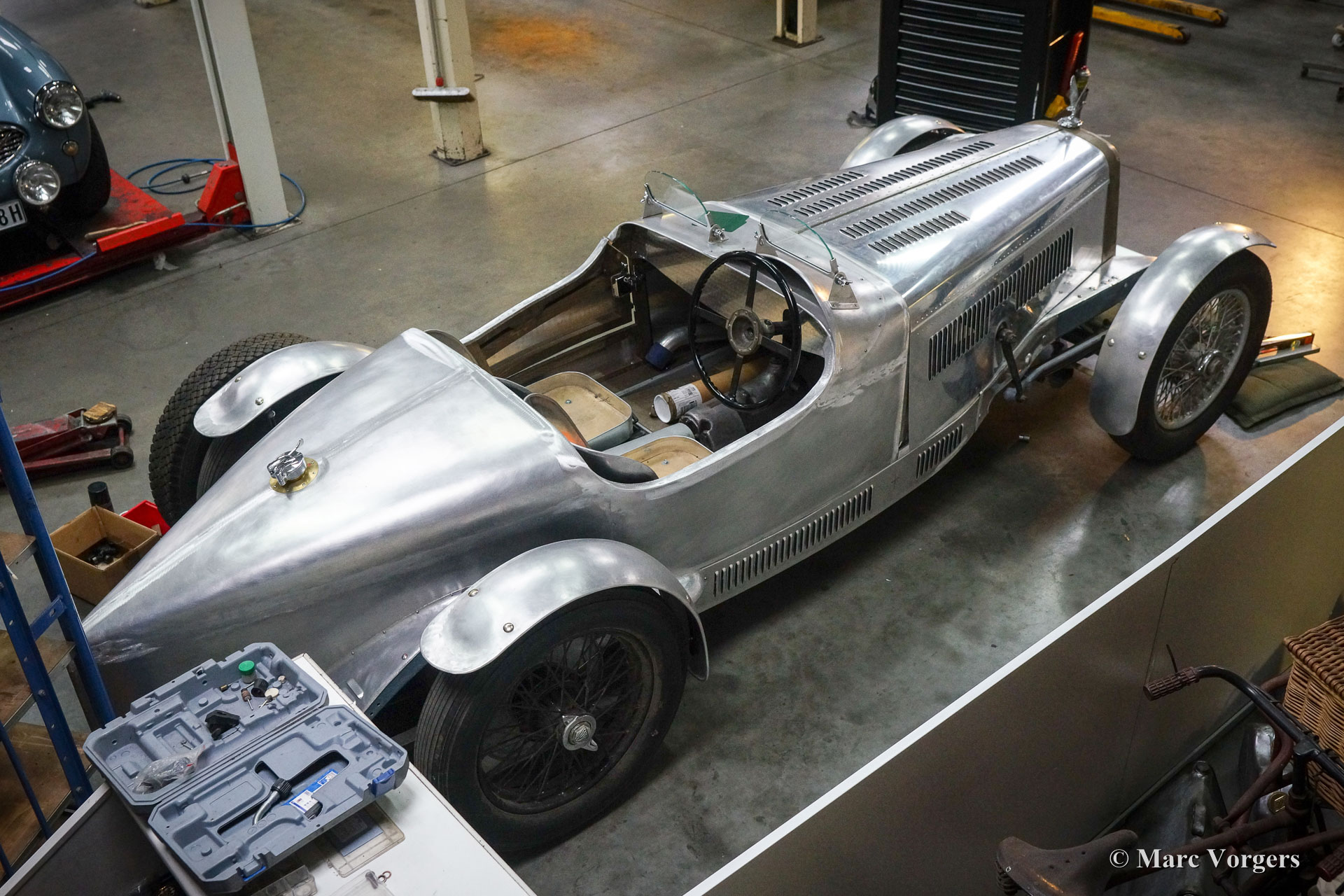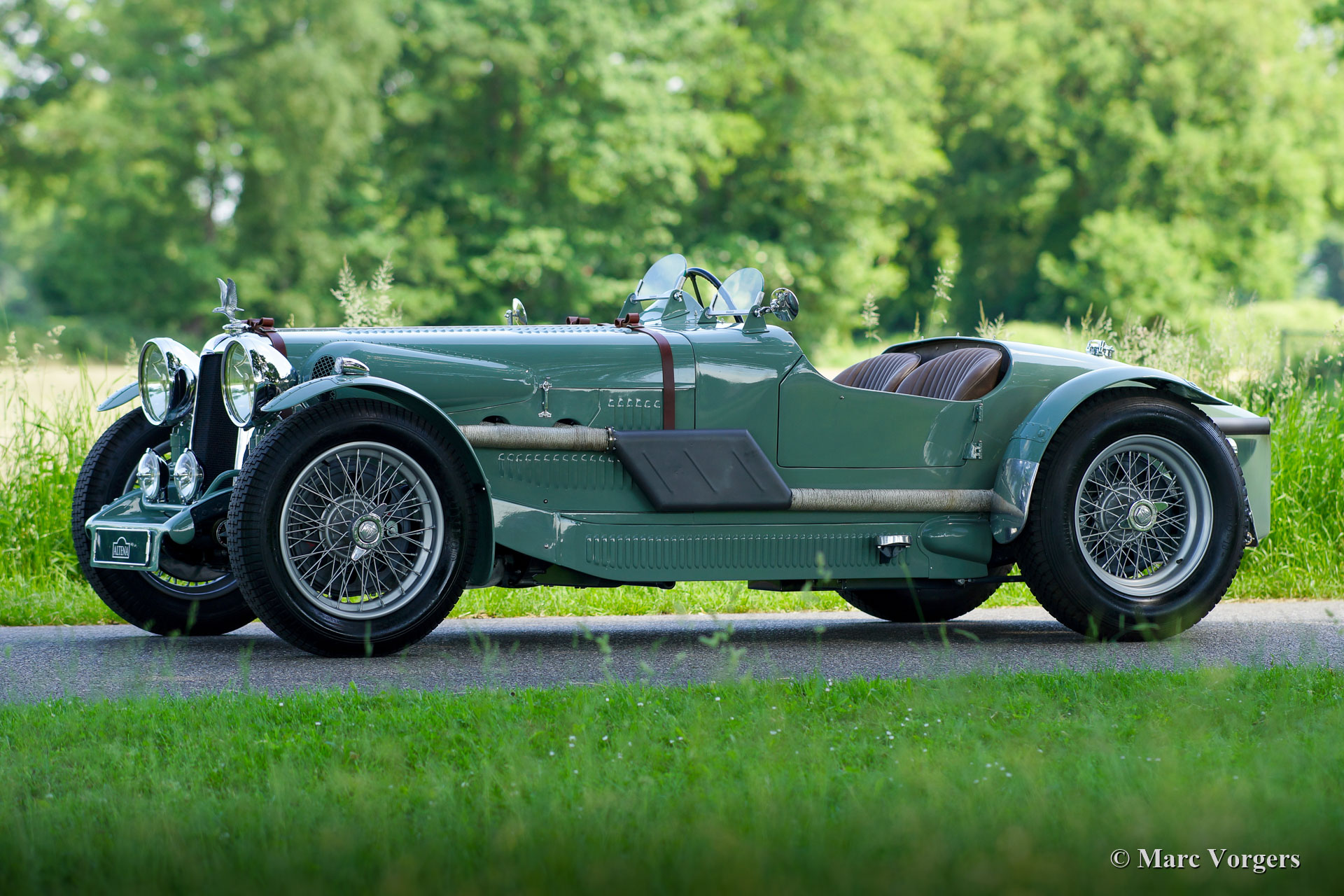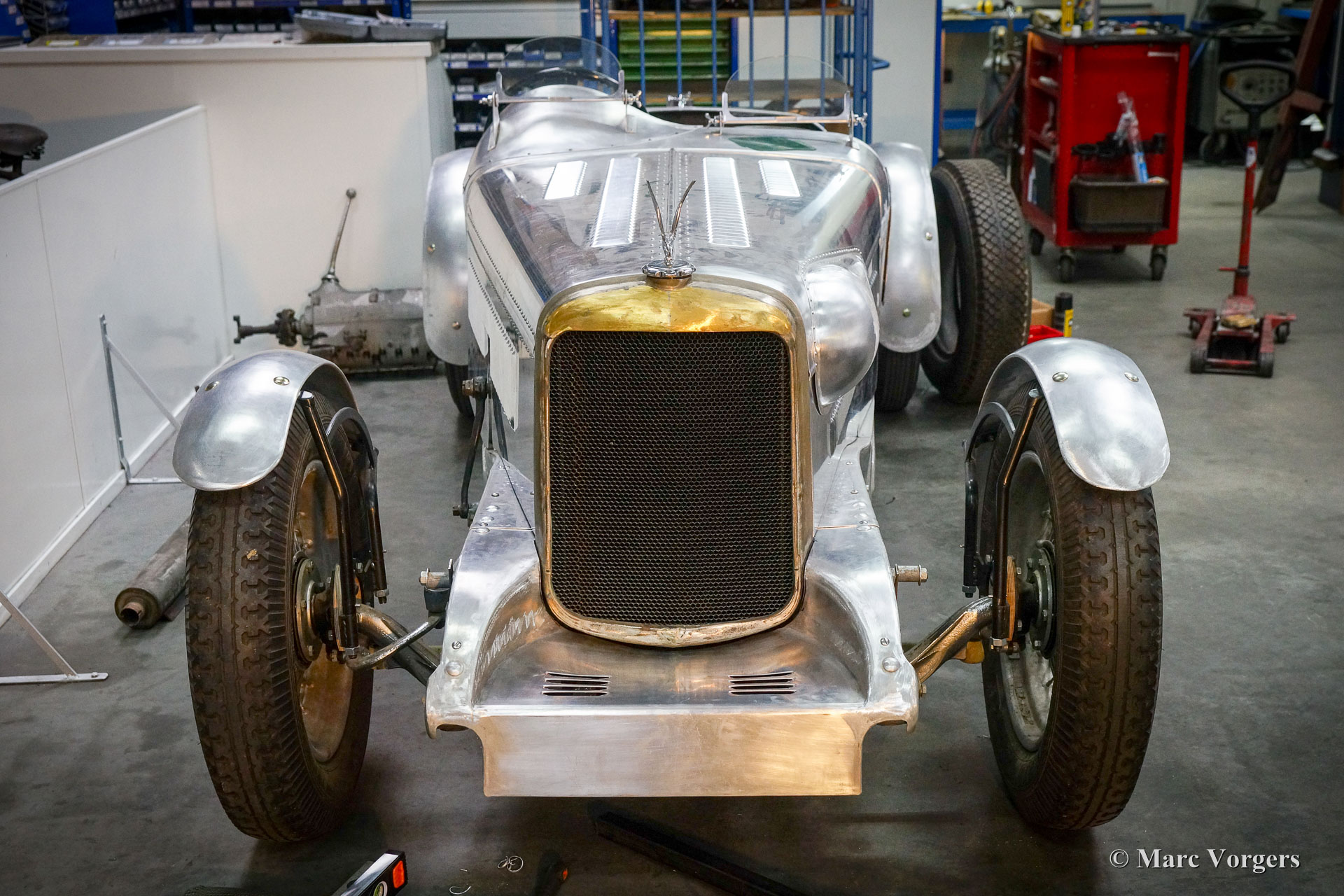 Dieser wunderschöne Alvis Silver Eagle aus dem Jahr 1934 wurde von Altena Classic Service vollständig restauriert / neu gebaut. Die alte Alvis-Karosserie erwies sich als nicht mehr zu reparieren, und so entschied sich der Besitzer, eine brandneue spezielle zweisitzige Sportkarosserie entwerfen und anfertigen zu lassen. Die Karosserie wurde wie in alten Zeiten aus Aluminiumblech von Hand gefertigt und geschlagen, und die Aluminiumpaneele wurden auf einen speziell angefertigten Eschenrahmen montiert. Das Chassis wurde komplett zerlegt und restauriert. Die Aufhängung wurde überholt und neue Trommelbremsen mit Lufthutzen und Lamellentrommeln wurden speziell hergestellt. Ein stärkerer 3,5-Liter Alvis-Motor wurde beschafft und überholt. Viele andere Teile wurden speziell für dieses Auto angefertigt, wie Lampenhalter, Schaltgestänge, Armaturenbrett, Sitze usw. Nachdem alle Teile vorhanden und fertig waren, wurde das Auto komplett aufgebaut, um alles auf perfekte Passform zu überprüfen. Danach wurde das Auto noch einmal zerlegt und alle Teile erhielten ihr finales Finish. Karosserieteile, Chassis und Aufhängungsteile wurden lackiert und andere Teile wurden vernickelt, verchromt oder verzinkt. Studieren Sie den ausführlichen Fotobericht und bewundern Sie all die wundervollen Details dieses einzigartigen Alvis Silver Eagle Specials.