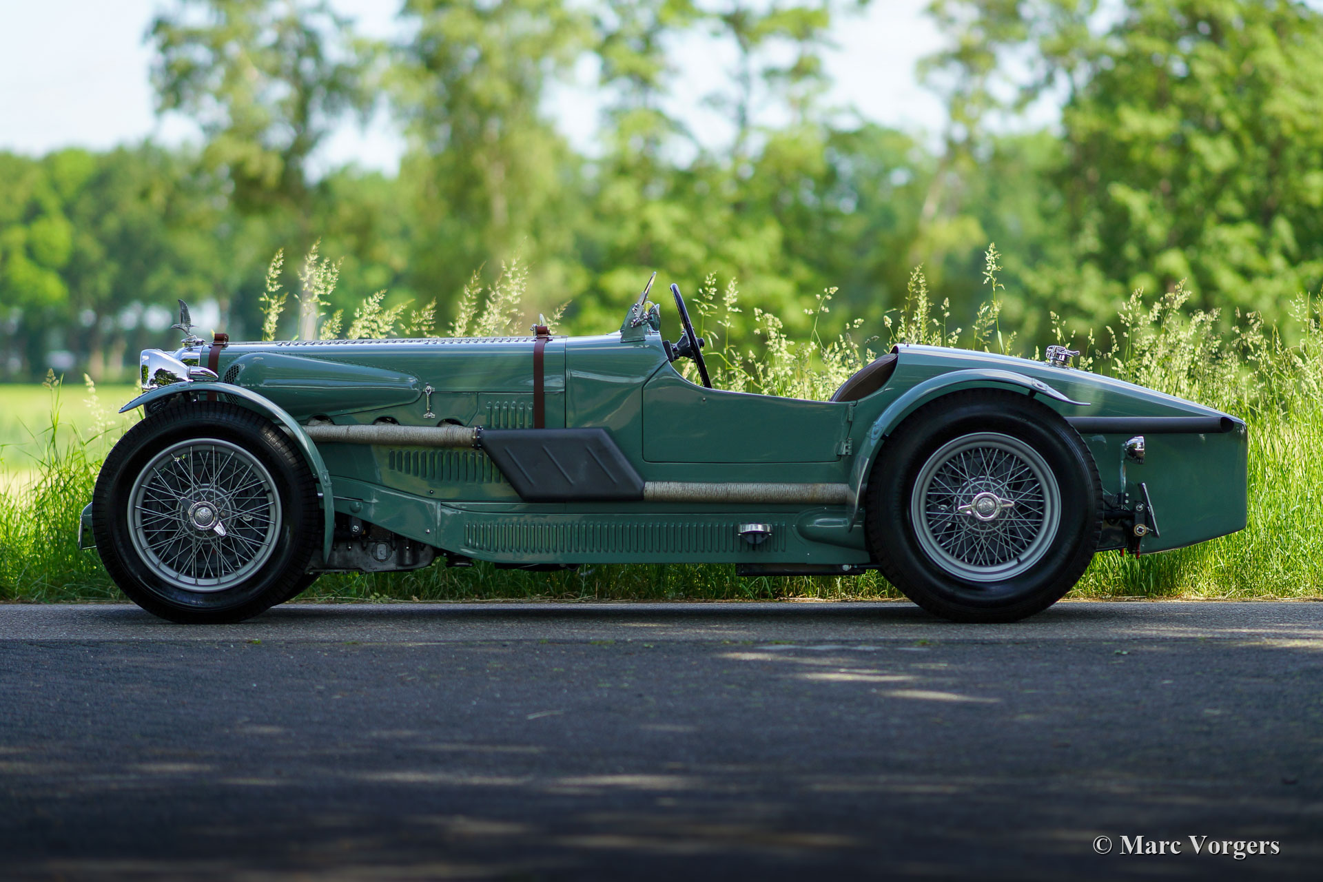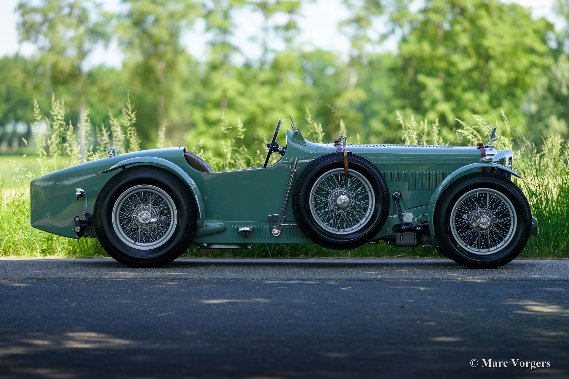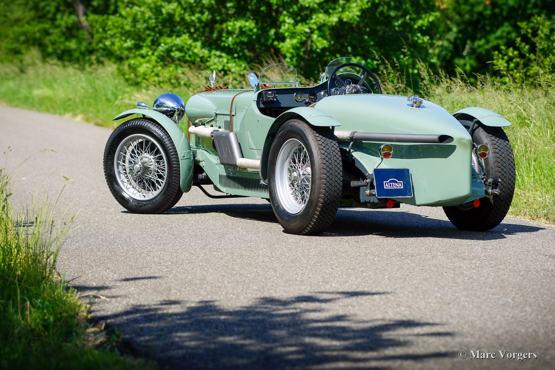 Dieser wunderschöne Alvis Silver Eagle aus dem Jahr 1934 wurde von Altena Classic Service vollständig restauriert / neu gebaut. Die alte Alvis-Karosserie erwies sich als nicht mehr zu reparieren, und so entschied sich der Besitzer, eine brandneue spezielle zweisitzige Sportkarosserie entwerfen und anfertigen zu lassen. Die Karosserie wurde wie in alten Zeiten aus Aluminiumblech von Hand gefertigt und geschlagen, und die Aluminiumpaneele wurden auf einen speziell angefertigten Eschenrahmen montiert. Das Chassis wurde komplett zerlegt und restauriert. Die Aufhängung wurde überholt und neue Trommelbremsen mit Lufthutzen und Lamellentrommeln wurden speziell hergestellt. Ein stärkerer 3,5-Liter Alvis-Motor wurde beschafft und überholt. Viele andere Teile wurden speziell für dieses Auto angefertigt, wie Lampenhalter, Schaltgestänge, Armaturenbrett, Sitze usw. Nachdem alle Teile vorhanden und fertig waren, wurde das Auto komplett aufgebaut, um alles auf perfekte Passform zu überprüfen. Danach wurde das Auto noch einmal zerlegt und alle Teile erhielten ihr finales Finish. Karosserieteile, Chassis und Aufhängungsteile wurden lackiert und andere Teile wurden vernickelt, verchromt oder verzinkt. Studieren Sie den ausführlichen Fotobericht und bewundern Sie all die wundervollen Details dieses einzigartigen Alvis Silver Eagle Specials.
