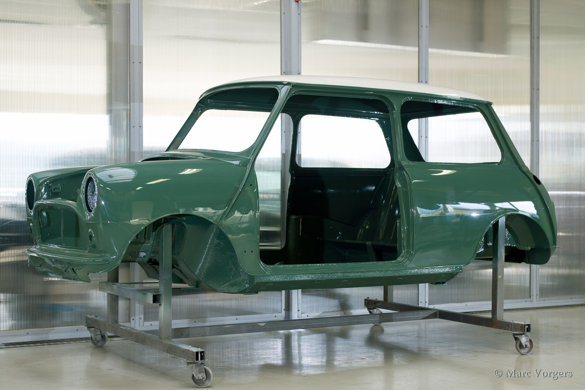This magnificent Austin Mini Cooper is being fully restored. The car was fully stripped. The mechanics are being overhauled and the interior is being restored to original specifications. The body was inspected, sheet metal work carried out, further paint stripped, sand blasted and epoxy primed. Now the Mini Cooper has been given a perfect paintjob!