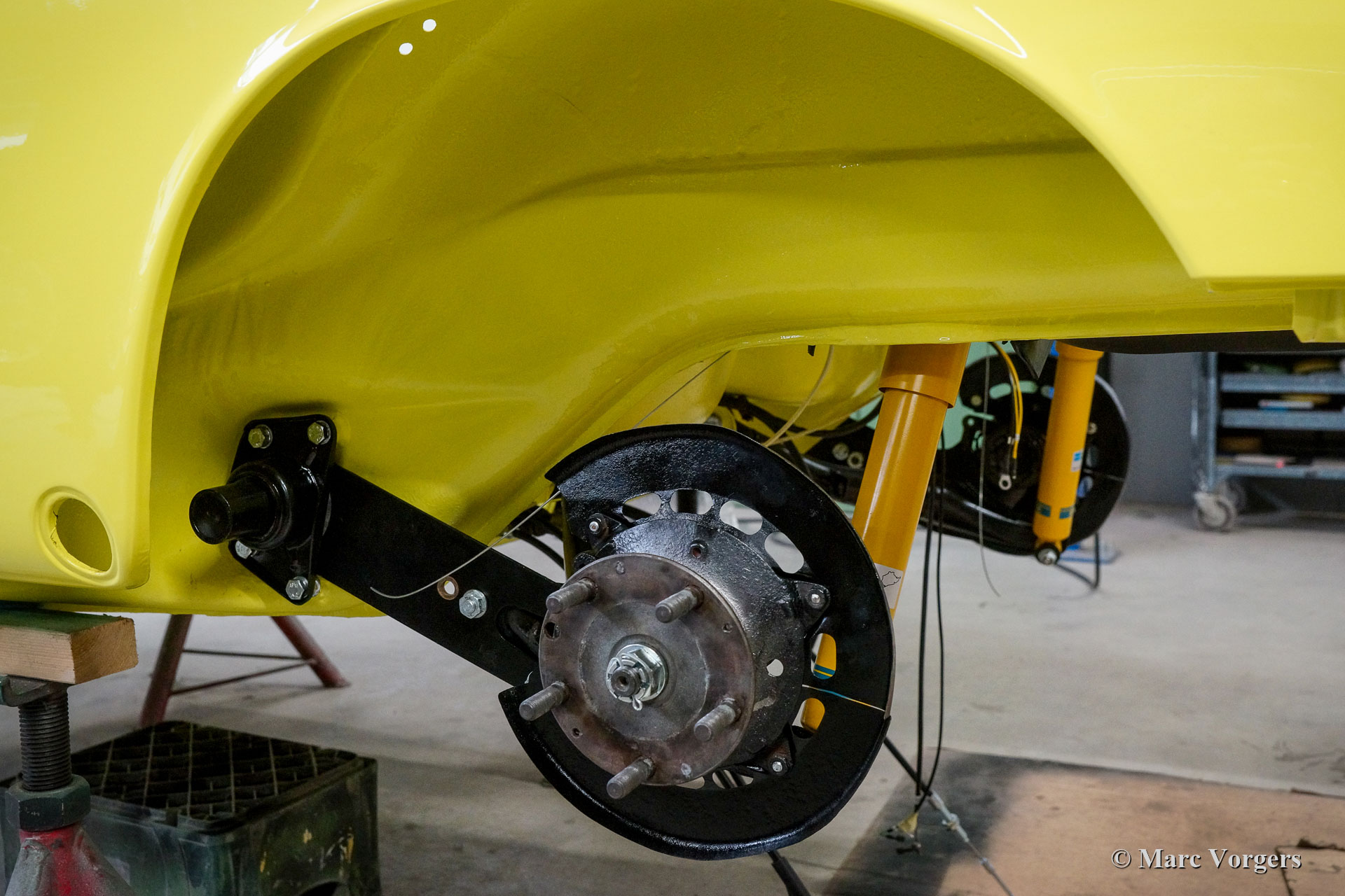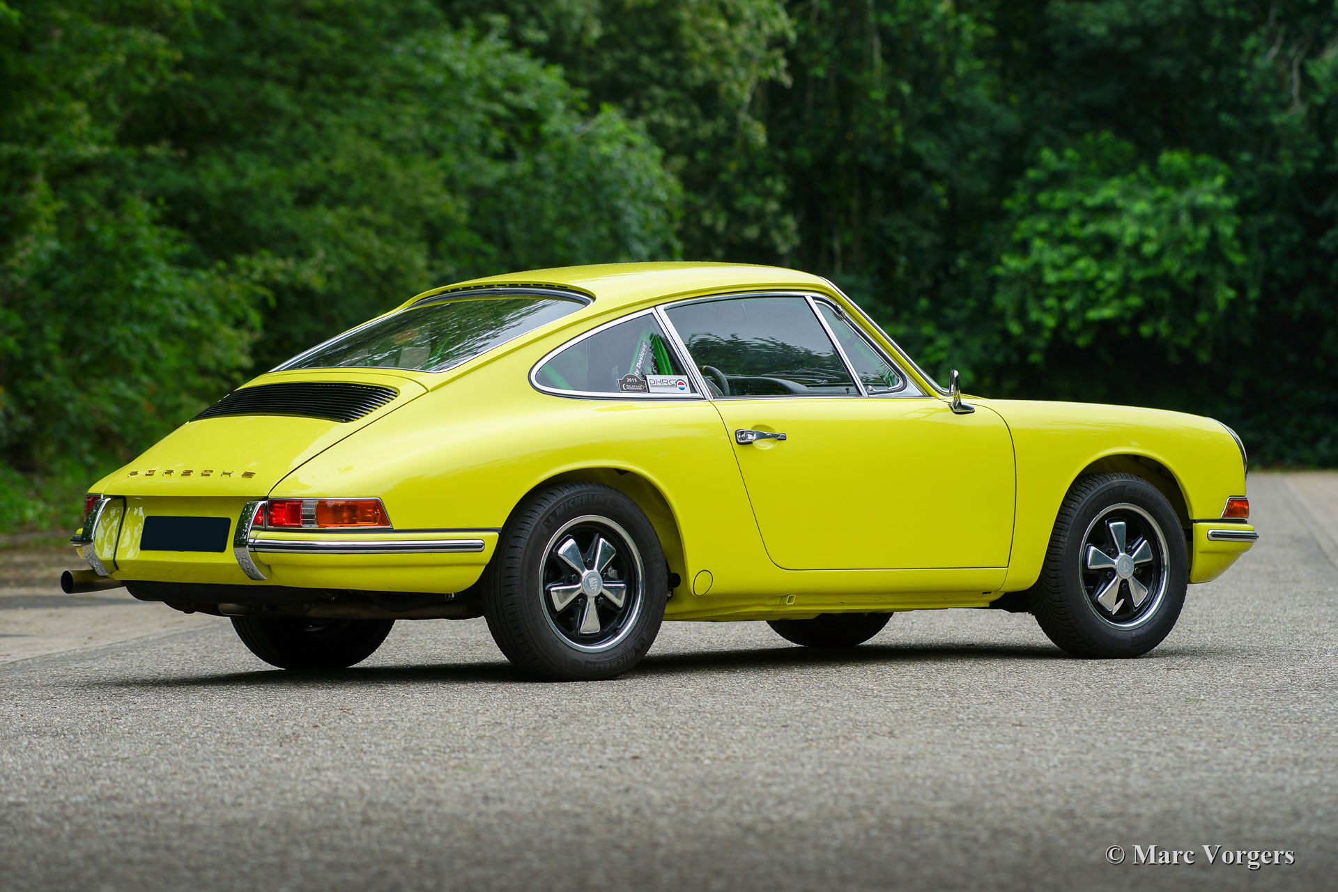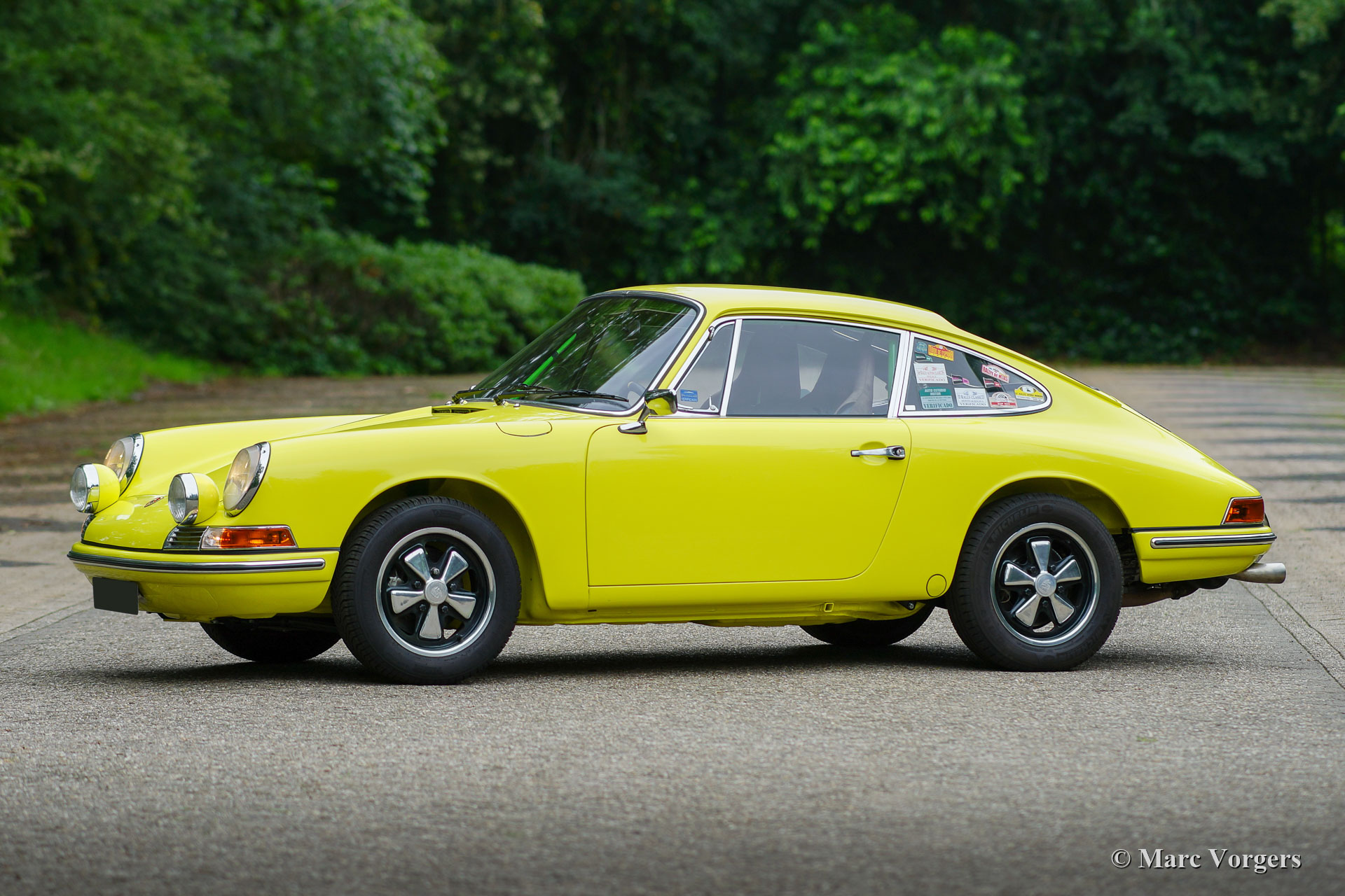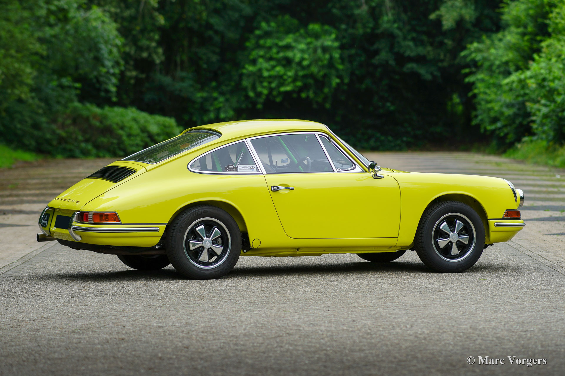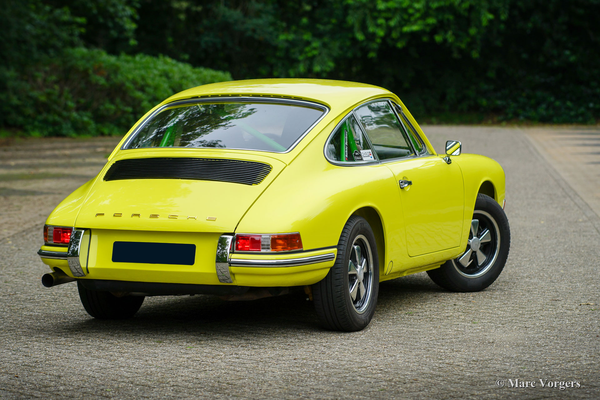 Nach Abschluss der Blecharbeiten erhielt der Körper in einem „Tauchbad“ eine schwarze KTL-Beschichtung (Primer). Auf diese Weise bedeckt die Beschichtung das Blech innen und außen, auch in den Nähten und in den kleinsten Hohlräumen. Danach wurde der Körper geglättet, grundiert und mit einer perfekten Lackierung in Zitronengelb versehen. Danach wurde das Auto mit den gereinigten und aufgearbeiteten Originalteilen, die vor der Restaurierung vorhanden waren, wieder aufgebaut. Verschleißteile und Gummis wurden natürlich während der Bauphase ausgetauscht. Hier haben Sie eine hervorragende Gelegenheit, eine SWB-Karosserie der Porsche 911 F-Serie im Detail zu studieren!