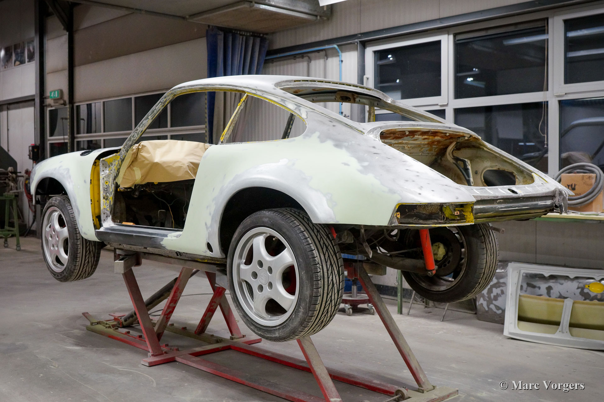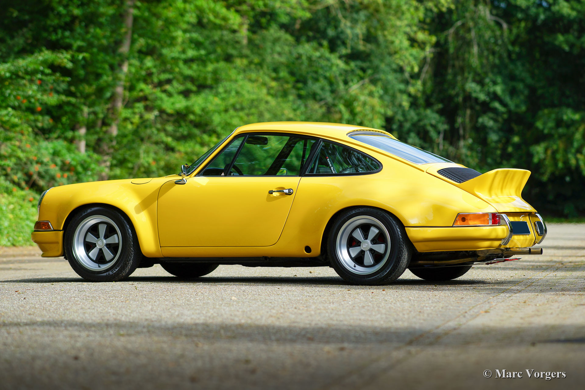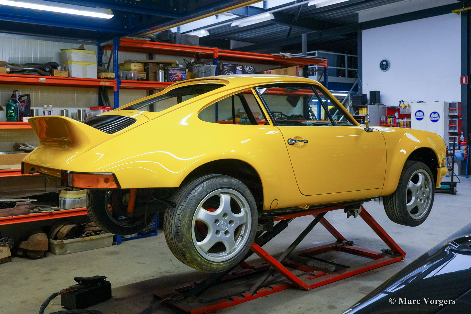 Dieser fantastische Porsche 911 wird nach den Spezifikationen der Porsche 911 ST Rennwagen angepasst. Der Porsche 911 ST ist einer der seltensten 911er, von denen nur 24 Stück gebaut wurden in den Jahren 1970 und 1971. Die 911 ST-Rennwagen waren erfolgreich auf Rennstrecken rundum die Welt und auch im Le Mans 24 Stunden. Dieser Porsche 911 wird für einen Kunden an die ST-Spezifikationen angepasst. Die vorderen und hinteren Kotflügel wurden bereits verbreitert und das Schiebedach wurde geschlossen. Wie Sie auf den Fotos sehen können, wurden die Blecharbeiten bereits durchgeführt. Danach wurden die Karosserie und die Paneele grundiert, geglättet und 'Minardi' gelb lackiert. Jetzt ist das Auto fertig und es sieht fantastisch aus! Alles sieht perfekt brandneu aus und das Auto fährt und klingt hervorragend! Dieser feine Porsche 911 ST ist mit breiter (Reproduktionen) Fuchs-Leichtmetallrädern ausgestattet. Der 2,4-Liter-S-Motor wurde von Classic Job revidiert und wieder aufgebaut. Hier klicken.
