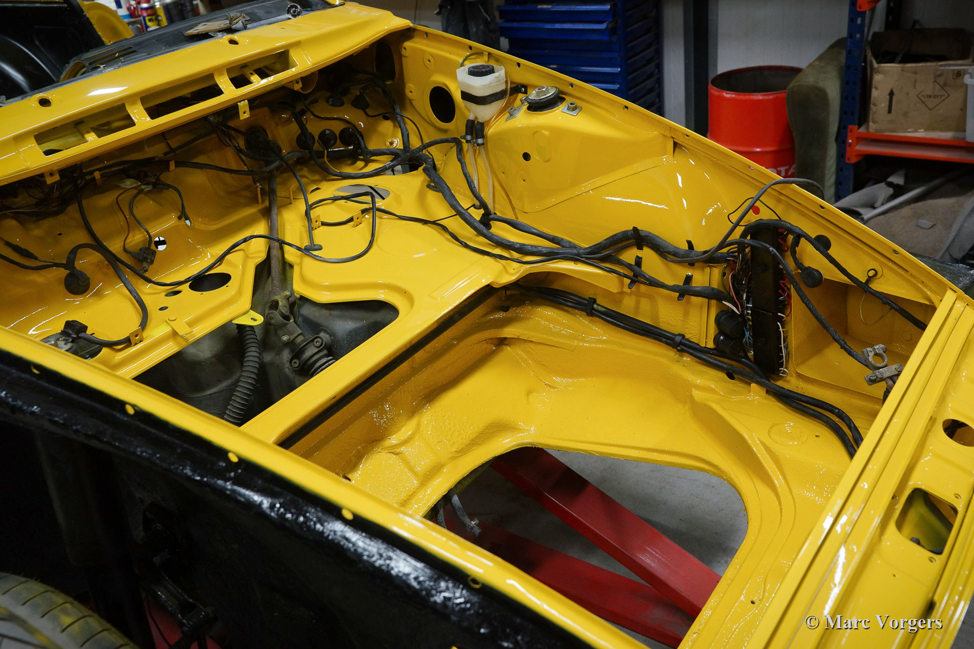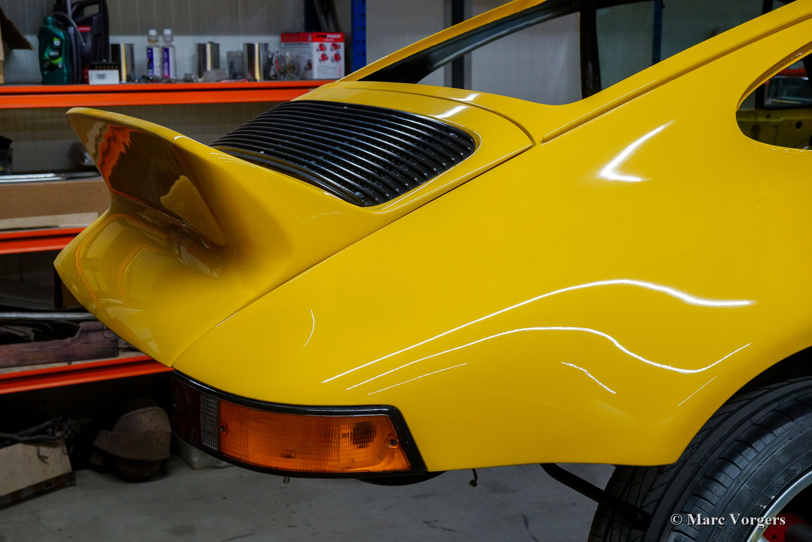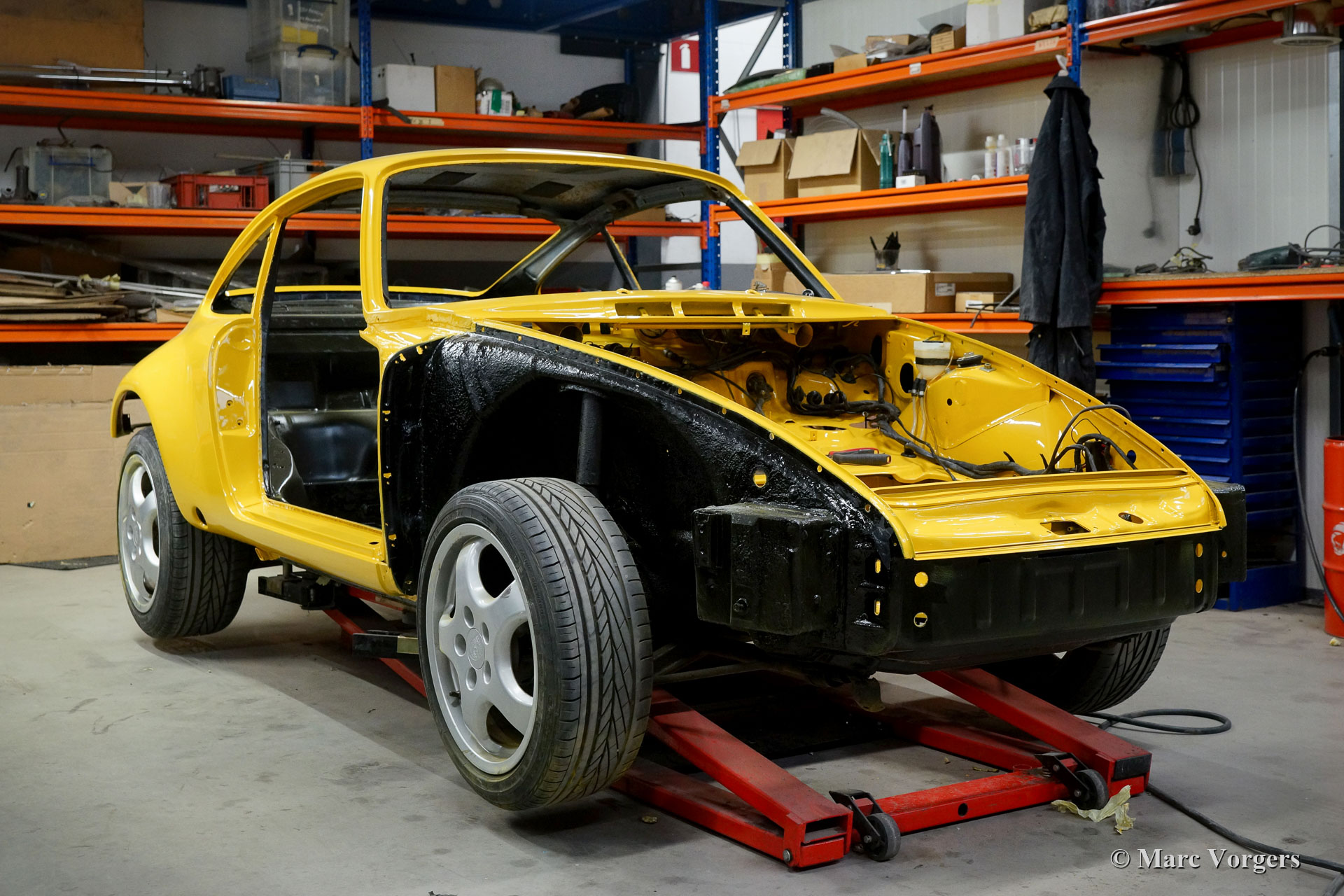 Dieser fantastische Porsche 911 wird nach den Spezifikationen der Porsche 911 ST Rennwagen angepasst. Der Porsche 911 ST ist einer der seltensten 911er, von denen nur 24 Stück gebaut wurden in den Jahren 1970 und 1971. Die 911 ST-Rennwagen waren erfolgreich auf Rennstrecken rundum die Welt und auch im Le Mans 24 Stunden. Dieser Porsche 911 wird für einen Kunden an die ST-Spezifikationen angepasst. Die vorderen und hinteren Kotflügel wurden bereits verbreitert und das Schiebedach wurde geschlossen. Wie Sie auf den Fotos sehen können, wurden die Blecharbeiten bereits durchgeführt. Danach wurden die Karosserie und die Paneele grundiert, geglättet und 'Minardi' gelb lackiert. Jetzt ist das Auto fertig und es sieht fantastisch aus! Alles sieht perfekt brandneu aus und das Auto fährt und klingt hervorragend! Dieser feine Porsche 911 ST ist mit breiter (Reproduktionen) Fuchs-Leichtmetallrädern ausgestattet. Der 2,4-Liter-S-Motor wurde von Classic Job revidiert und wieder aufgebaut. Hier klicken.